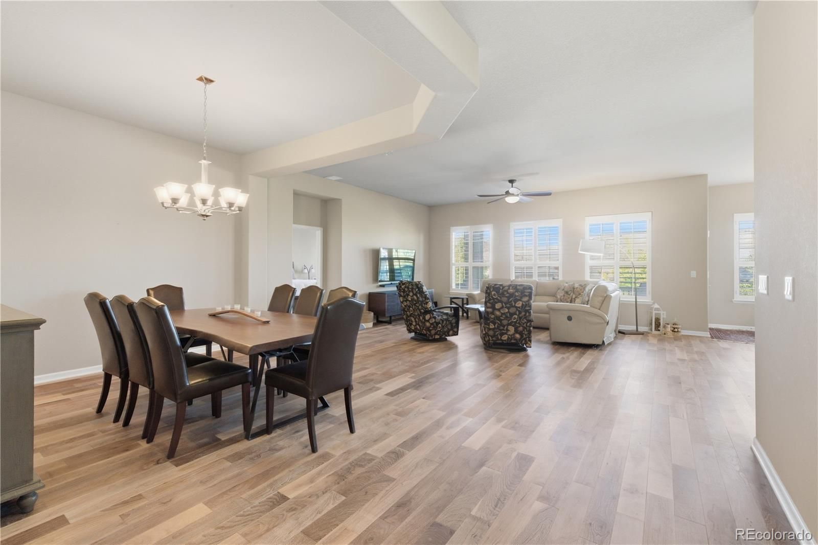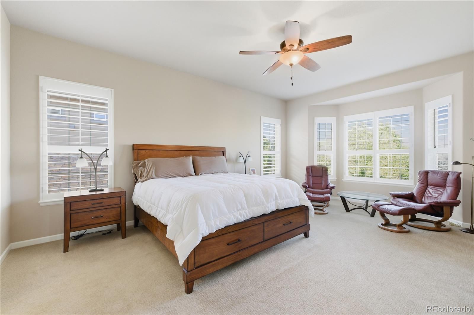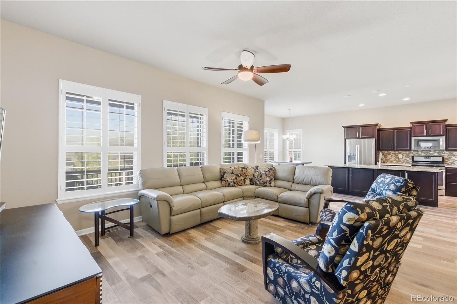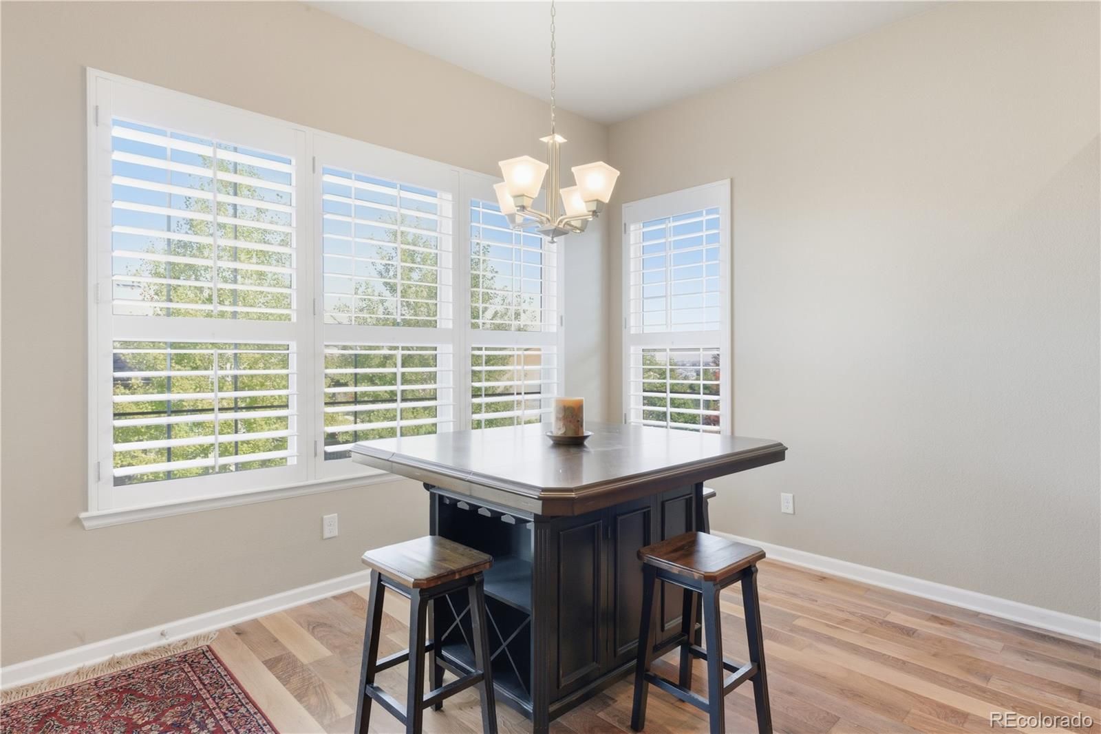 Welcome to this elegant single-family home in the desirable 55+ community of Anthem Ranch in Broomfield. Spanning 4,356 square feet, this residence seamlessly blends comfort, style, and modern living tailored for a relaxed and vibrant lifestyle. Upon entering, you’ll be greeted by a warm and inviting atmosphere, enhanced by eastern exposure that fills the home with natural light. Tasteful shutters and dual-pane windows add sophistication while maximizing energy efficiency. Flooring throughout includes a thoughtful mix of carpet, tile, and vinyl, all complemented by recessed lighting. The gourmet kitchen features a breakfast nook perfect for casual dining, while a formal dining room provides an ideal space for entertaining family and friends. The third bedroom has been thoughtfully converted into a convenient and stylish home office, creating a productive yet comfortable workspace. The home offers three spacious bedrooms, including a luxurious primary suite with dual vanities, a soaking tub, and a windowed bathroom for added elegance. Ample storage is available with walk-in and dual closets. A sunroom provides a bright retreat for reading or morning coffee, while a humidifier ensures year-round comfort. Outdoor living is enhanced with a private backyard and deck, ideal for relaxation or entertaining. The Anthem community enriches your lifestyle with amenities such as a pool, hot tub, clubhouse, gym, and tennis courts—all designed for active adults. Additional practical features include a finished basement, a fully equipped laundry room with washer and dryer, and a modern heating and cooling system with central AC, forced air, and integrated humidity control. Experience the perfect balance of luxury, convenience, and an active 55+ lifestyle—this exceptional Anthem home is ready to welcome you.
