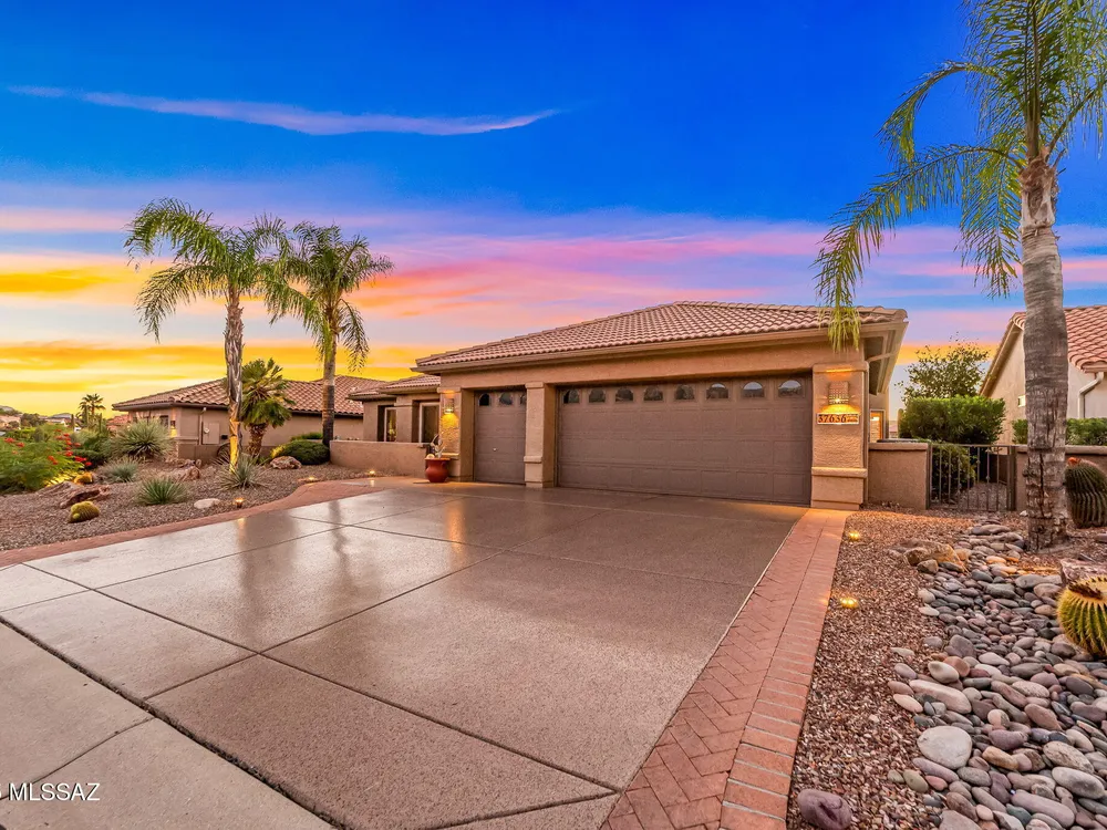 Wake up to Catalina Mountain views out front and wind down with stunning desert sunsets over the 12th fairway. This expanded Montana model offers rich wood floors, soaring ceilings, plantation shutters, and natural light that fills every corner. The kitchen shines with Cafe stainless appliances and opens to spacious living and dining areas designed for comfort and connection. Step outside to a covered patio where golf course views and Arizona skies create the perfect backdrop. The oversized garage includes epoxy floors, built-in cabinetry, EV charging, and attic access. Enjoy resort-style living with access to golf, pickleball, fitness centers, pools, restaurants, and clubs in one of Arizona's premier age-restricted communities. Welcome to SaddleBrooke living.