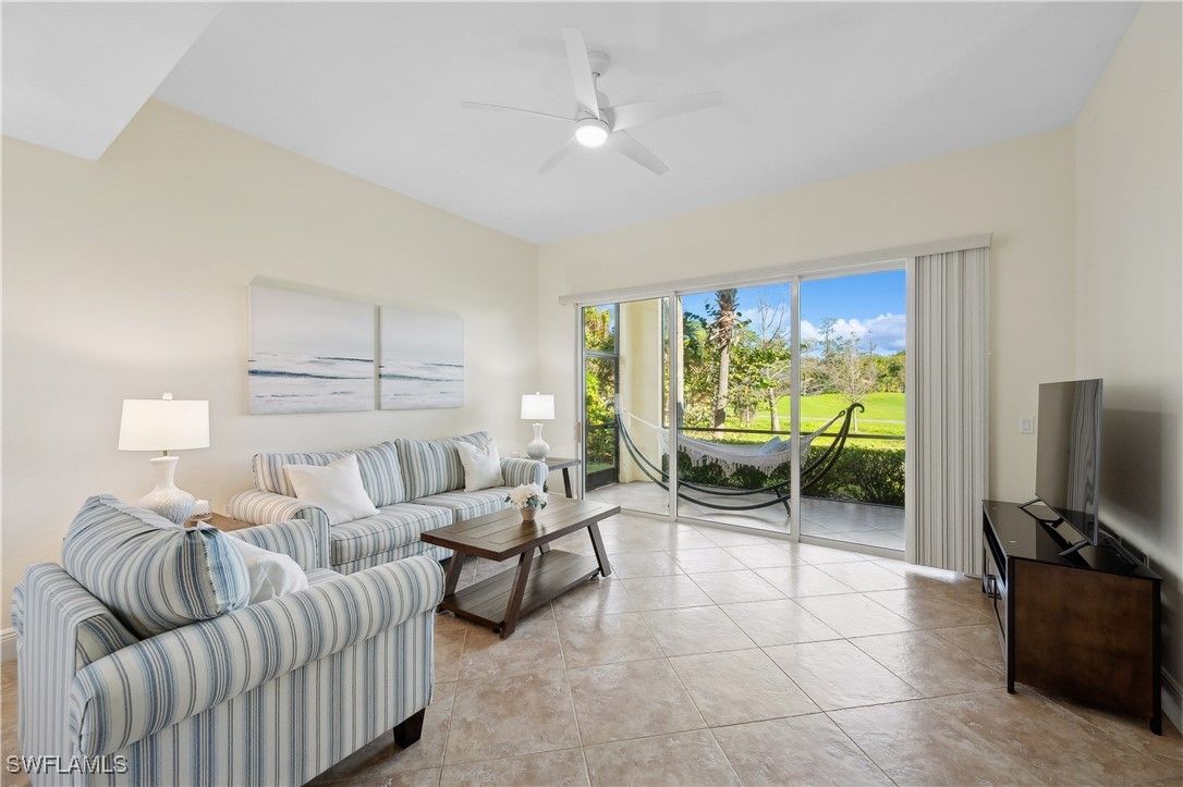Step inside this spacious first floor end-unit coach home offered at an exceptional value. Situated in the award-winning Fiddler's Creek community, this home combines comfort, style and stunning views. The Montreux village at Fiddler's Creek has recently been updated with new exterior paint and a new landscaping design nearing completion. The spacious layout of this home features 3 bedrooms and 3 full bathrooms - ideal for both relaxation and entertaining. The open concept design flows seamlessly into the living and dining areas with breathtaking views of the 5th hole of Rookery golf course. The kitchen features a gas cooktop, a considerable amount of cabinets, and charming bay windows that flood the space with light. The primary bedroom has direct access to the lanai, perfect for enjoying your morning coffee or evening breeze. It also boasts 2 walk-in closets, providing ample space and storage. The en suite bathroom is complete with dual sinks, a soaking tub and walk-in shower. 2 more spacious bedrooms with en suite bathrooms provide family and guests with privacy and comfort. The expansive screened lanai is the perfect retreat for tranquility. Fiddler's Creek offers a lifestyle of leisure and luxury with easy access to both Marco Island and downtown Naples. The community has many amenities including pickleball, tennis, bocce, a state of the art fitness center, fitness classes, casual and fine dining, resort style pools, a hot tub and spa services. There are optional golf memberships (with no wait list) and beach and boating memberships too. Residents of Montreux enjoy access to their own community pool while also being in close proximity to the popular Club and Spa. Whether you're lounging by the pool, playing pickleball, tennis, or enjoying the golf course views from your lanai, this home has it all. AND the CDD bond portion is paid in full! Schedule your private tour today and experience this gem for yourself. This home is being offered turnkey.