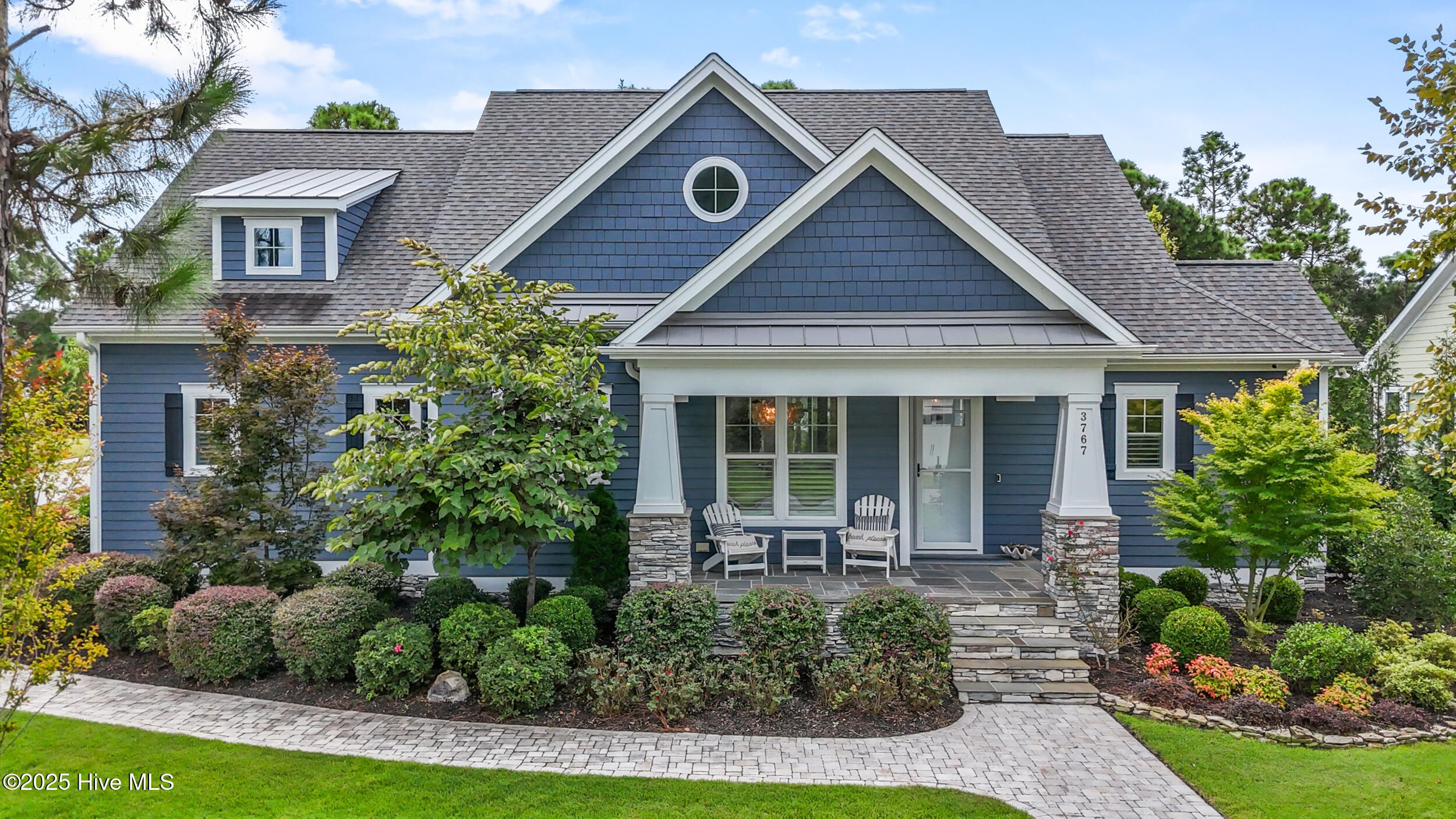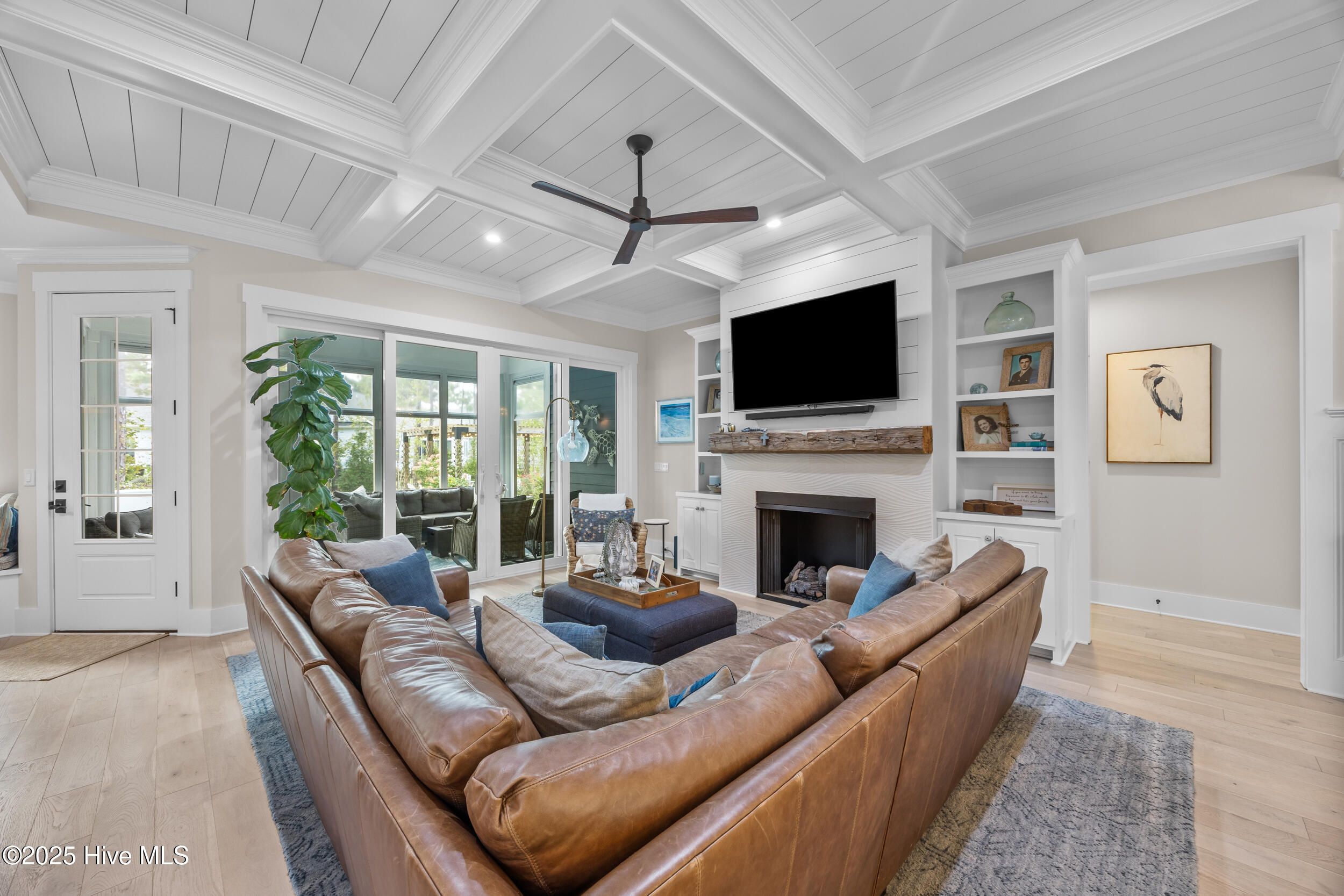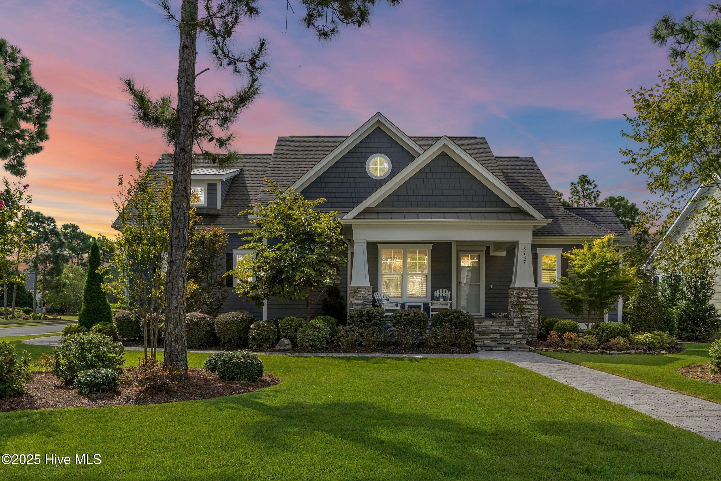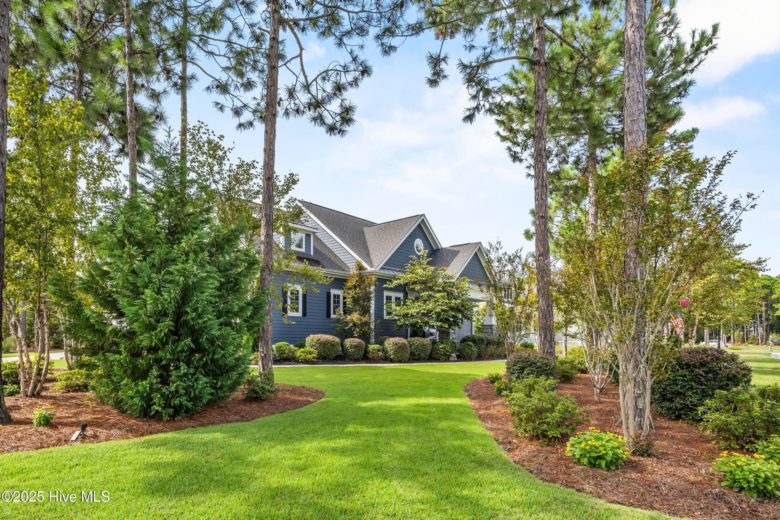 What do you get when you start with a 2019 custom built home by Ultra Luxury Builder, Schiano Development, and then trick it out? Something special! Nestled in the prestigious Reserve neighborhood of Saint James plantation, this custom coastal Craftsman home is perfectly positioned on a corner lot boasting well over $100K in hardscape and lush landscaping improvements which have made this home a serene and private oasis. Step onto the bluestone front porch and immerse yourself in the beauty of the surrounding wooded landscape. The coastal elegance of the interior is evident from the moment that you enter through the 8 foot door where you are greeted with hallmark 7 inch French oak hardwood floors, a 10 foot coffered ceiling with shiplap inlay, as well as extensive wainscoting and crown molding. The custom tile fireplace with a vintage heart pine mantle and custom cabinetry beckons you to relax and unwind. The chef's kitchen is a dream come true featuring custom Hollingsworth soft close cabinets with pullouts for easy organization, white quartz countertops, and Thermador appliances. Multiple dining and entertainment options are available, including a formal dining room, island bar seating, and a delightful breakfast nook with custom banquette. A Butler's pantry with a wine fridge and a wet bar, as well as a laundry room with the extra cabinetry add to this home's appeal. Stunning features can be found in the first floor, large primary bedroom including a vaulted shiplap ceiling with exposed beam detail and lots of natural light. The ensuite boasts a zero entry custom tile shower, double vanity with quartz countertop and a walk in closet with fully updated custom wood closet system. The additional bedroom downstairs has a charming second fireplace with tile surround that can be used as a flex space, office, or guest quarters with its own attached luxury bathroom with a second zero entry shower. A workspace conveniently located off the kitchen