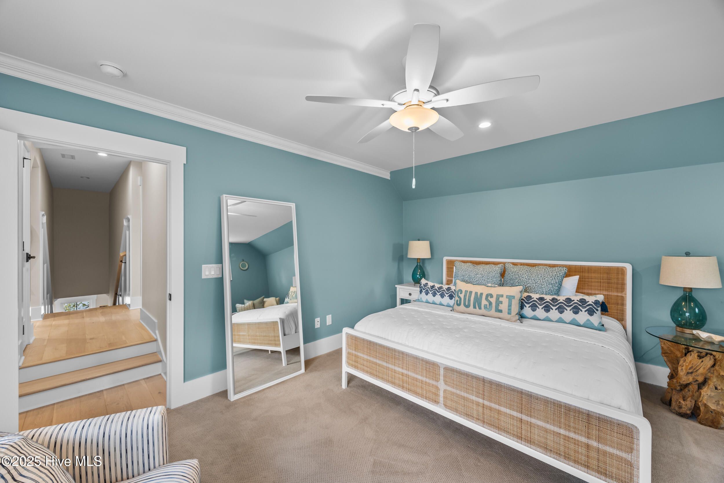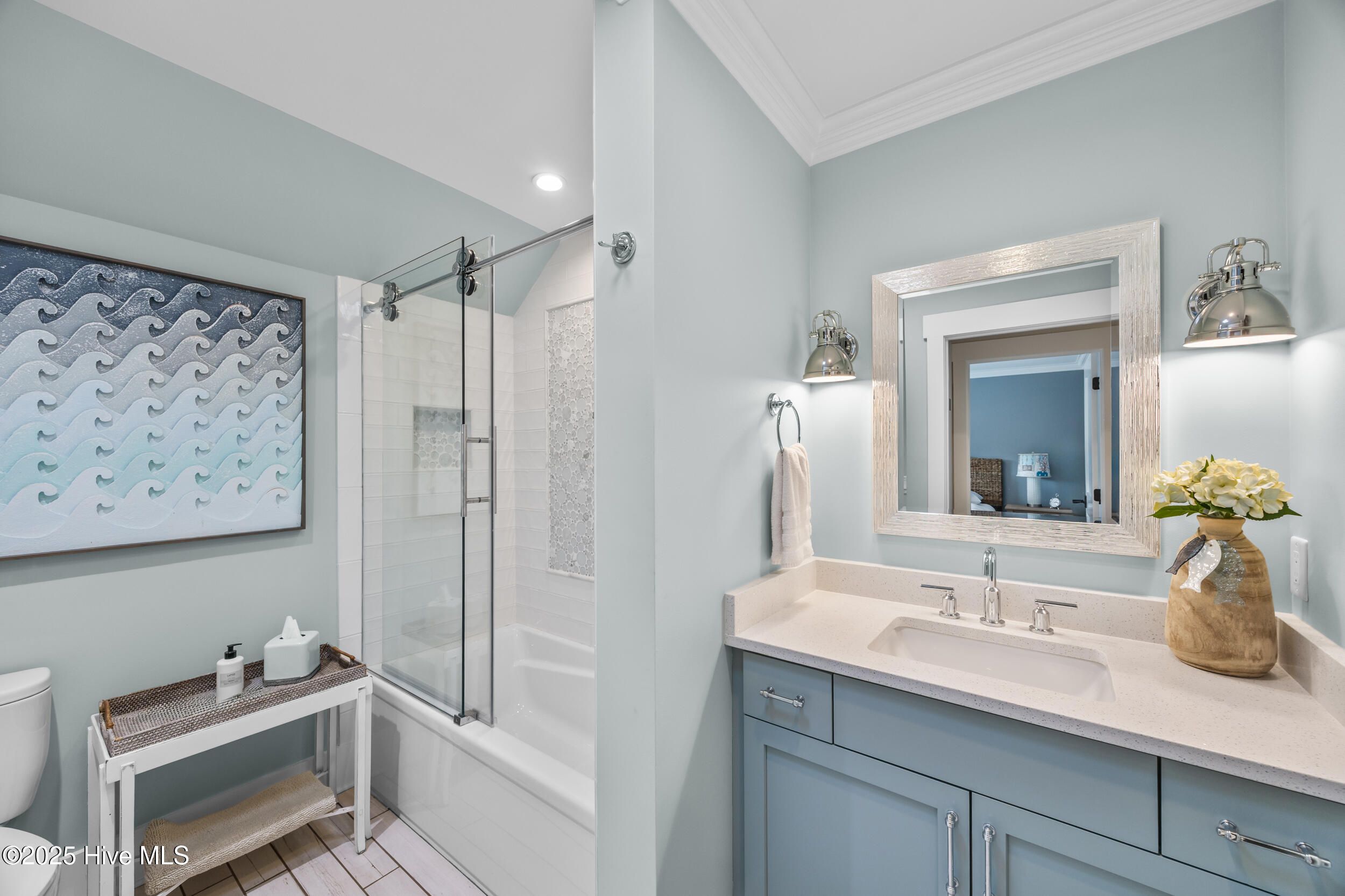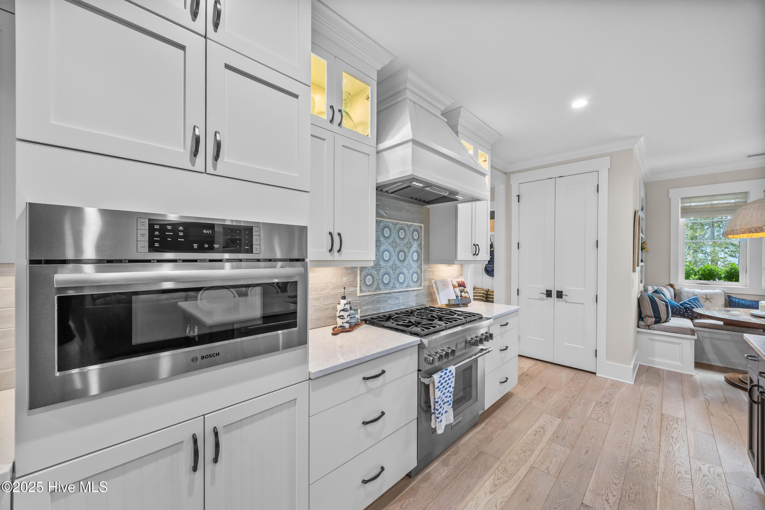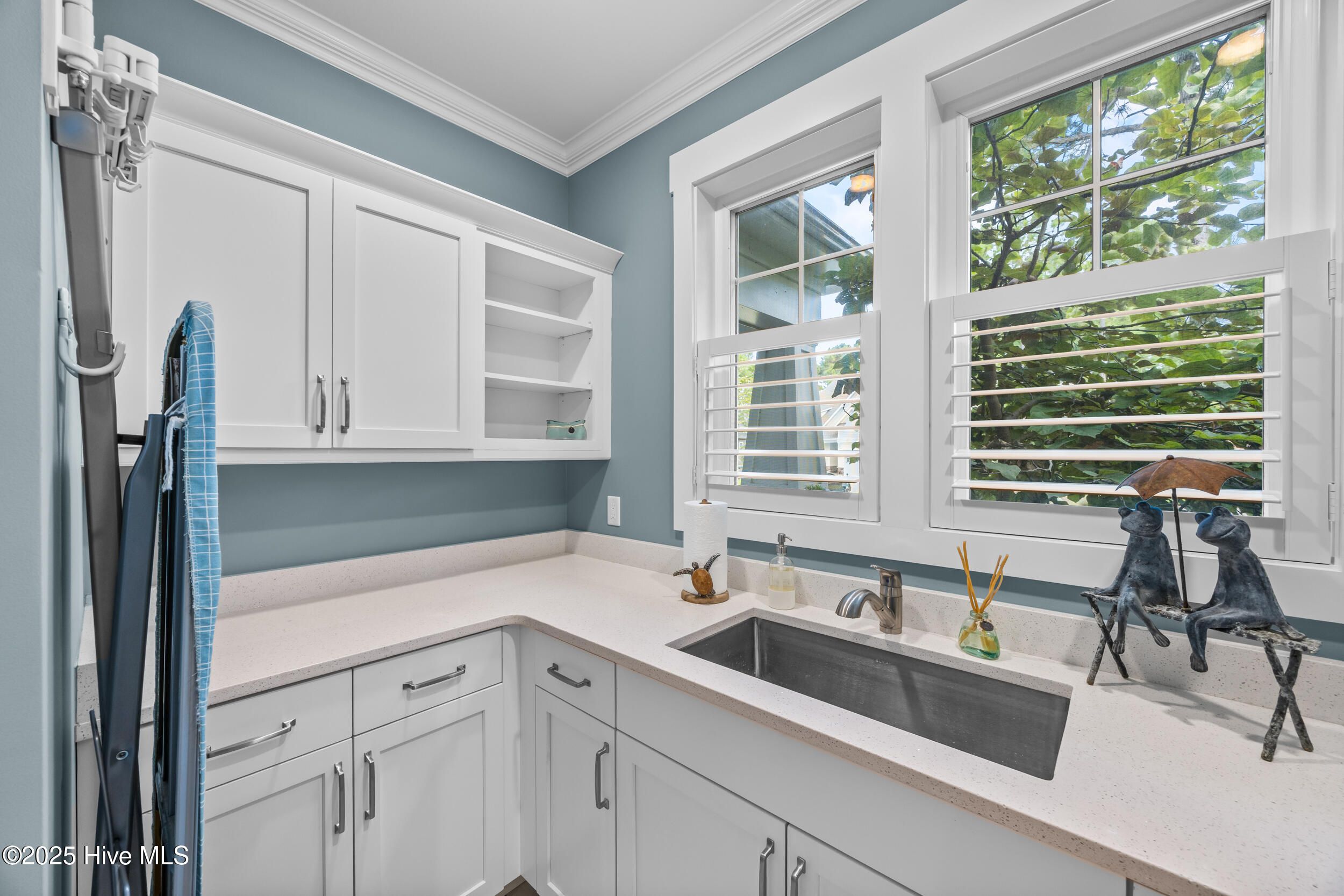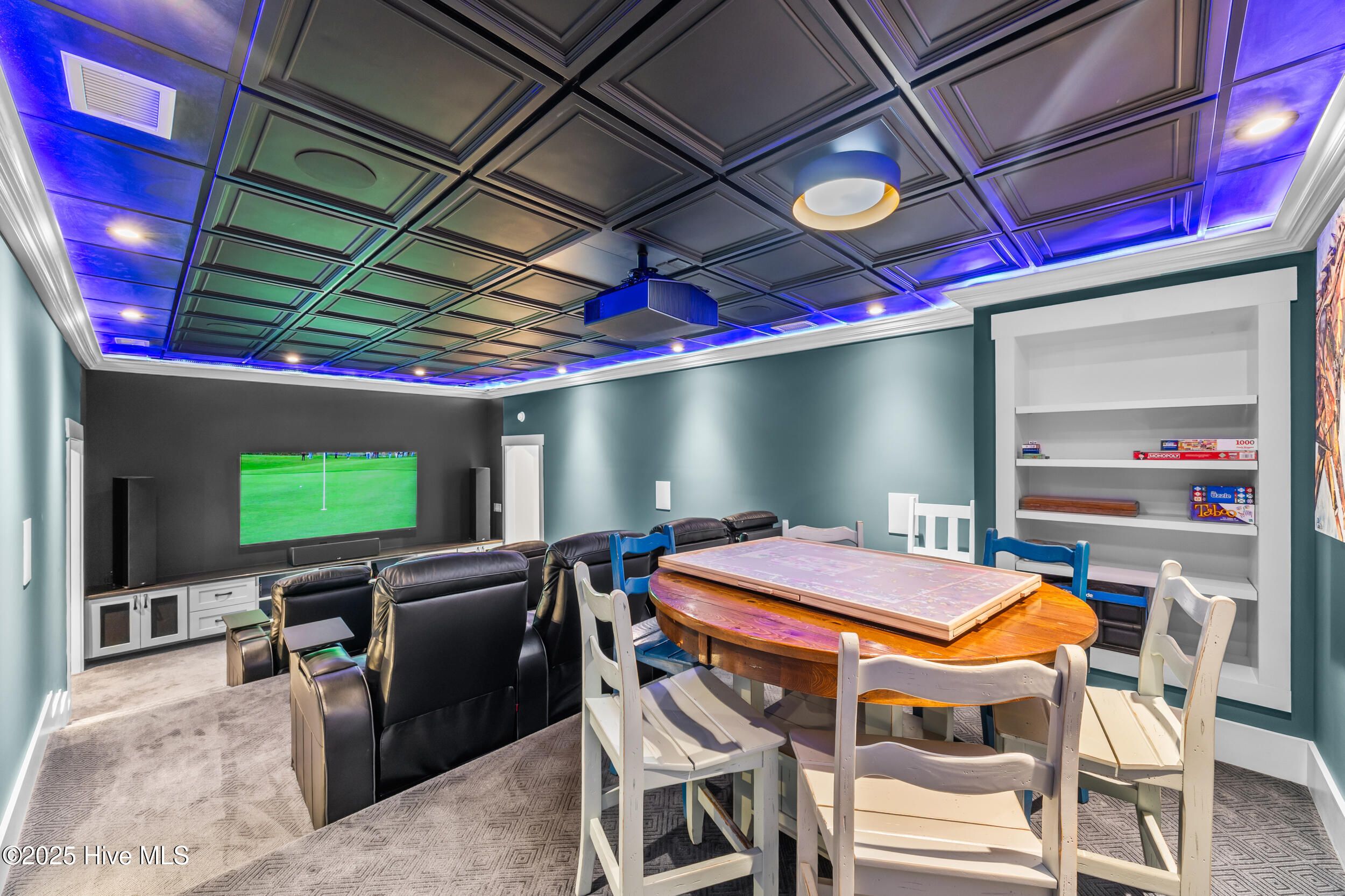What do you get when you start with a 2019 custom built home by Ultra Luxury Builder, Schiano Development, and then trick it out? Something special! Nestled in the prestigious Reserve neighborhood of Saint James plantation, this custom coastal Craftsman home is perfectly positioned on a corner lot boasting well over $100K in hardscape and lush landscaping improvements which have made this home a serene and private oasis. Step onto the bluestone front porch and immerse yourself in the beauty of the surrounding wooded landscape. The coastal elegance of the interior is evident from the moment that you enter through the 8 foot door where you are greeted with hallmark 7 inch French oak hardwood floors, a 10 foot coffered ceiling with shiplap inlay, as well as extensive wainscoting and crown molding. The custom tile fireplace with a vintage heart pine mantle and custom cabinetry beckons you to relax and unwind. The chef's kitchen is a dream come true featuring custom Hollingsworth soft close cabinets with pullouts for easy organization, white quartz countertops, and Thermador appliances. Multiple dining and entertainment options are available, including a formal dining room, island bar seating, and a delightful breakfast nook with custom banquette. A Butler's pantry with a wine fridge and a wet bar, as well as a laundry room with the extra cabinetry add to this home's appeal. Stunning features can be found in the first floor, large primary bedroom including a vaulted shiplap ceiling with exposed beam detail and lots of natural light. The ensuite boasts a zero entry custom tile shower, double vanity with quartz countertop and a walk in closet with fully updated custom wood closet system. The additional bedroom downstairs has a charming second fireplace with tile surround that can be used as a flex space, office, or guest quarters with its own attached luxury bathroom with a second zero entry shower. A workspace conveniently located off the kitchen