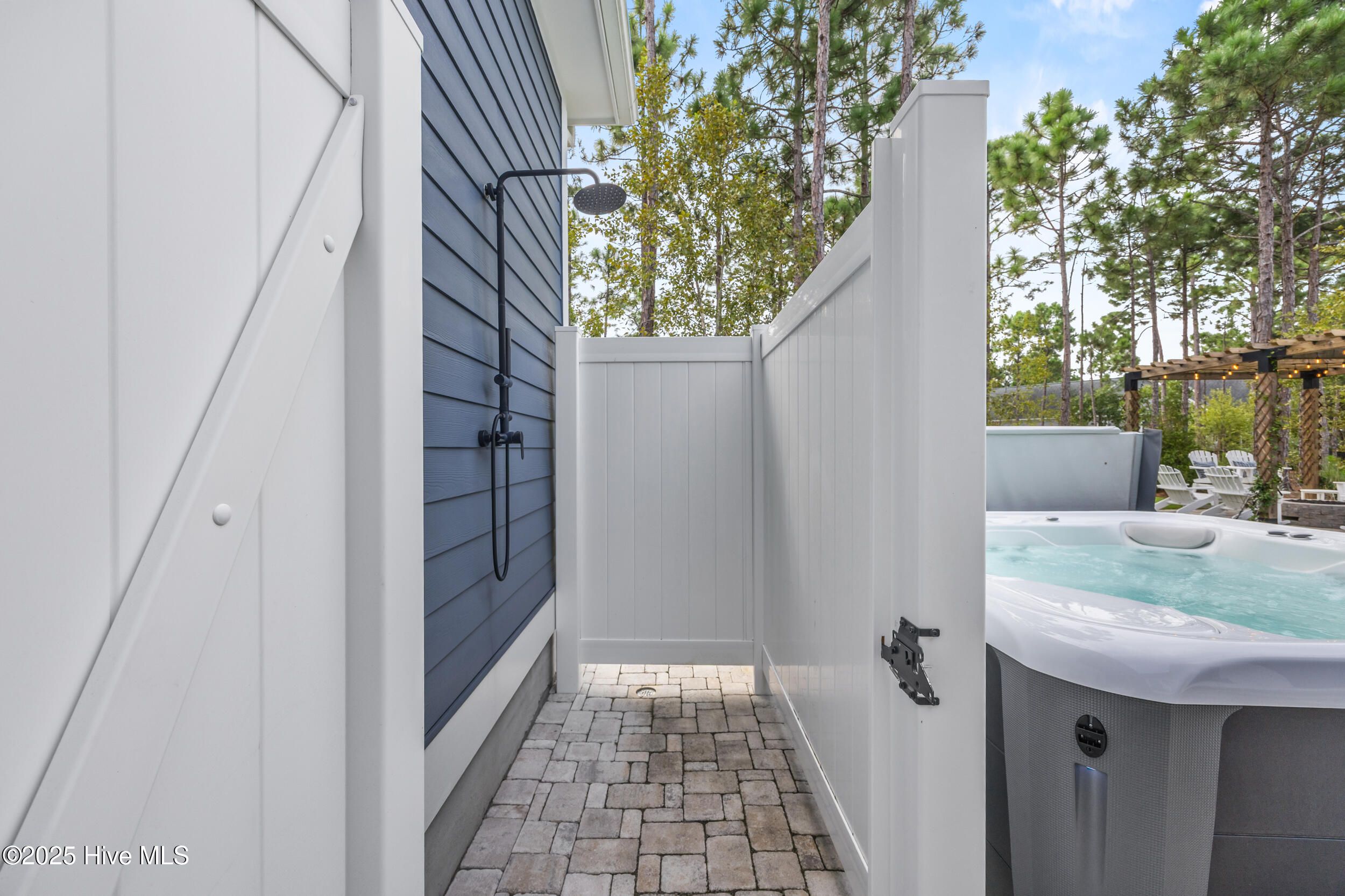 - Master Downstairs, Central Vacuum, Walk-In Closet(s), Vaulted Ceiling(s), Tray Ceiling(s), High Ceilings, Entrance Foyer, Mud Room, Bookcases, Kitchen Island, Ceiling Fan(s), Hot Tub/Spa, Pantry, Walk-In Shower, Wet Bar, Blinds, Separate/Formal Dining Room