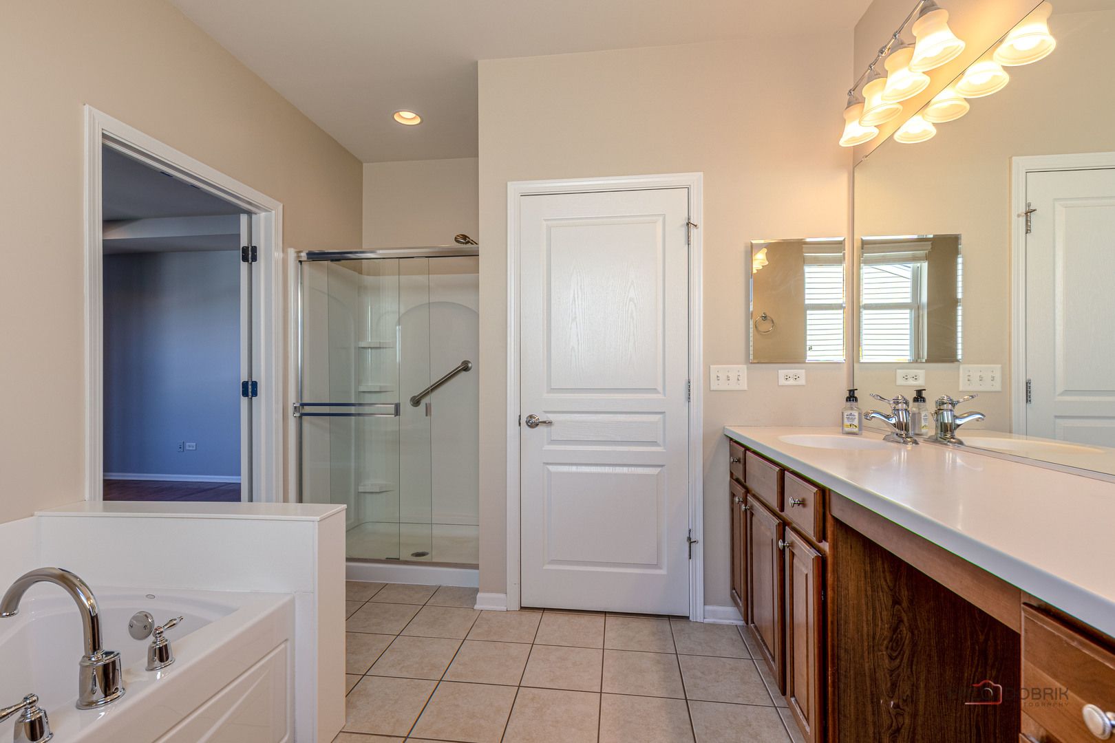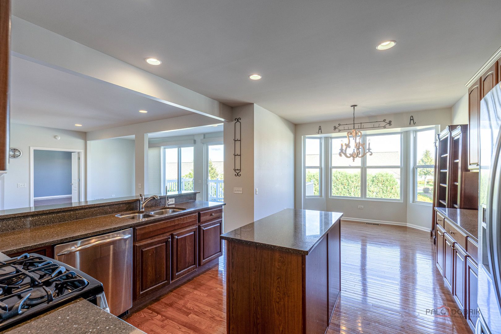 Step into one of the most sought-after homes in Grand Dominion - the phenomenal Glencoe plan, prized for its spacious and thoughtfully designed layout. This beautiful home features hardwood floors throughout, a gorgeous kitchen with Zodiaq (quartz) countertops, a deep undermount stainless sink, stainless steel appliances, and an abundance of 42" cherry cabinetry with crown molding. The large island and bright breakfast area with a bay window make it perfect for everyday living and entertaining. A butler's pantry connects the kitchen and dining area, adding both function and elegance. The main living space offers 9-foot ceilings, recessed lighting, and a cozy gas fireplace with a flush hearth. Just off the great room, a sunroom with floor-to-ceiling sliding glass doors opens to the deck, seamlessly blending indoor and outdoor living. The Owner's Retreat is a true escape, featuring a bay window, tray ceiling, double-door entry, spacious walk-in closet, and a luxurious bath with a soaking tub, separate shower, double bowl comfort-height vanities, private commode, and even a ceiling fan/heater for added comfort. A den with double doors and transom window provides a perfect home office or sitting area. The second bedroom is adjacent to a remodeled full bath featuring a large shower and comfort-height vanity. The walkout basement offers a finished area with an office, large storage closet, and a combination of carpet and tile flooring - plus an unfinished section ideal for hobbies, additional storage, or future expansion (including a rough-in for another bath). Additional highlights include a large two-car garage that's drywalled, painted, and finished with a protective coated floor; white trim and paneled doors with lever handles; and a spacious owner's entry from the garage with closet and direct access to the kitchen. Located in Grand Dominion, a premier 55+ active adult community, residents enjoy access to the Lakeside Lodge clubhouse, featuring indoor and outdoor pools, fitness center, tennis courts, walking paths, meeting rooms, and social activities. The HOA covers lawn care and snow removal, giving you more time to enjoy this incredible lifestyle. This is a must-see home with remarkable features and a layout that's always in high demand. Don't miss your chance - schedule your showing today!