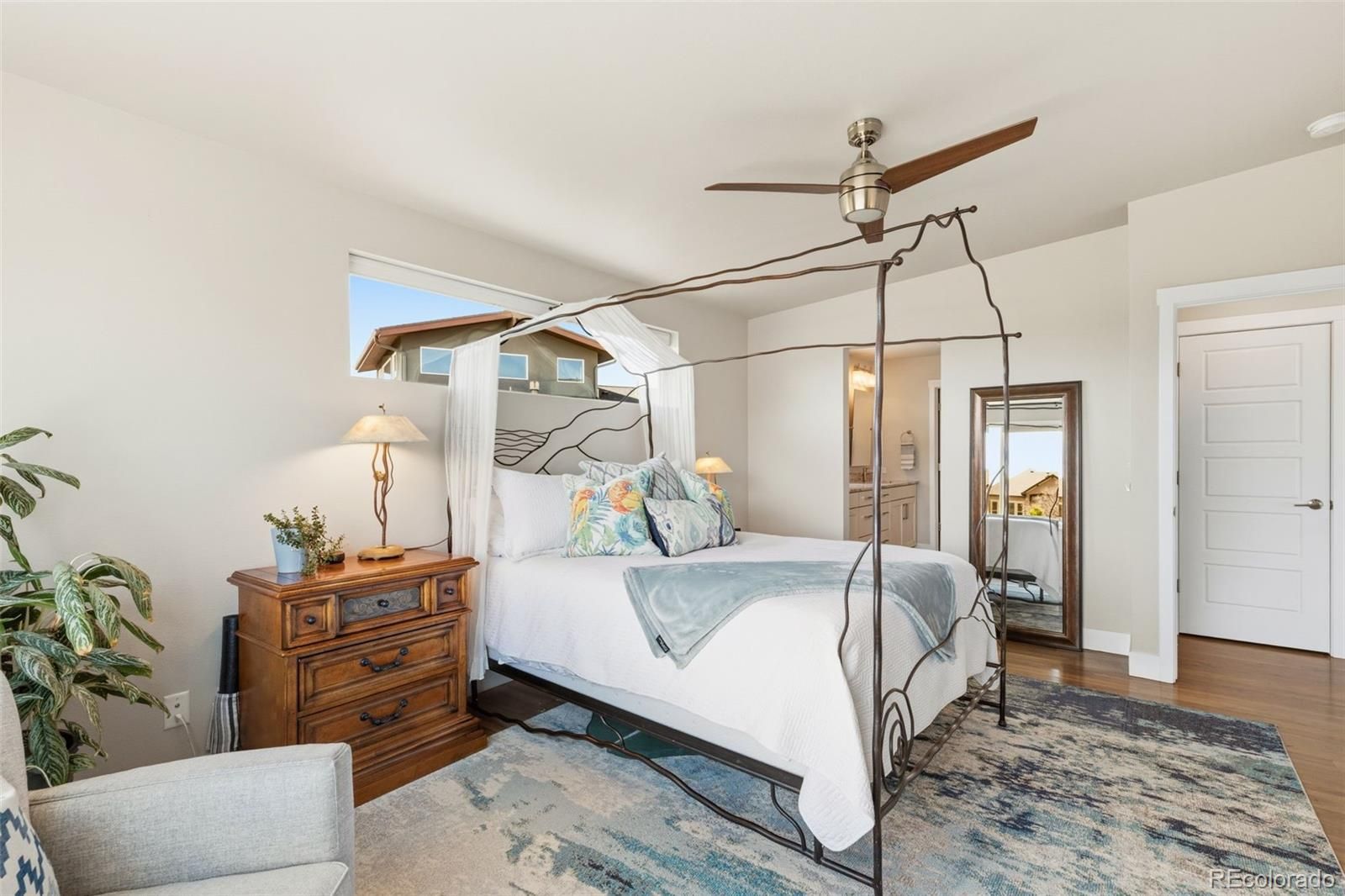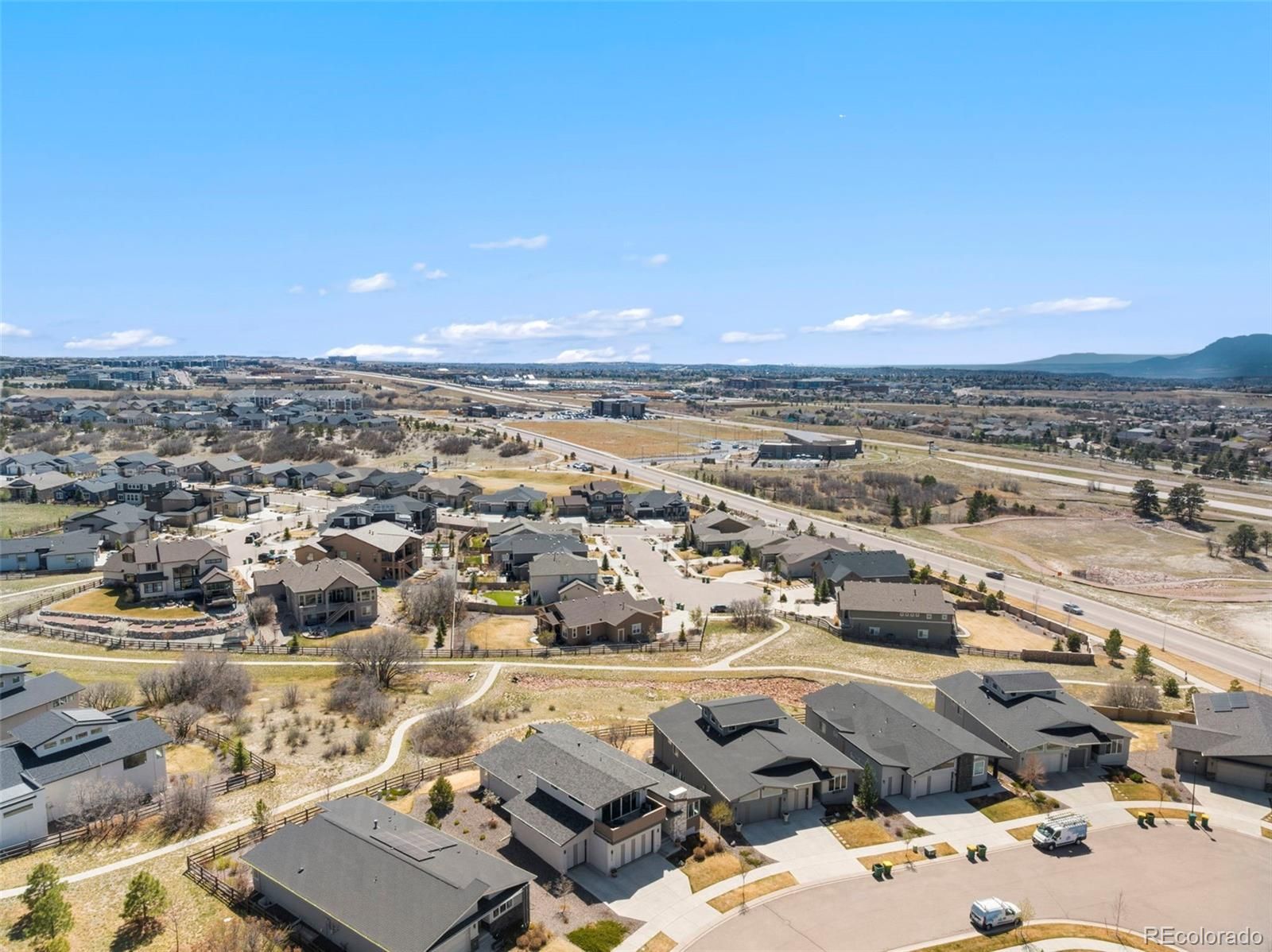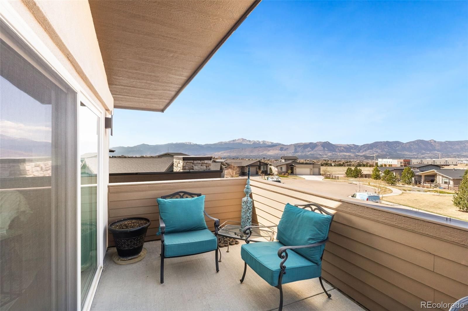 Welcome to an exceptional 6-bed, 5-bath residence in the prestigious Elan enclave of Cordera; featuring main level living with 2 true master suites-ideal for multi-generational living. Perfectly positioned against open space, this "premium lot" home offers privacy and sweeping mountain views. The Cordera community offers resort-style amenities, including a beautifully appointed clubhouse with pool, fitness center, outdoor gathering spaces, and miles of scenic trails. From the moment you arrive, the home’s striking stucco and stone exterior and professionally maintained landscaping, complete with snow removal to the front door, set the tone for effortless elegance. Inside, abundant natural light pours through expansive windows, highlighting rich hickory floors, high ceilings and thoughtfully designed living spaces. The main level showcases a stunning living room with oversized sliding doors opening to a covered composite patio, perfectly framing breathtaking views. The gourmet kitchen features quartz countertops, stainless steel appliances, gas range with hood, abundant cabinetry, generous counter space, and a walk-in pantry. A formal dining room, private office, and well-appointed laundry room with included washer and dryer complete the main level. A rare highlight is the presence of two primary suites. The main-level primary suite offers serene views and a beautifully appointed en suite bath, while an additional main-level bedroom captures Front Range vistas and is complemented by a nearby ¾ bath with designer finishes. Upstairs, the second primary suite serves as a true retreat, featuring a luxurious 5-piece bath, spacious walk-in closet, and private balcony access; offering unparalleled views of Pikes Peak and the Front Range. The finished lower level provides exceptional versatility with a large family room, wet bar, three additional bedrooms, two bathrooms, and ample storage throughout. A truly remarkable home in one of Cordera’s most desirable communities!