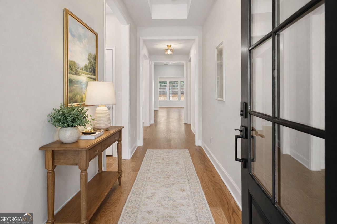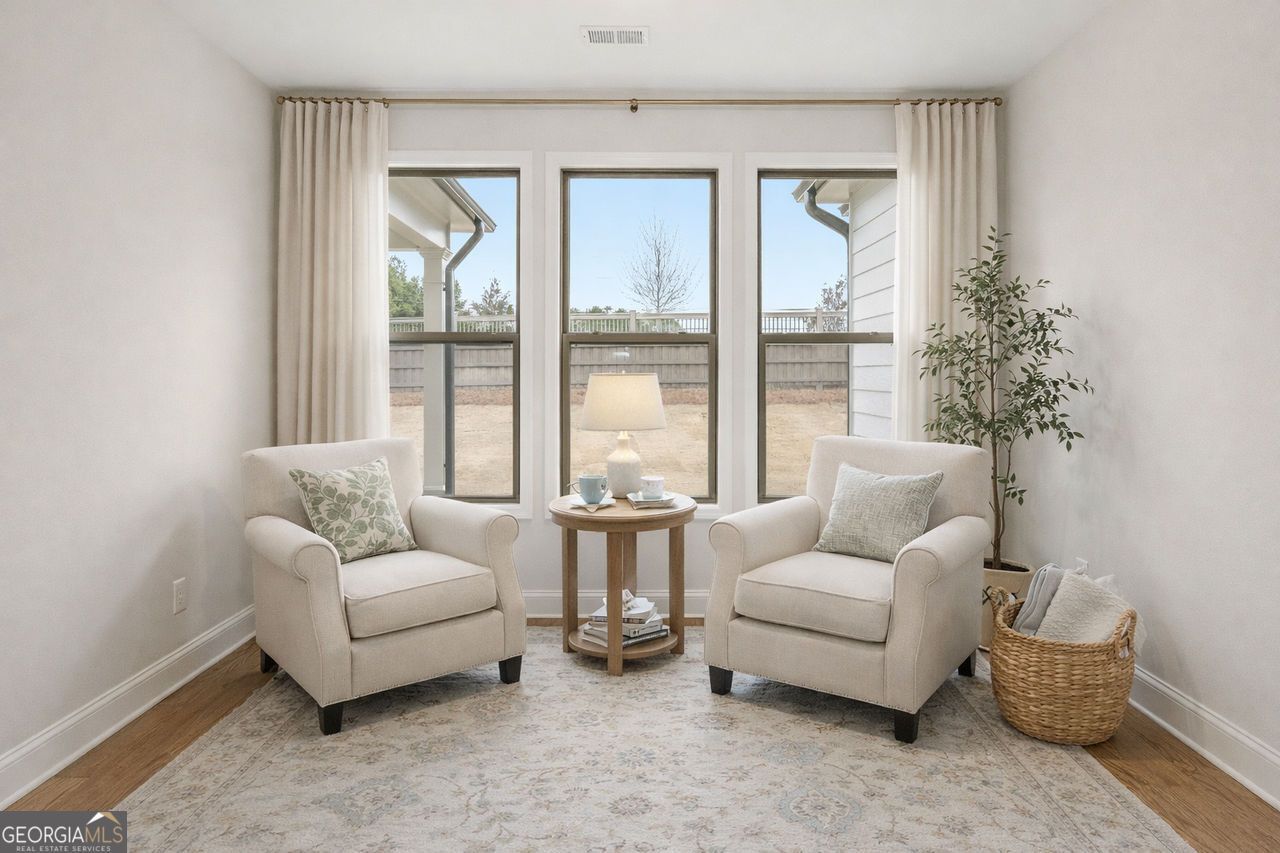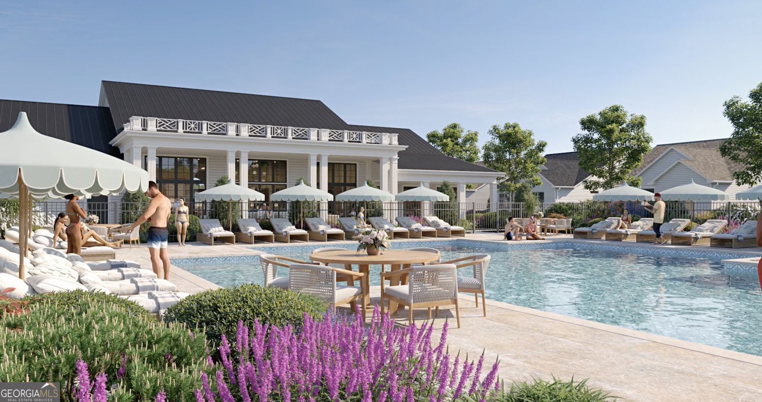 Welcome to Soleil Summit Chase-Snellville's newest premier 55 & Better luxury resort-style community by award-winning Patrick Malloy Communities. Where upscale living meets an active, vibrant lifestyle, this gated community offers an impressive collection of amenities designed for comfort, connection, and carefree living. Soleil Summit Chase features a stunning clubhouse equipped with a spacious great room and bar, a catering kitchen with entertainment space, card and game room, flex room, and a fully appointed fitness center with an outdoor yoga patio. Resort-style outdoor amenities include a grilling and fire-pit terrace, event lawn, community garden, dog park, Bocce ball and pickleball courts. Our dedicated Resort Lifestyle Director helps plan events, organize clubs, and coordinate tournaments-ensuring there's always something exciting to enjoy. The Denton A Plan is a highly sought-after floorplan offers exceptional spaces for everyday living and entertaining. The elegant foyer with a detailed tray ceiling leads past a versatile study/flex room and a private guest suite with a full bath. At the heart of the home, soaring 11' ceilings set the tone for the open concept living area, featuring a spacious family room and a chef's kitchen outfitted with premium appliances, designer tile, and a large island with seating. A bright, welcoming sunroom enhances the living space and provides the perfect place to unwind. Step outside to the covered rear patio-ideal for relaxing or hosting guests year-round, rain or shine. Owner's Suite & Additional Living Space is a serene retreat complete with a cozy bay sitting area, tray ceiling, spa-inspired bath with double vanity, walk-in shower, and an oversized walk-in closet. A fantastic bonus: the second-story retreat offers a loft, additional bedroom, and full bath-perfect for guests, hobbies, or extra privacy. Additional Features include Convenient laundry room with sink, 2-car garage, HOA-included lawn care, internet, and home security monitoring-giving you more time to enjoy the lifestyle you deserve