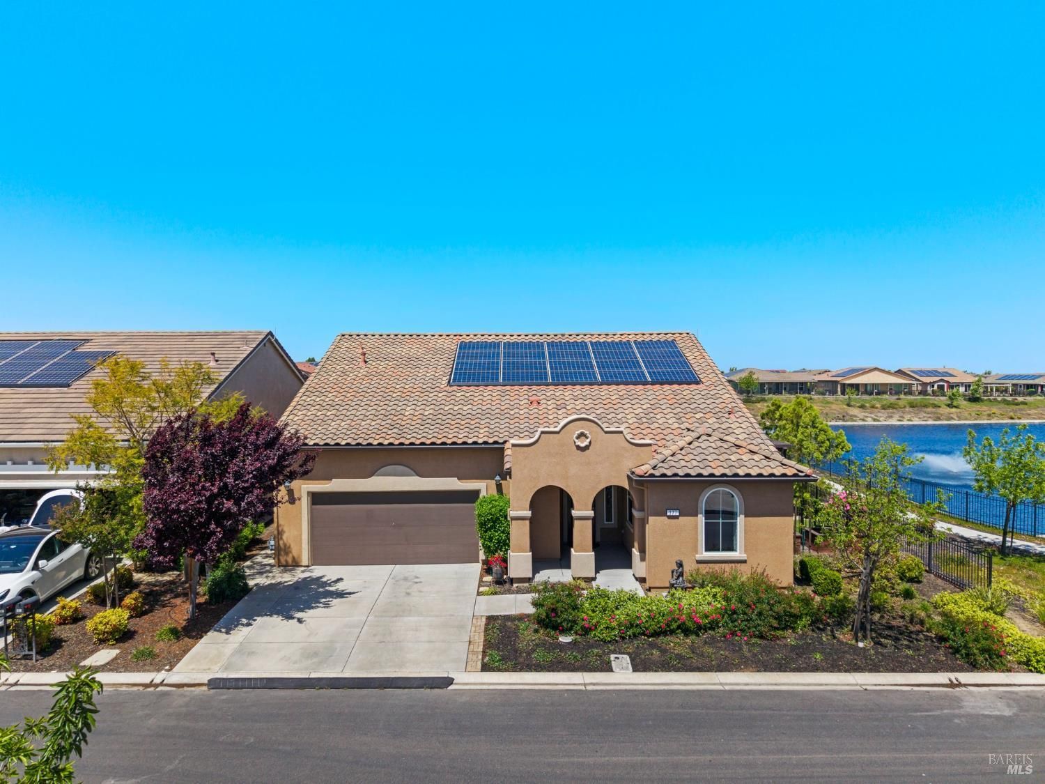 This is a rare opportunity to own one of Trilogy Rio Vista's most spectacular homes beautifully positioned on the community's largest lake! Welcome to 377 Silver Ridge Drive, where breathtaking lake views, solar, modern upgrades, and an unbeatable location come together seamlessly. This spacious Rejuvenate floor plan offers a bright, open layout with two large bedrooms, a dedicated den/office, and an extra flex space ideal for a 2nd office, craft room, or hobby area. Rich ceramic flooring with a woodgrain pattern flows throughout, creating a warm and stylish foundation for everyday living. Enjoy stunning water views the moment you walk through the door! Step outside to your private, fenced-in side yard with a covered patio the perfect place to sip your morning coffee, entertain friends, or soak in the peaceful scenery. You're just two blocks away from Trilogy's popular dog park. Life in Trilogy offers access to world-class amenities, including an 18-hole championship golf course, a resort-style clubhouse, fitness center, indoor and outdoor pools, tennis, pickleball, a full-service spa, bocce ball, dining options, clubs, events, and activities to suit every interest. Lakefront homes like this are rare, don't miss your chance to live the Trilogy lifestyle at 377 Silver Ridge Drive!