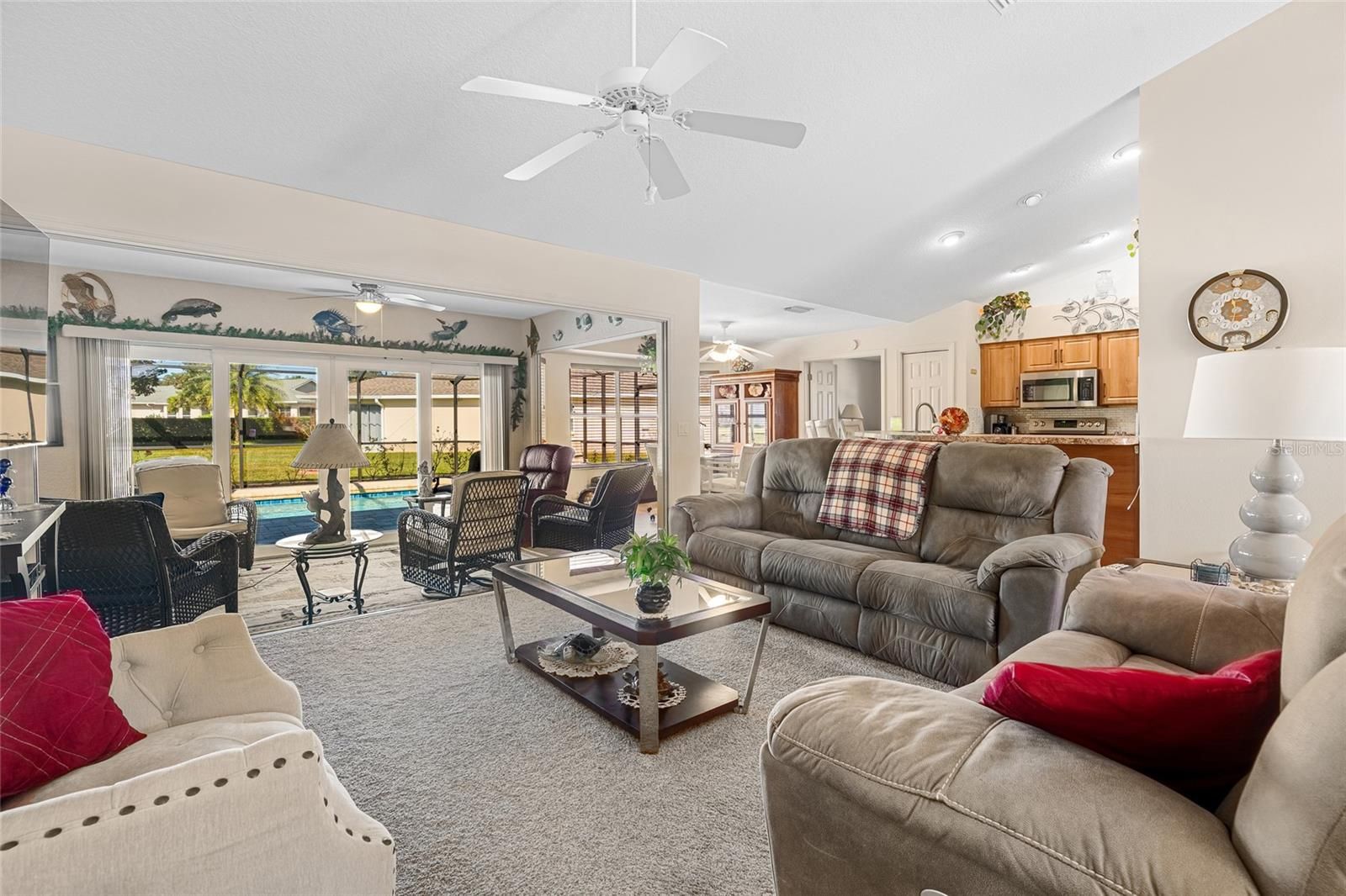 - Ceiling Fan(s), Eat-in Kitchen, High Ceilings, Kitchen/Family Room Combo, Open Floorplan, Vaulted Ceiling(s), Walk-In Closet(s)