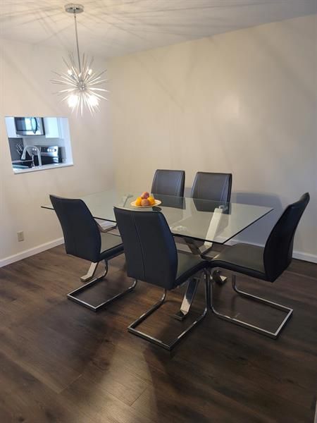 Spacious and exquisitely appointed 2-bedroom, 2-bathroom residence located in the desirable 55+ gated community of Las Vistas, featuring 24-hour security for peace of mind. The updated, stylish kitchen boasts stainless steel appliances, including a refrigerator, stove, microwave, and dishwasher. The home is enhanced with elegant vinyl wood flooring throughout, adding both warmth and durability. Both bathrooms are generously sized, offering comfort and convenience. Community amenities include 5 swimming pools, shuffleboard courts, clubhouse with a card room, library, gym, and a large recreation and meeting room. Ideally situated near shopping, dining, and major roadways for easy access to everything you need. Don’t miss an opportunity to own this unit! Please schedule your showing today!