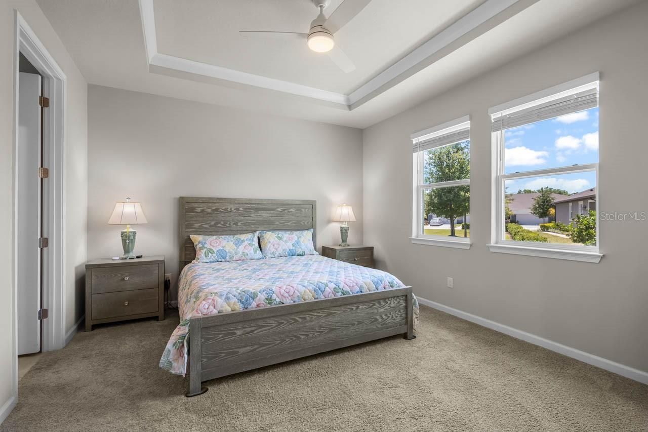 - Ceiling Fan(s), Crown Molding, High Ceilings, In-Wall Pest Control, Main Level Primary, Split Bedrooms, Stone Counters, Thermostat, Tray Ceiling(s), Walk-In Closet(s)