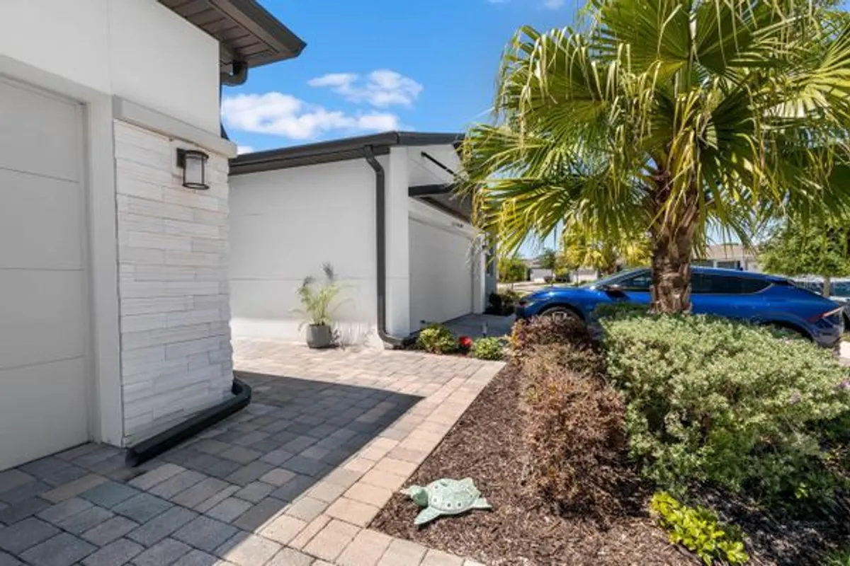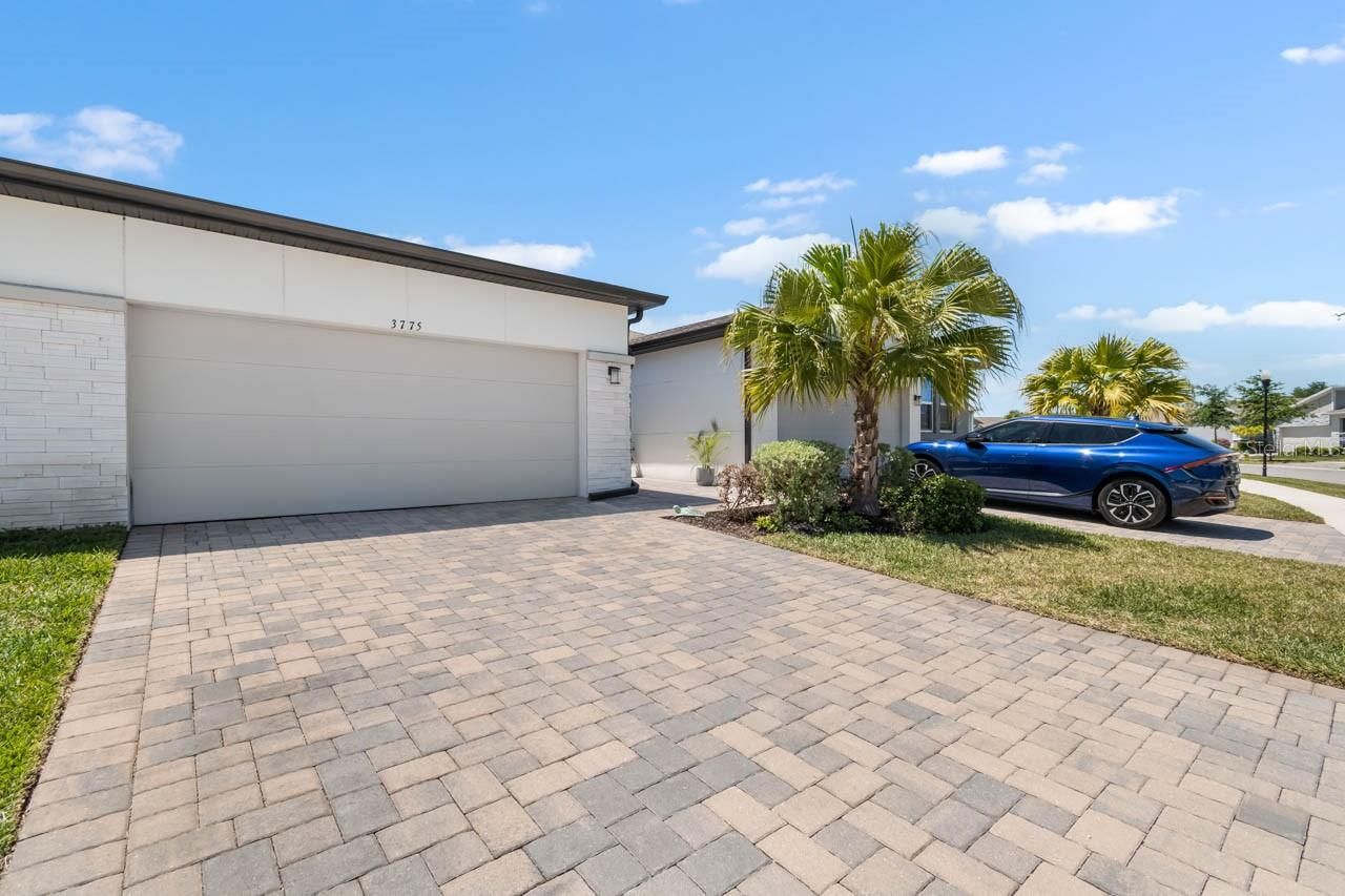 Experience the pinnacle of Florida living in La Paloma Preserve. Situated within Sun City Center’s premier 55+ gated, golf cart–friendly community, which offers resort-style amenities, including pickleball courts, a pool with lap lanes, a spa, and a fire pit gathering area. The low monthly HOA fee provides exceptional value and peace of mind by covering exterior maintenance, lawn care, scheduled exterior painting, and even future roof replacement through the community reserve fund. Step through the elegant glass front door into an expansive, light-filled open floor plan. The contemporary interior is accentuated by recessed and pendant lighting, as well as triple sliding glass doors. In the chef-inspired kitchen, you will find gray cabinetry with crown molding, sleek quartz countertops, custom pull-out drawers, and premium upgraded appliances. The primary suite serves as a private retreat with large windows, a tray ceiling with crown molding, and a spa-inspired en-suite bath featuring dual square sinks, quartz countertops, gray cabinetry with drawers, a linen closet, a large walk-in shower with a glass enclosure, and an expansive walk-in closet. This move-in-ready, turnkey home features a modern secondary bathroom, a screened brick-paver lanai, fresh interior paint, and a washer and dryer.