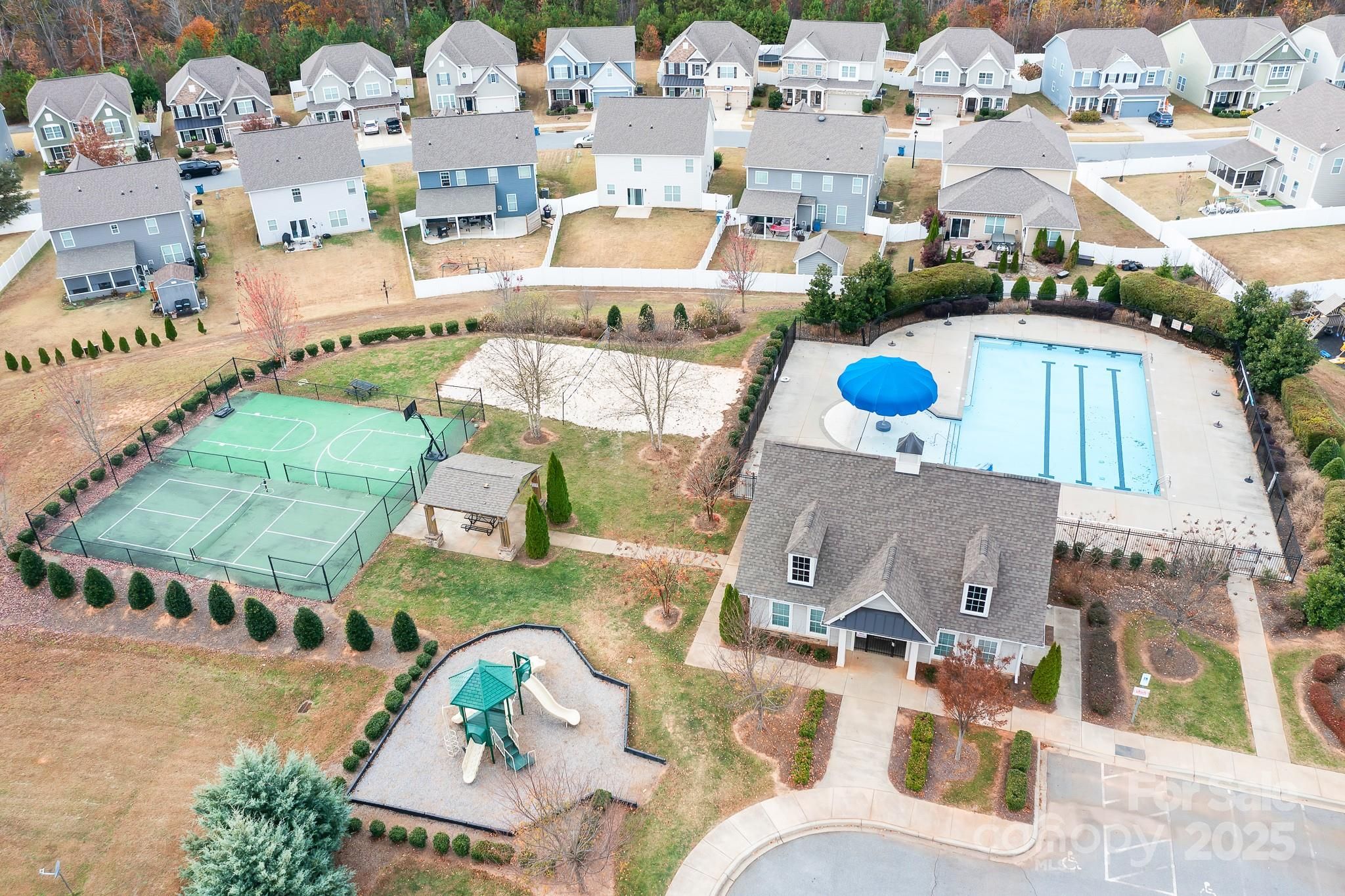 - Clubhouse, Outdoor Pool, Picnic Area, Playground, Sidewalks, Street Lights, Tennis Court(s)