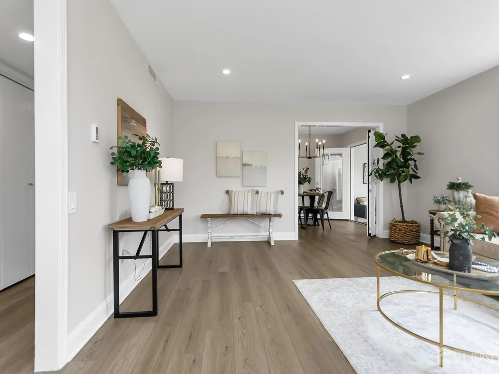 Beautifully Renovated Lower-Level Condo in Rossmoor's Premier Adult Community Enjoy carefree living in this fully renovated 2-bedroom, 2-bath condo located in the sought-after adult community of Rossmoor. This bright and airy lower-level home offers a comfortable and thoughtful layout with updates throughout. The spacious living room is filled with natural light and features beautiful views of Rossmoor's private 18-hole championship golf course. It flows into the dining area, where French doors open to a bright 3-season roomperfect for relaxing or entertaining most of the year. The updated kitchen is light and bright, with a seamless connection to the dining space for easy everyday living. There are two generous bedrooms, including a primary suite with a stylish picture frame molding accent wall and a beautifully updated en-suite bath featuring a walk-in shower. The second full bath has also been tastefully renovated and includes the added convenience of an in-unit washer and dryer. Residents of Rossmoor enjoy an active lifestyle with access to a clubhouse, swimming pool, tennis courts, and a professionally designed golf courseall just steps from your front door.