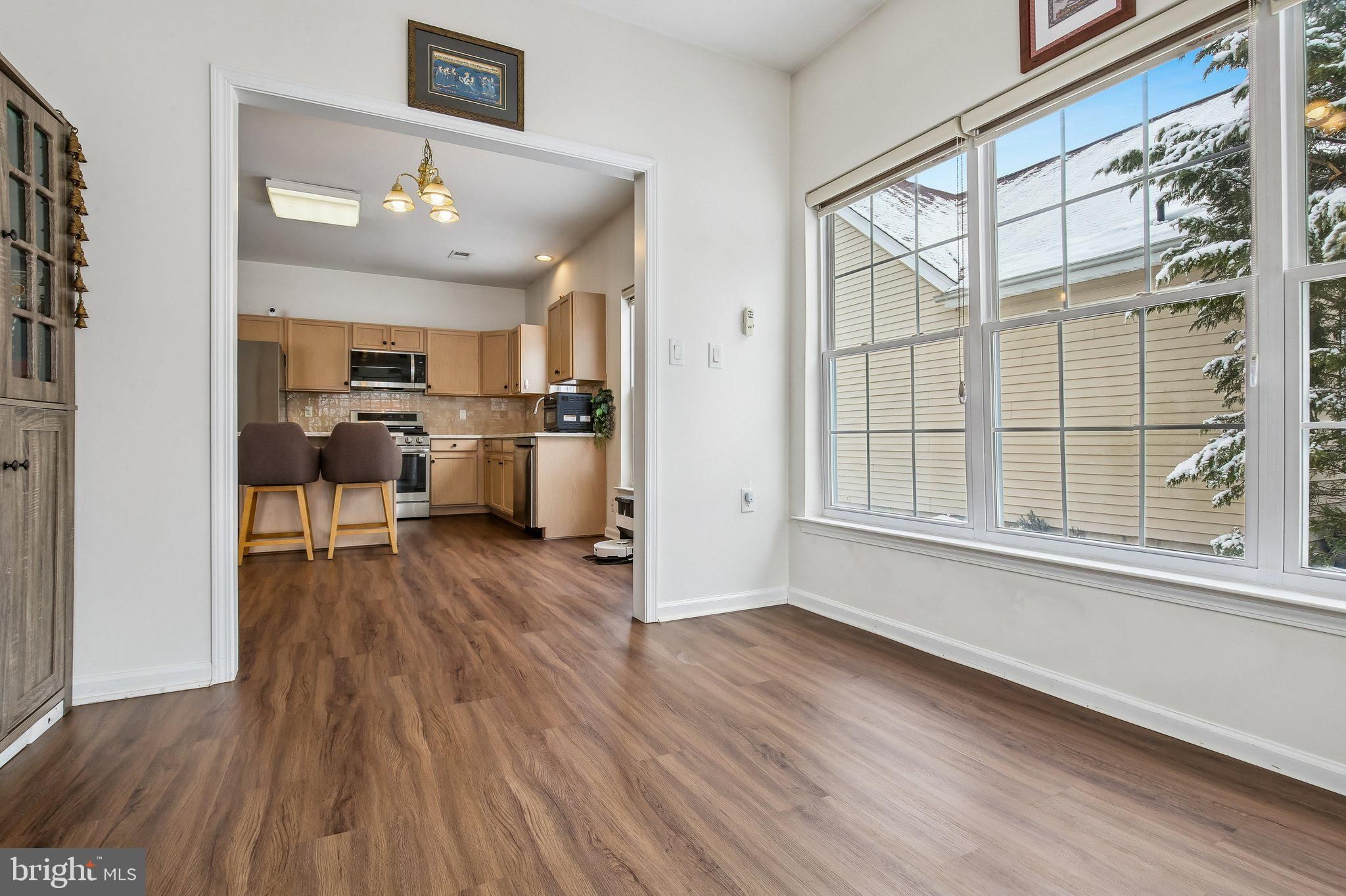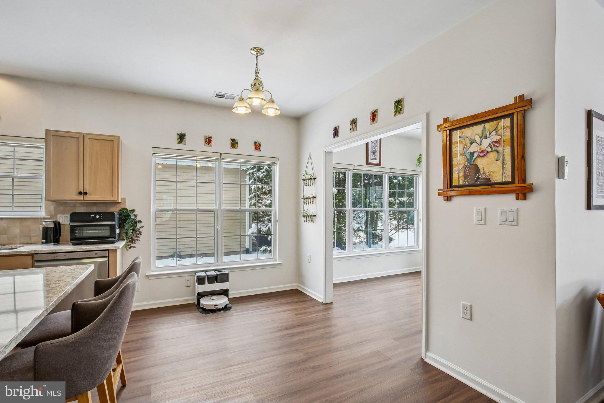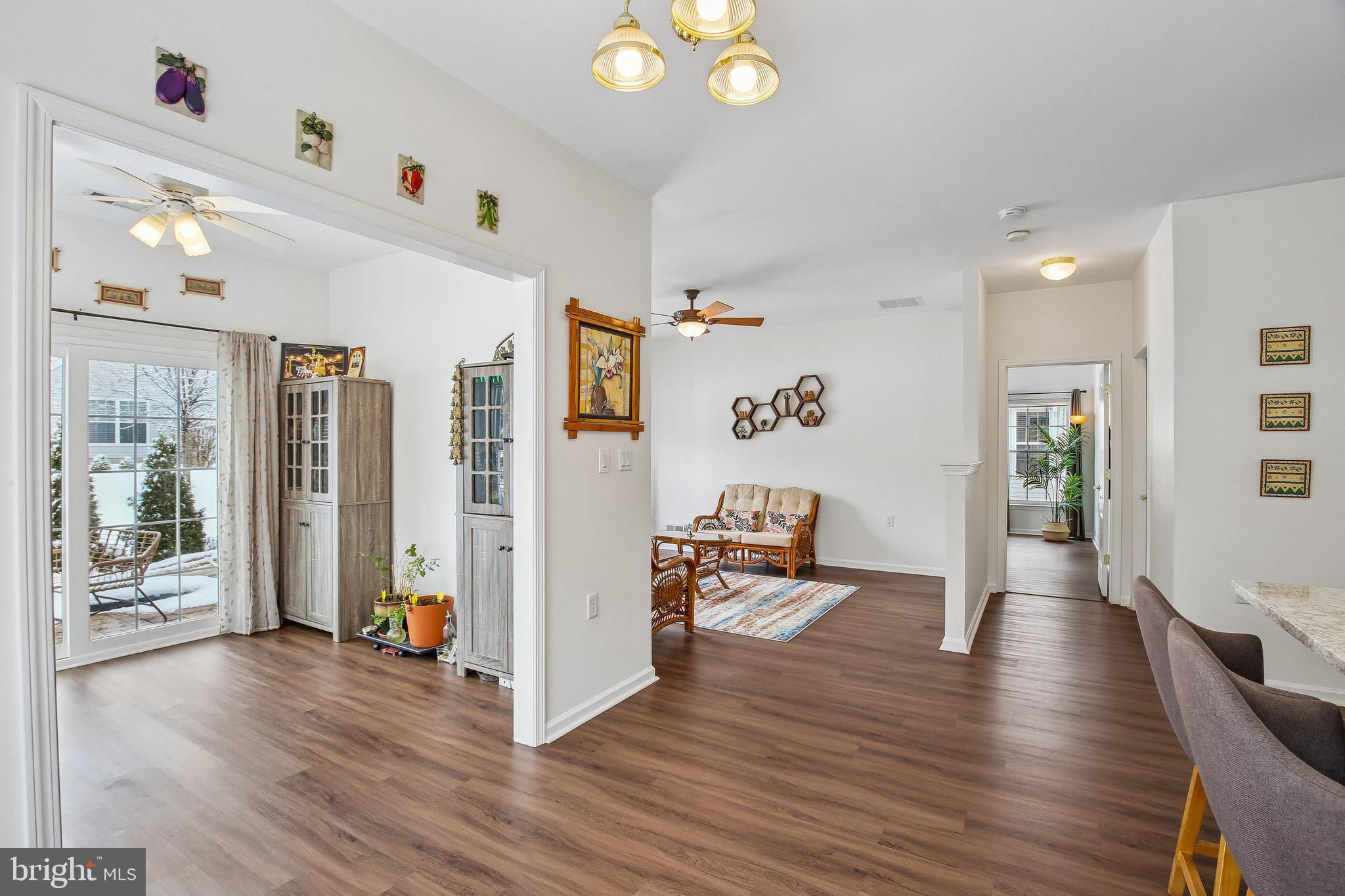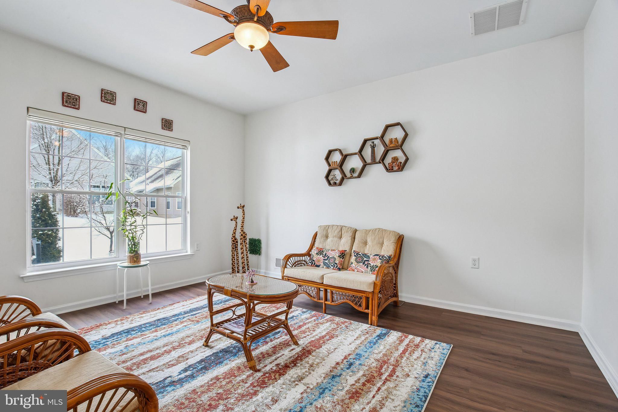 Welcome to this beautifully maintained and thoughtfully upgraded Coventry model offering 2 bedrooms and 2 full baths in the active adult community of Village Grande at Bear Creek. With over $51,000 in recent improvements, including an almost brand new roof (2024), this home provides the peace of mind today’s buyers are looking for, with many of the big-ticket items already taken care of. Step inside to find luxury vinyl flooring throughout the entire home (2022), creating a seamless and modern look across the spacious living and dining areas. The open-concept layout flows effortlessly into the kitchen, which features quartz countertops (2023), Kohler sink and faucet, a full suite of six LG stainless steel appliances (2023), a pantry, and a breakfast nook overlooking the backyard. The adjacent sunroom is filled with natural light and provides access to the paver patio (2023), offering a perfect outdoor retreat with landscaped surroundings and a tree-lined buffer for added privacy. The primary suite features a tray ceiling, large walk-in closets with custom shelving, and an en-suite bath with double vanity, soaking tub, and separate shower. A second bedroom and full bath provide flexibility for guests or a home office. The laundry room is conveniently located and includes newer LG washer and dryer. Additional recent updates include a water heater (2025), new sliding door with insect mesh (2024), Andersen retractable storm door (2023), both toilets replaced (2025), window blinds (2022), and a smart thermostat (2023), all under the almost brand new roof (2024). The roof includes a transferable 10-year workmanship warranty and lifetime shingle warranty. In addition, the six LG kitchen appliances are covered by a transferable 5-year Protection Plan active through November 25, 2028. Village Grande residents enjoy resort-style amenities including indoor and outdoor swimming pools, a fitness center, tennis, bocce and pickleball courts, billiards, shuffleboard, scenic paths, and a vibrant clubhouse filled with activities and friendly faces. This 55+ age-restricted community requires at least one occupant to be 55 or older, with no residents under 19 years of age. With a two-car garage and a layout designed for easy one-level living, this home combines comfort, functionality, and major recent upgrades in one of West Windsor’s premier 55+ communities.