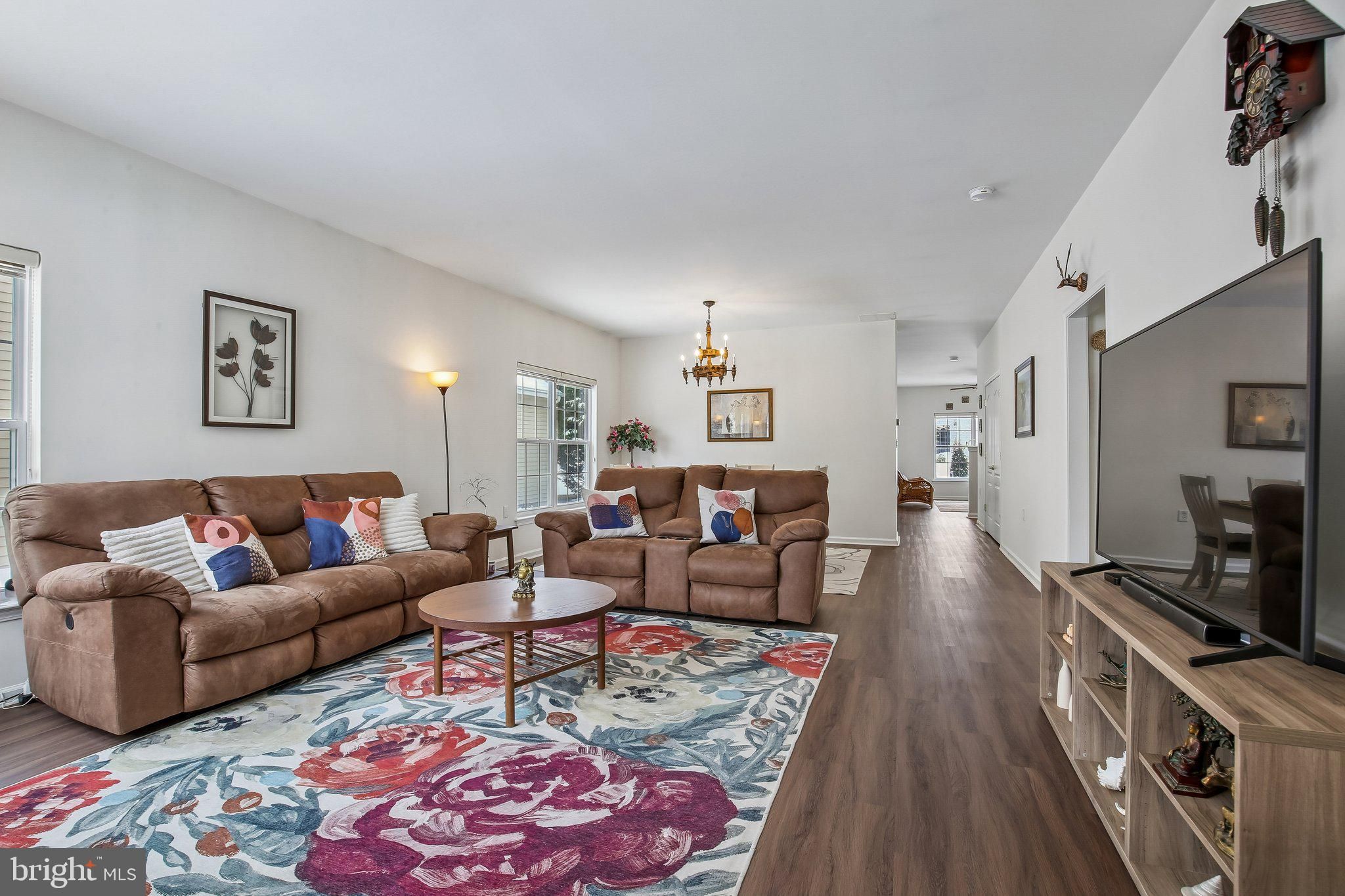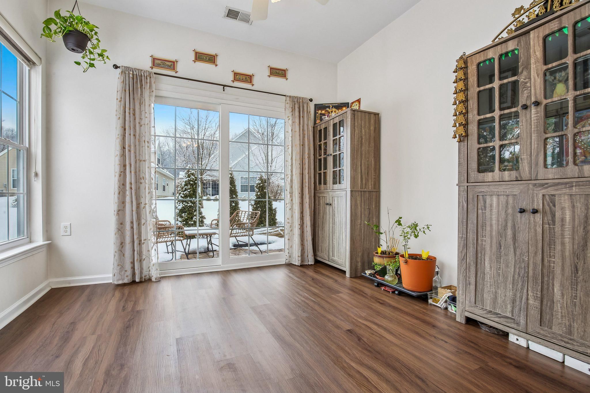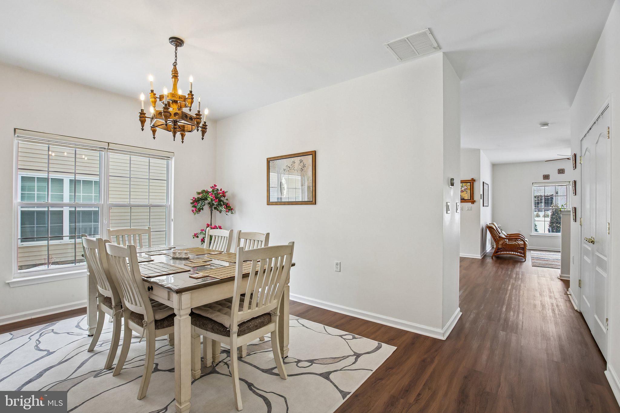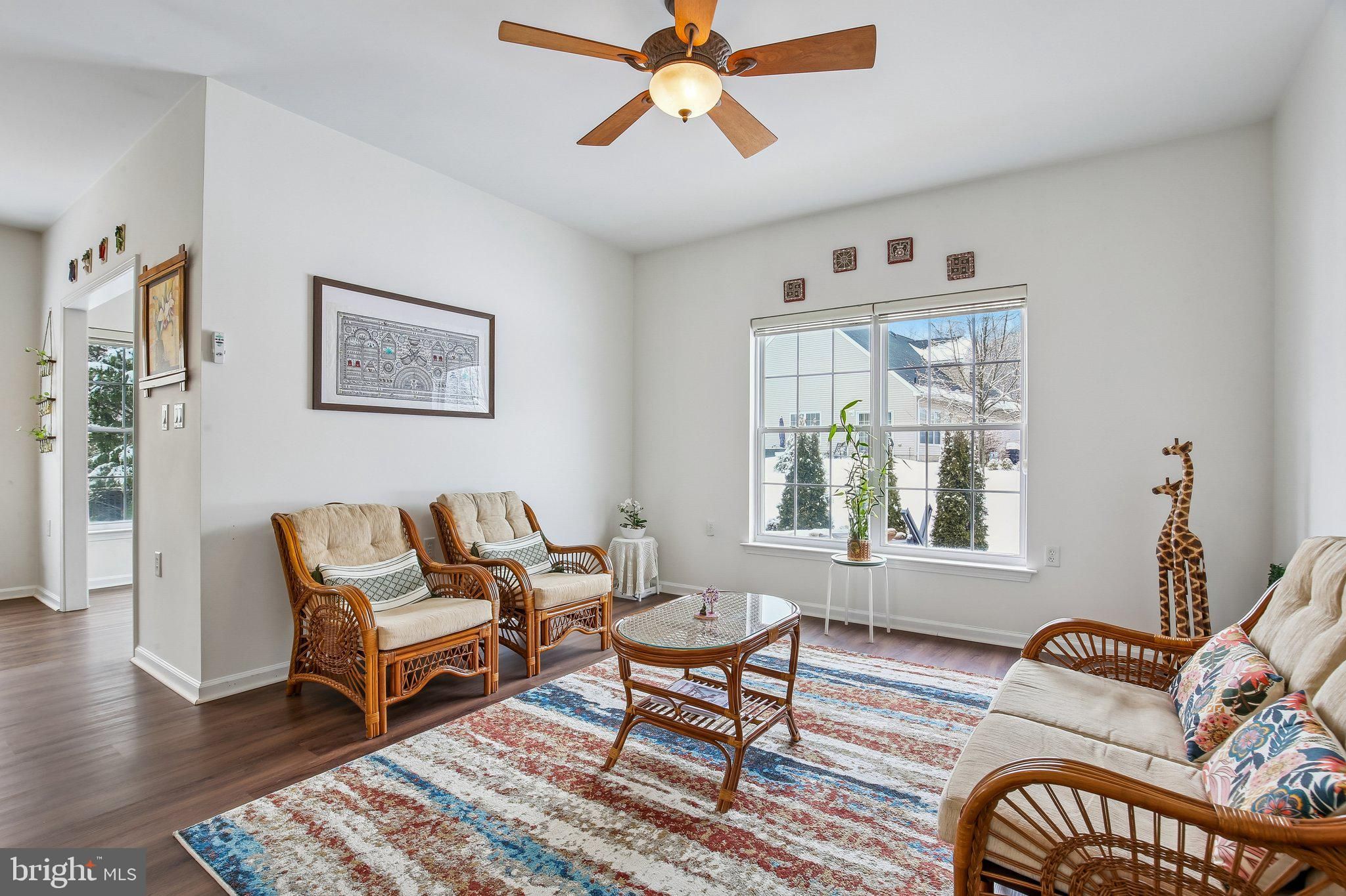 Welcome to this beautifully maintained and thoughtfully upgraded Coventry model offering 2 bedrooms and 2 full baths in the active adult community of Village Grande at Bear Creek. With over $51,000 in recent improvements, including an almost brand new roof (2024), this home provides the peace of mind today’s buyers are looking for, with many of the big-ticket items already taken care of. Step inside to find luxury vinyl flooring throughout the entire home (2022), creating a seamless and modern look across the spacious living and dining areas. The open-concept layout flows effortlessly into the kitchen, which features quartz countertops (2023), Kohler sink and faucet, a full suite of six LG stainless steel appliances (2023), a pantry, and a breakfast nook overlooking the backyard. The adjacent sunroom is filled with natural light and provides access to the paver patio (2023), offering a perfect outdoor retreat with landscaped surroundings and a tree-lined buffer for added privacy. The primary suite features a tray ceiling, large walk-in closets with custom shelving, and an en-suite bath with double vanity, soaking tub, and separate shower. A second bedroom and full bath provide flexibility for guests or a home office. The laundry room is conveniently located and includes newer LG washer and dryer. Additional recent updates include a water heater (2025), new sliding door with insect mesh (2024), Andersen retractable storm door (2023), both toilets replaced (2025), window blinds (2022), and a smart thermostat (2023), all under the almost brand new roof (2024). The roof includes a transferable 10-year workmanship warranty and lifetime shingle warranty. In addition, the six LG kitchen appliances are covered by a transferable 5-year Protection Plan active through November 25, 2028. Village Grande residents enjoy resort-style amenities including indoor and outdoor swimming pools, a fitness center, tennis, bocce and pickleball courts, billiards, shuffleboard, scenic paths, and a vibrant clubhouse filled with activities and friendly faces. This 55+ age-restricted community requires at least one occupant to be 55 or older, with no residents under 19 years of age. With a two-car garage and a layout designed for easy one-level living, this home combines comfort, functionality, and major recent upgrades in one of West Windsor’s premier 55+ communities.