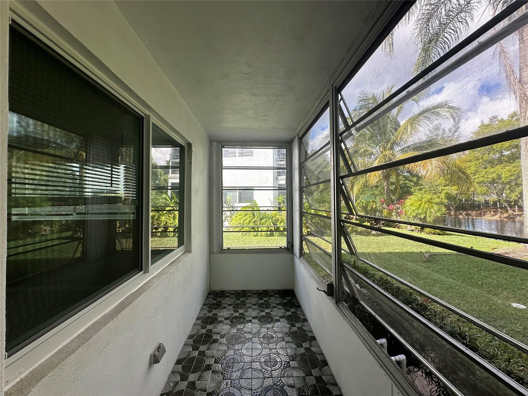 Beatutiful, Bright, and Spacious 1st Floor Corner Unit with Lush Garden and Waterviews. This Condo Features Tile Floors Throughout, Fresh Paint, Smooth Ceilings, Ceiling Fans with Remote Controls, Additinal Windows, Updated Bathrooms, Screened Porch Overlooking The Canal and Graden, Central Air Conditioning, and More. Located in Century Village, an Active 55+ Gated Community with all the ammenities of a Country Club including, Clubhouse, Tennis, Billiards, Heated Pool. Gym, Theater, Arts and crafts, Cafe, Jogging Trail, Bus Shuttle Service, and Much more. This building allows rentals from day 1 -No rental Restrctions. . Brand New Impact Windows being installed this week.