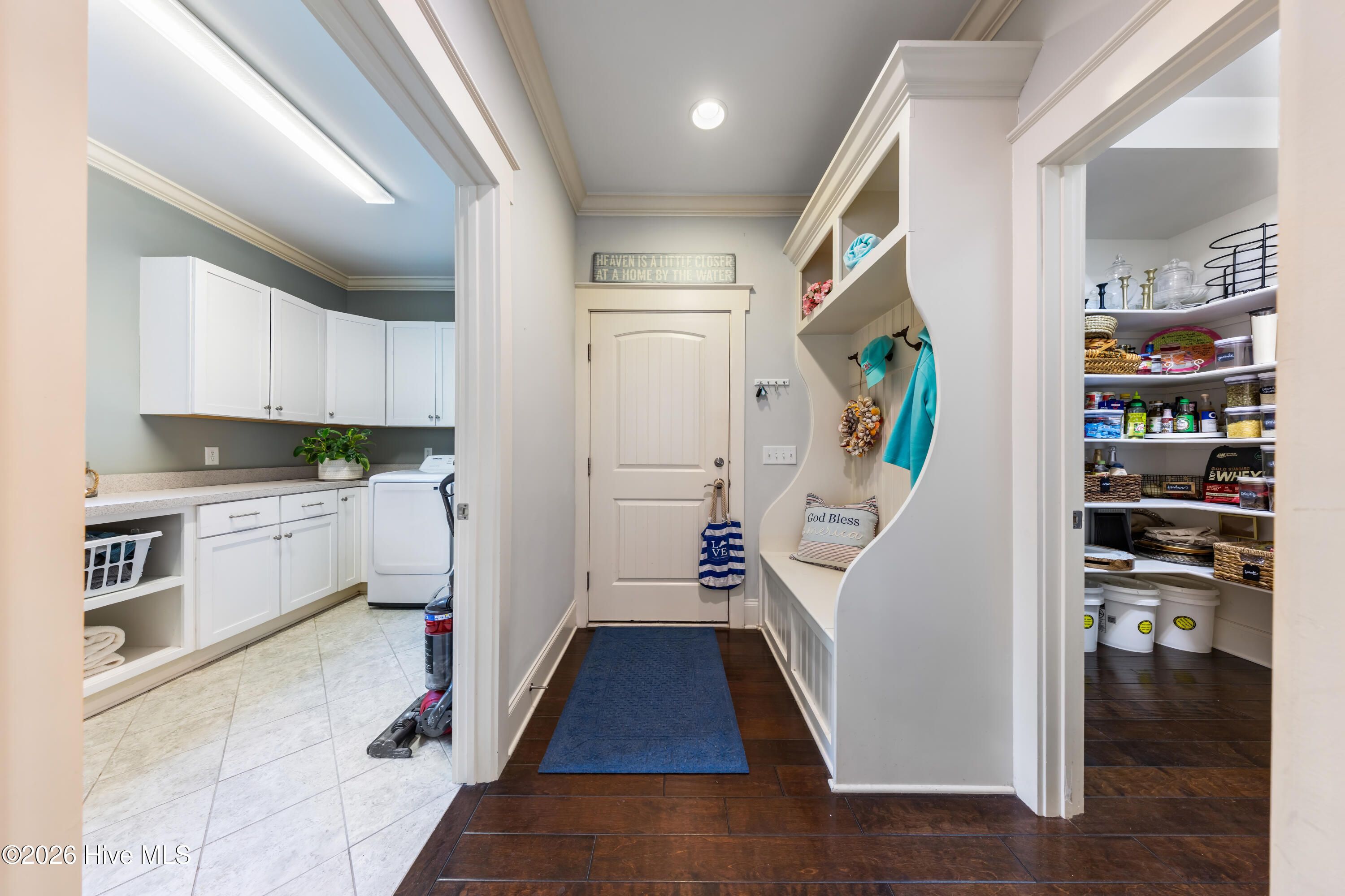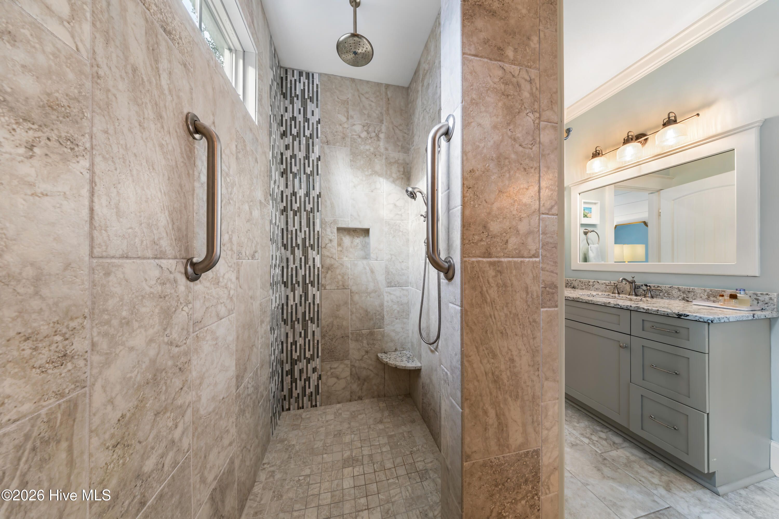 - Sound System, Master Downstairs, Walk-In Closet(s), High Ceilings, Entrance Foyer, Mud Room, Solid Surface Counters, Ceiling Fan(s), Pantry, Walk-In Shower, Blinds