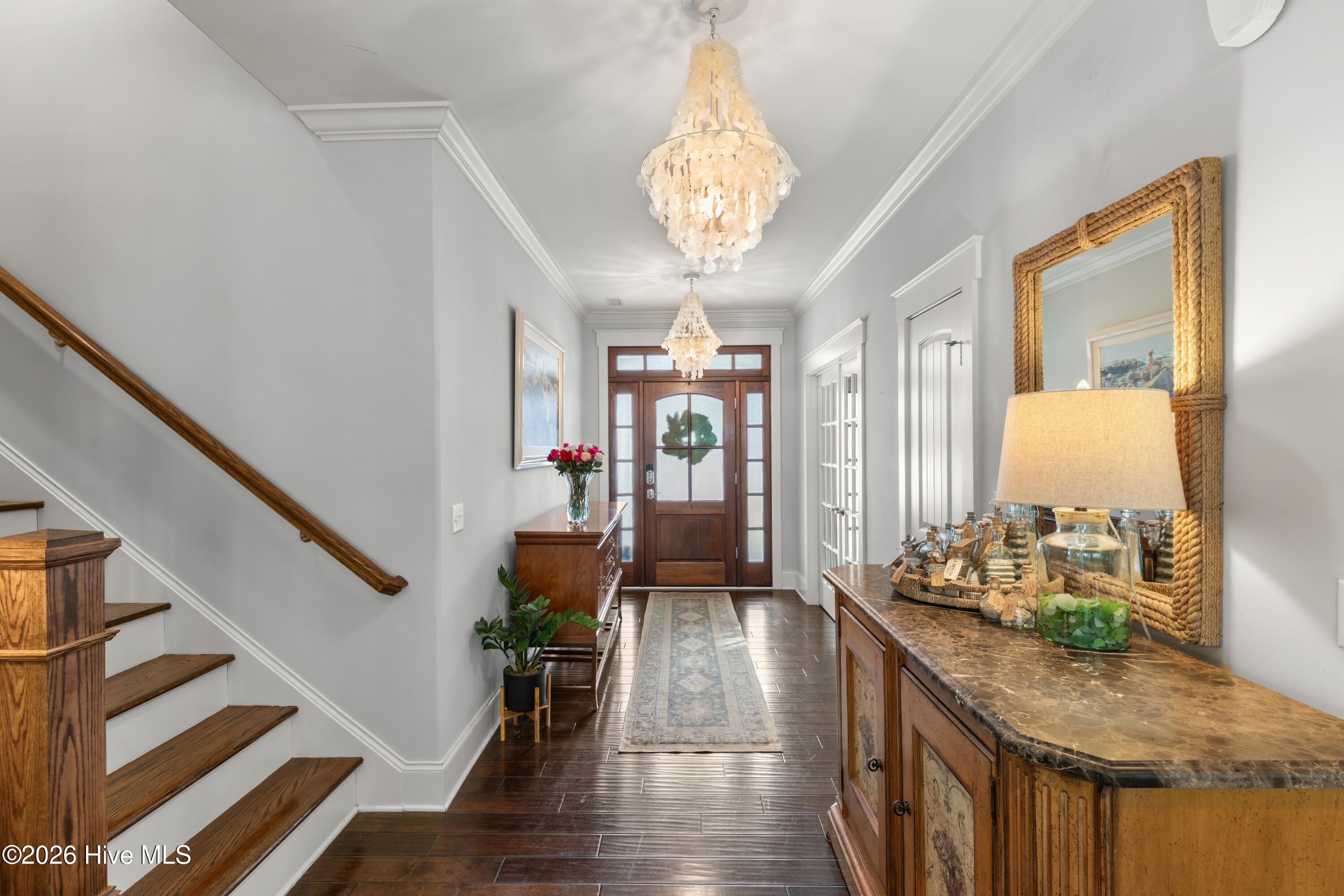 You truly can have it all with this one-of-a-kind custom coastal home, ideally located just steps from The Reserve Club in one of the most prestigious neighborhoods of The Reserve at St. James Plantation. Set on a serene pond-front lot, the home offers exceptional privacy, tranquil water views, and a private saltwater pool, creating a rare and highly desirable lifestyle opportunity. Designed for today's energy-conscious buyer, the home features a brand-new hybrid solar panel system with battery storage, resulting in little to no electric bill while supporting major appliances, pool operation, hot water, and providing peace of mind during power outages. Additional efficiency features include a tankless water heater, EV charger, and newer HVAC unit—reflecting a thoughtful, forward-thinking approach to ownership. Inside, refined elegance meets functional design. Rich hardwood floors, detailed millwork, quality craftsmanship, and an abundance of natural light define the interior. The expansive open-concept layout allows for seamless flow between the main living areas and outdoor spaces, enhancing both everyday living and entertaining. The impressive kitchen is both beautiful and practical, showcasing custom cabinetry, granite countertops, gas cooking, premium stainless-steel appliances, and a substantial island that anchors the sun-filled dining and living areas, all centered around a striking fireplace. The well-proportioned floor plan offers generous living spaces and exceptional flexibility. The first floor includes a private mother-in-law suite, ideal for guests or multigenerational living. The primary suite is a true retreat, featuring tray ceilings, abundant natural light, and a spa-inspired bath with dual vanities and an oversized walk-in shower. Additional guest rooms and flexible spaces provide comfort and privacy throughout the home. An expansive upstairs bonus room offers exceptional separation with its own door, full bath, and separate HVAC zone. Outdoor living is a defining feature of this property. The private saltwater pool is surrounded by seating areas overlooking the pond, creating an inviting setting for relaxation or entertaining. The pond is stocked with largemouth bass, adding a unique lifestyle element and reinforcing the home's connection to nature. Mature landscaping enhances privacy while maintaining open sightlines and a peaceful backdrop. A glass-enclosed porch and expansive patio further extend the living space outdoors, creating a true retreat-like atmosphere. Additional features include abundant walk-in attic storage, a utility sink, ample cabinetry, and an oversized two-car garage with a dedicated storage closet. Located within one of St. James Plantation's most desirable communities, The Reserve is known for its custom homes, established streetscapes, and proximity to premier amenities.