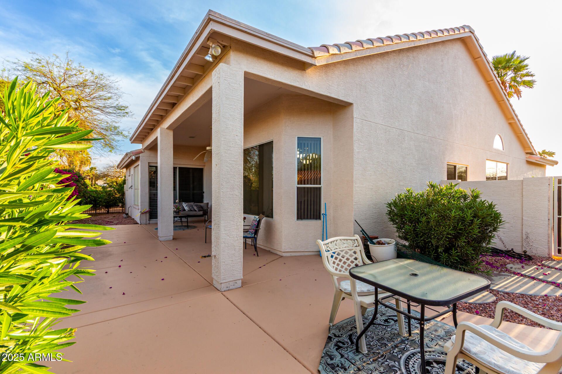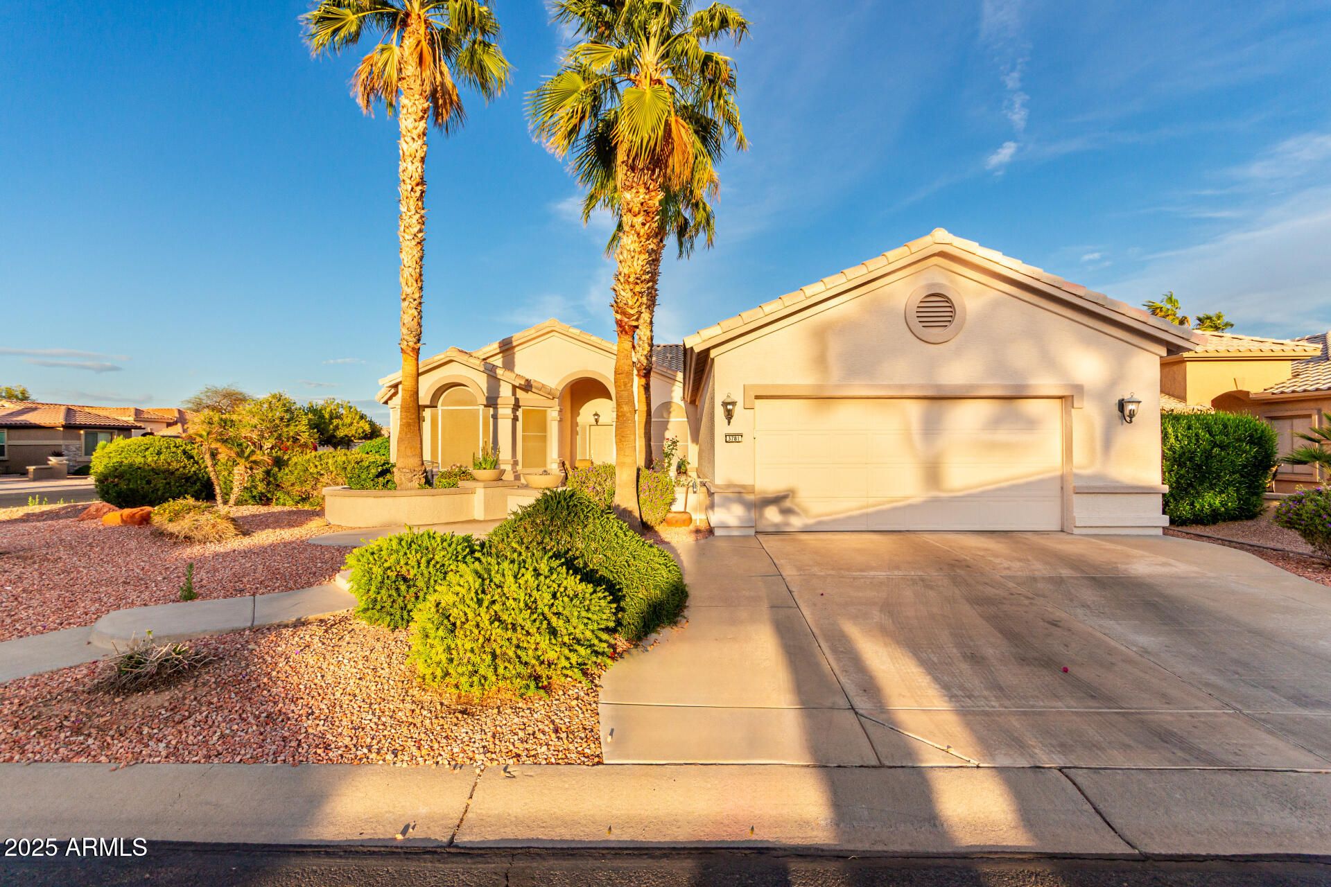 Charming home in Pebblecreek is on the market! Nestled on a desirable corner lot, this beauty showcases a great curb appeal, a manicured landscape, a front patio, & a 2-car garage. The interior boasts spacious living areas, vaulted ceilings, plantation shutters, and delightful arched doorways. The large kitchen displays recessed lighting, tile flooring, plentiful storage, built-in appliances, and a peninsula with a breakfast bar. The family area offers easy outdoor access for convenience. Rest after a long day in the lavish main retreat featuring carpet, a closet, and a bathroom with dual sinks, an enclosed shower, & a soaking tub. Enjoy your morning brew on the back patio for a peaceful time admiring the colorful scenery of the backyard. What's not to love? Don't miss this gem!