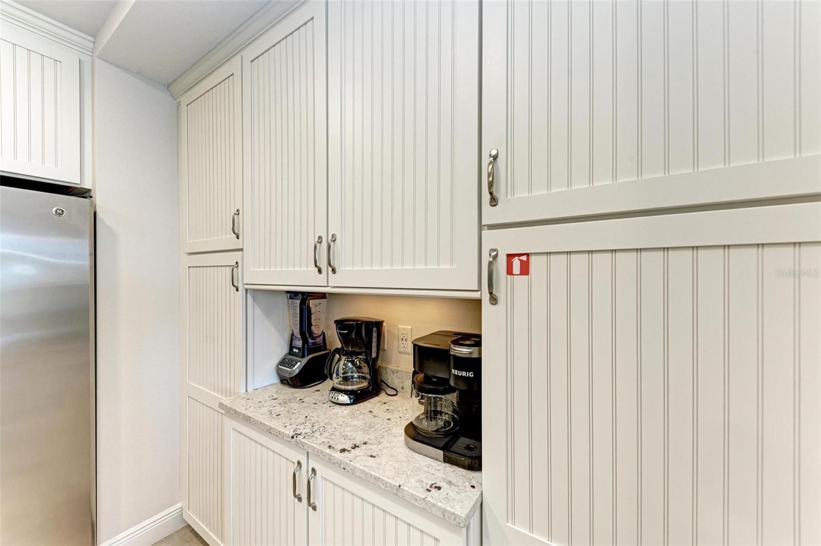 - Ceiling Fan(s), Eat-in Kitchen, Elevator, High Ceilings, Kitchen/Family Room Combo, Open Floorplan, Solid-Wood Cabinets, Split Bedrooms, Stone Counters, Thermostat, Walk-In Closet(s), Window Treatments