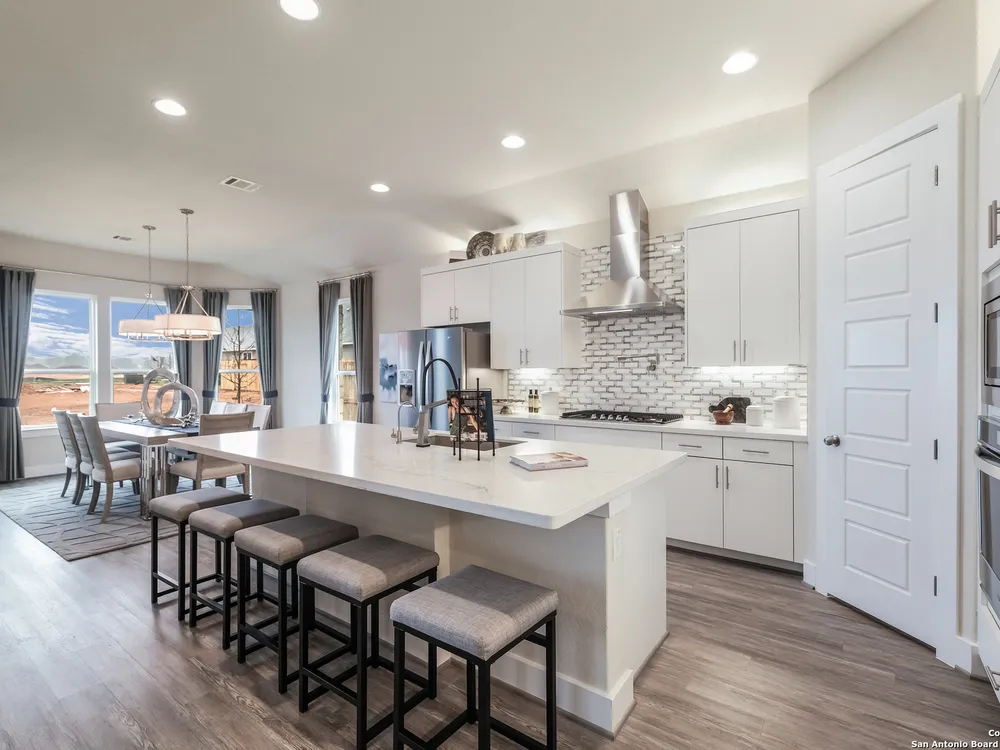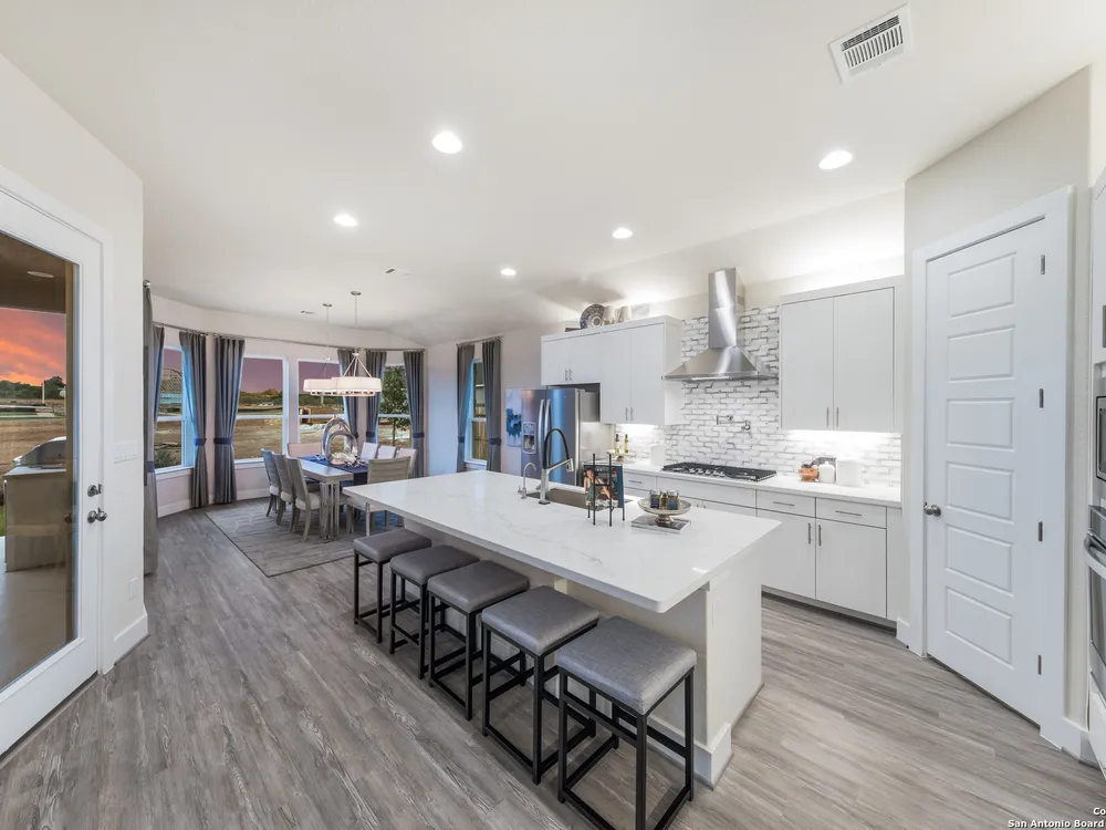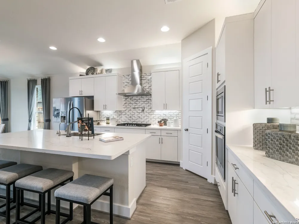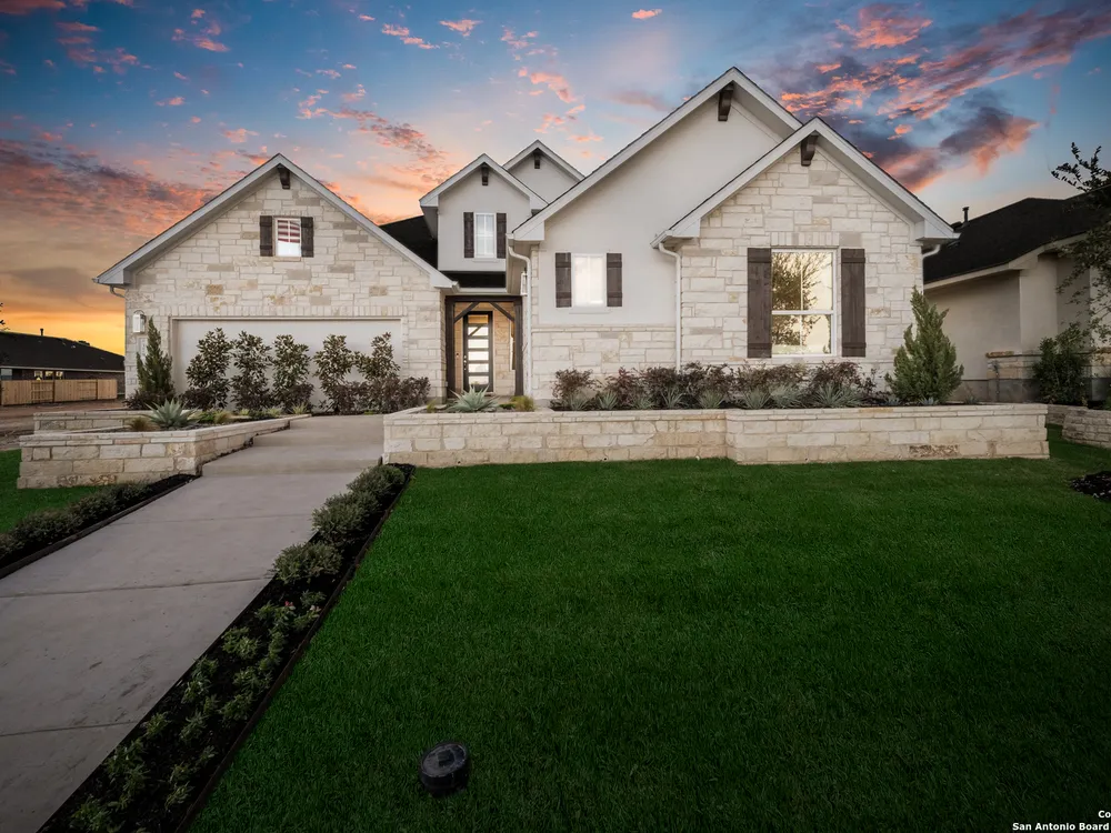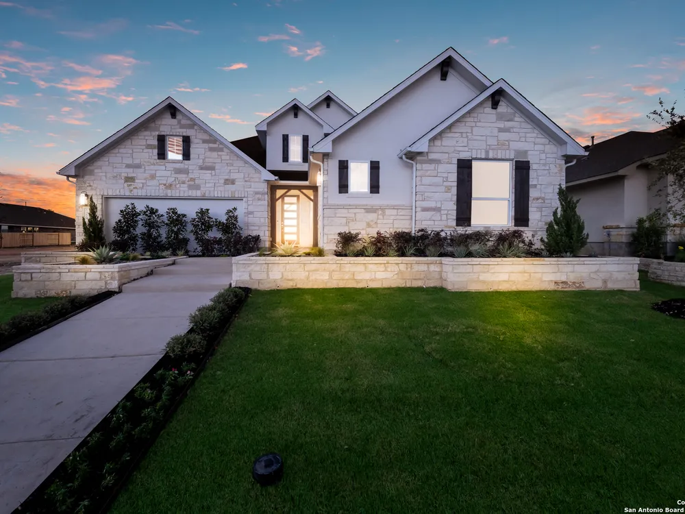 Exquisite 4-Bed, 4-Bath Home with Casita attached & Luxurious Upgrades in Veramendi!! Step into this former model home boasting over $100K in luxury enhancements across 3,382 sq. ft. of thoughtfully designed living space. The heart of the residence is the gourmet kitchen featuring an enlarged island, pristine white cabinetry, top-of-the-line built-in appliances, and a custom pot filler, perfect for the home chef. Elegant luxury vinyl plank flooring flows seamlessly throughout, adding both style and durability. Enjoy spacious living areas including a dedicated study, ideal for work or leisure. The spa-inspired primary suite is a true retreat, complete with a generous oversized shower, indulgent garden tub, and a roomy walk-in closet. Hosting guests or accommodating extended family is effortless with the private entrance casita, offering its own living area, bathroom, and a fully equipped kitchenette including sink, fridge, and microwave. Indoor and outdoor entertaining blend beautifully thanks to stacking sliding glass doors that open to an extended patio. An outdoor kitchen and fire table create the perfect setting for gatherings year-round. Located in the highly desirable Veramendi community; residents enjoy an amazing pool, splash pad, access to scenic walking trails, lush parks, picnic areas, and top-rated schools. Shopping and dining options are thoughtfully integrated within the community, offering convenience and charm just steps from your door. Don't miss your chance to own this Scott Felder Home new-build with exceptional incentives and a 2-10 year warranty included. This is an extraordinary opportunity to own a truly exceptional home, schedule your showing today!