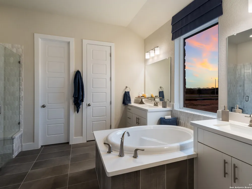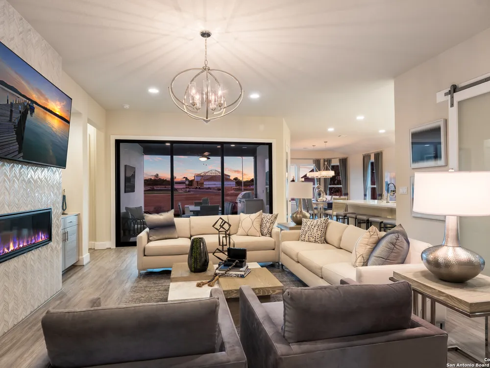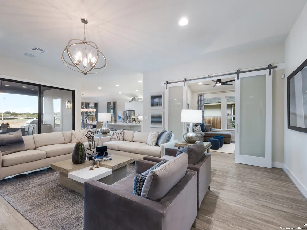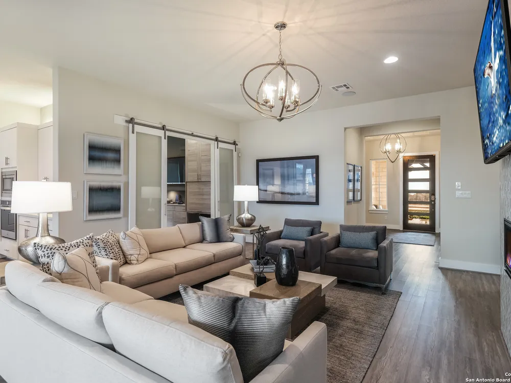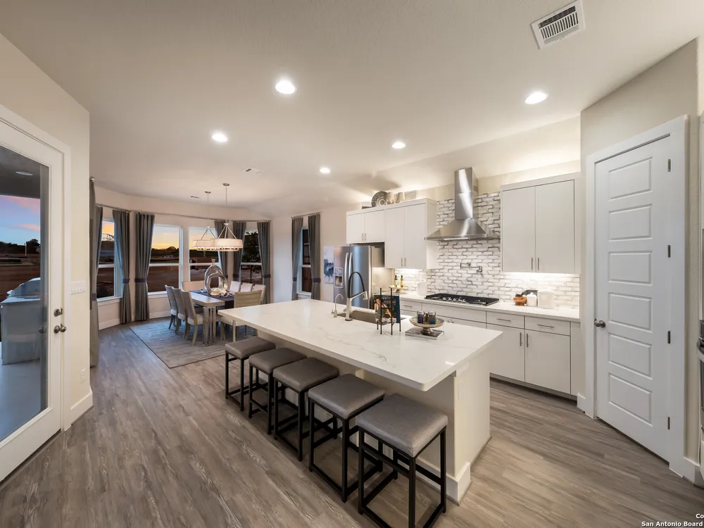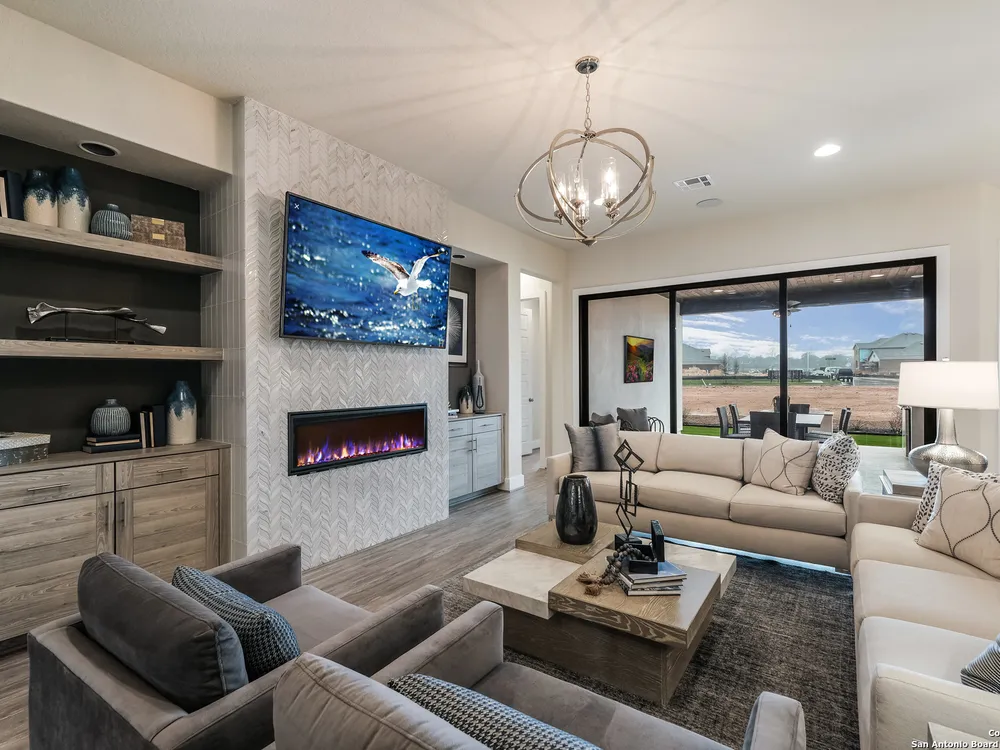 Exquisite 4-Bed, 4-Bath Home with Casita attached & Luxurious Upgrades in Veramendi!! Step into this former model home boasting over $100K in luxury enhancements across 3,382 sq. ft. of thoughtfully designed living space. The heart of the residence is the gourmet kitchen featuring an enlarged island, pristine white cabinetry, top-of-the-line built-in appliances, and a custom pot filler, perfect for the home chef. Elegant luxury vinyl plank flooring flows seamlessly throughout, adding both style and durability. Enjoy spacious living areas including a dedicated study, ideal for work or leisure. The spa-inspired primary suite is a true retreat, complete with a generous oversized shower, indulgent garden tub, and a roomy walk-in closet. Hosting guests or accommodating extended family is effortless with the private entrance casita, offering its own living area, bathroom, and a fully equipped kitchenette including sink, fridge, and microwave. Indoor and outdoor entertaining blend beautifully thanks to stacking sliding glass doors that open to an extended patio. An outdoor kitchen and fire table create the perfect setting for gatherings year-round. Located in the highly desirable Veramendi community; residents enjoy an amazing pool, splash pad, access to scenic walking trails, lush parks, picnic areas, and top-rated schools. Shopping and dining options are thoughtfully integrated within the community, offering convenience and charm just steps from your door. Don't miss your chance to own this Scott Felder Home new-build with exceptional incentives and a 2-10 year warranty included. This is an extraordinary opportunity to own a truly exceptional home, schedule your showing today!
