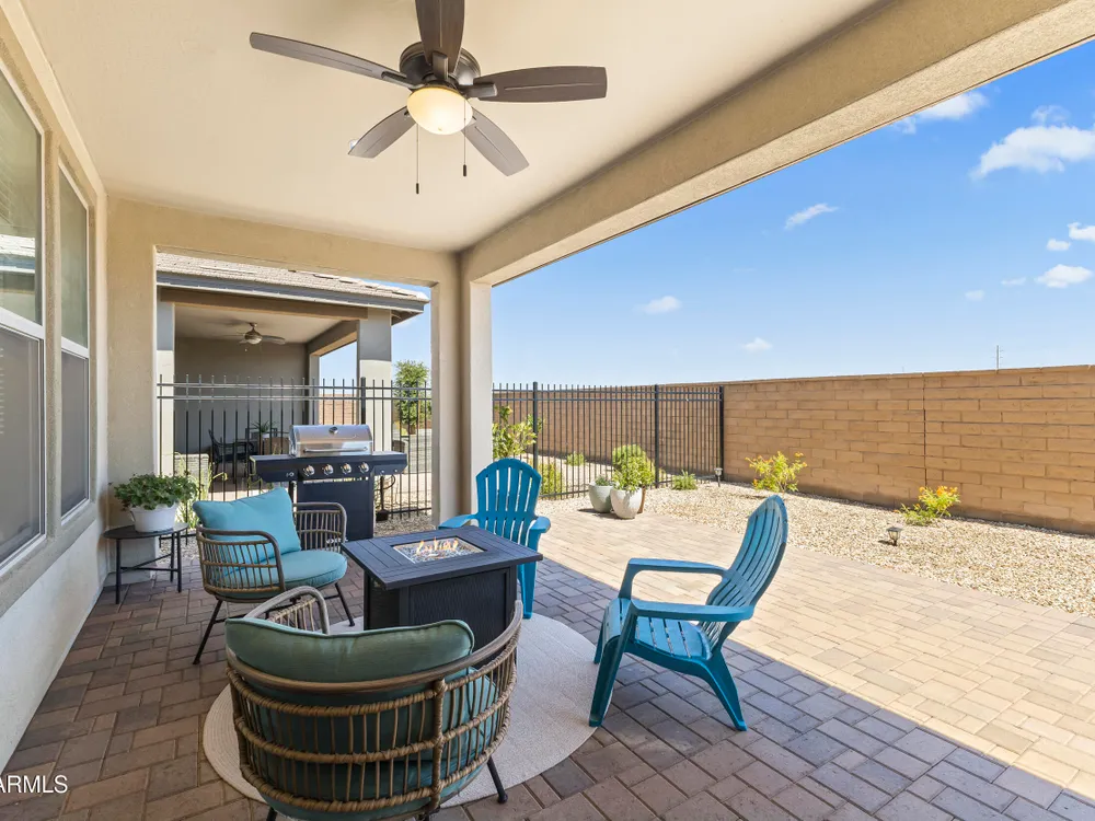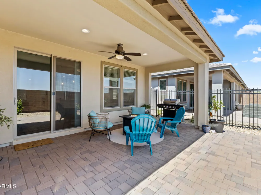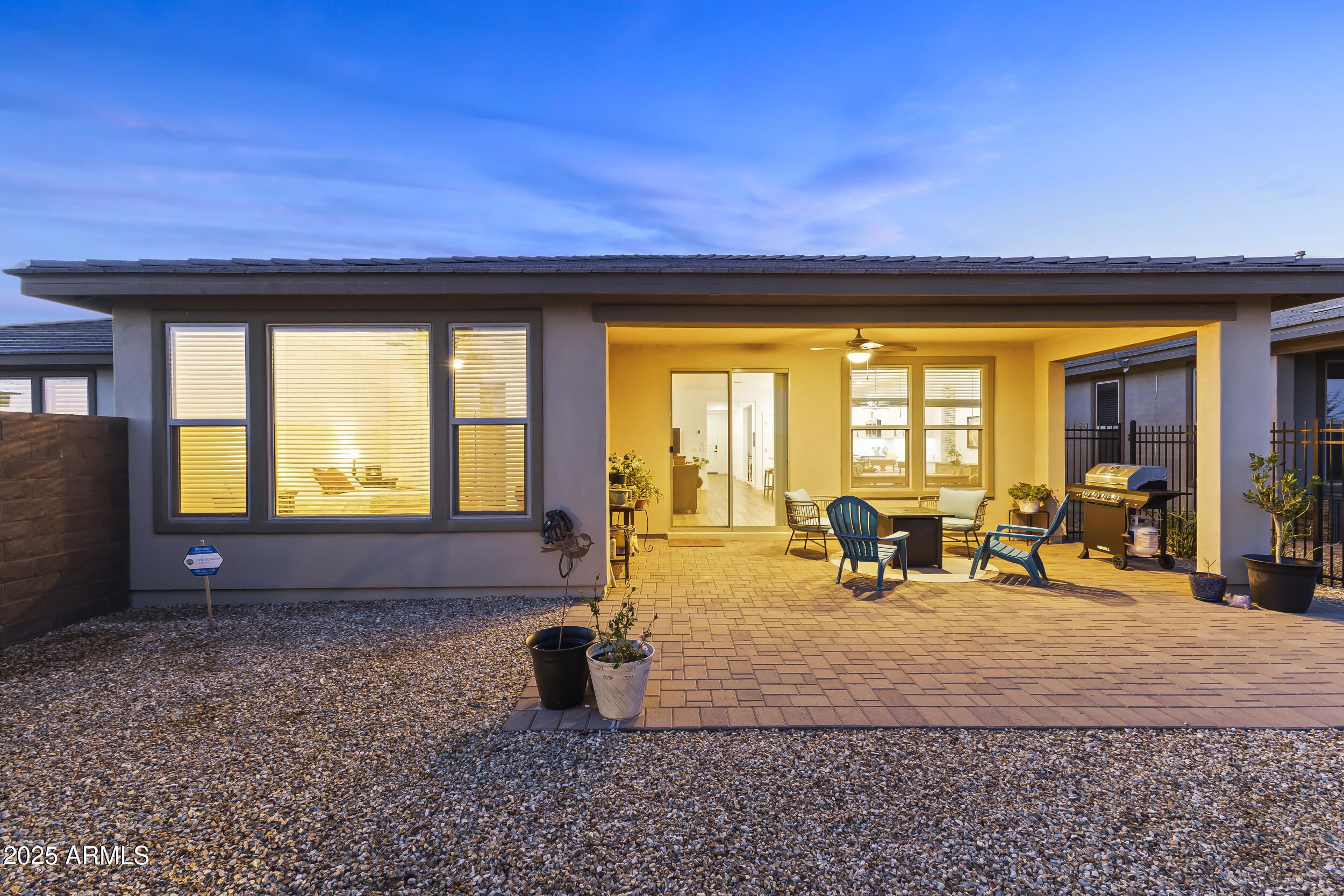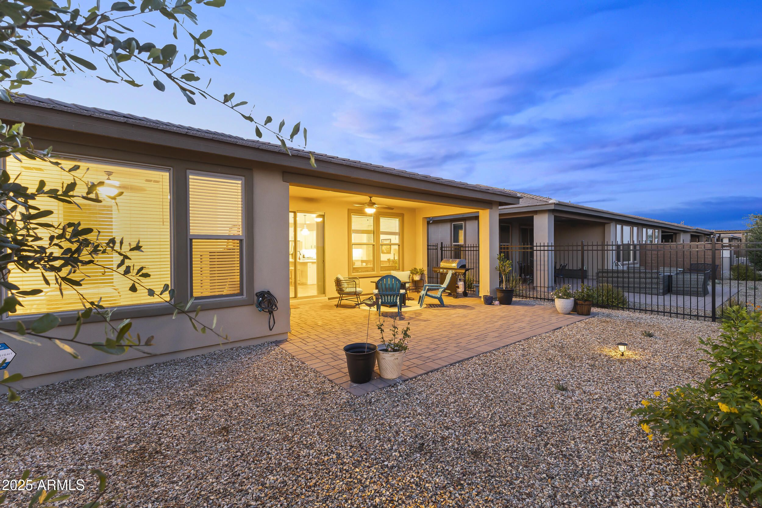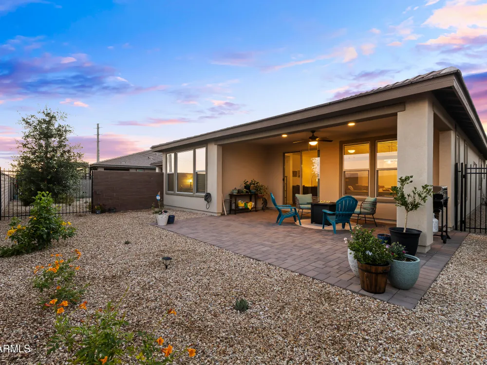 Crave RESORT vibes without the upkeep? Step into this 1,678 sq ft Valletta smart home built 2022, a single level patio jewel on Encanterra's Algarve side open to all ages (other side is 55+). Great room glides to an east patio for sunrise coffee and twilight cocktails. Chef kitchen flaunts quartz island, gas cooktop, white cabinets. Wood-look tile, split layout. Primary suite pampers with tiled shower and walk-in closet, guests get their own wing. Need flex space? Den waits for office, art, Peloton. Encanterra spoils with pools, spa, pickleball, wine tastings, demos, concerts, social clubs. Multiple public and private golf courses minutes away, while Indigo Trails and QC Crossing cover shopping, dining and fun.