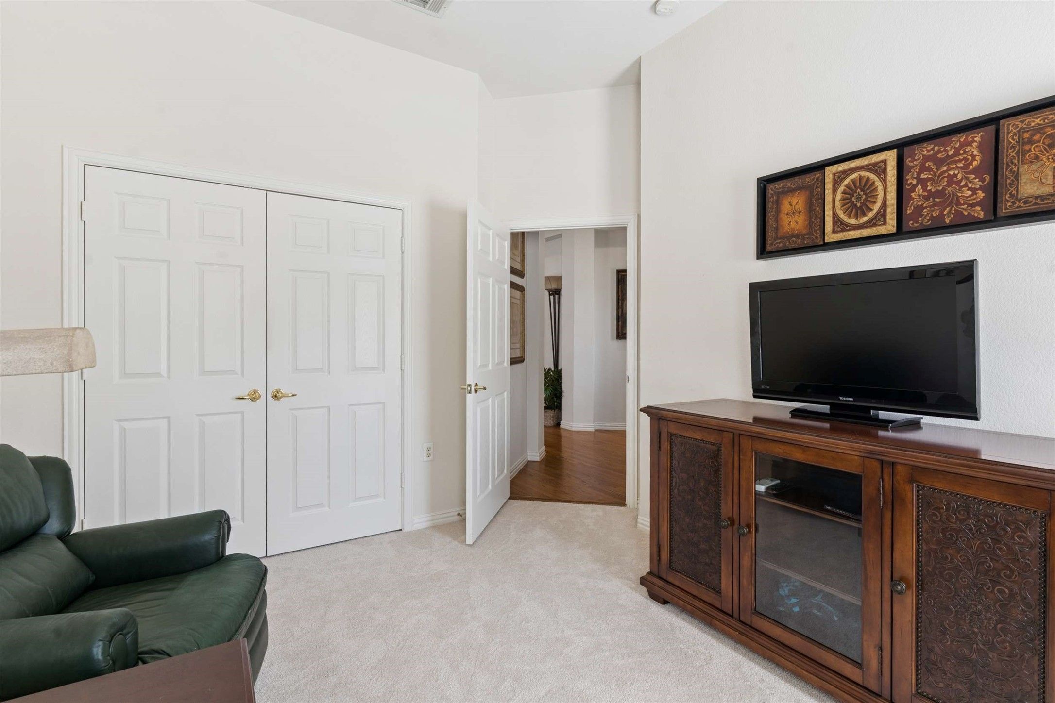 Welcome to your dream home located on the 17th fairway of Heritage Ranch, a premier 50+ community renowned for its resort-style living. This exceptional residence is designed to offer both comfort & elegance, with breathtaking golf course views that enhance the open & inviting floor plan. Featuring three spacious bedrooms & three full bathrooms, PLUS this home includes a dedicated office & a formal dining room, ensuring ample space for both relaxation & entertaining. The gourmet kitchen, appointed with granite countertops and double ovens, seamlessly connects to the breakfast nook & the expansive living room. Walls of windows in these areas flood the space with natural light and frame sweeping views of the fairway, making it perfect for hosting guests or enjoying peaceful mornings. The primary suite serves as a private retreat, complete with a sitting area and picturesque views of the greens. The second first-floor bedroom is ideal for an in-law suite, featuring an ensuite bath, shower, & a large walk-in closet. Plantation shutters adorn all the main living area windows, and abundant storage closets provide convenience throughout the home. Wood floors flow through the main living areas, creating a warm and welcoming atmosphere, while guest rooms offer comfort and privacy. The spacious three-car tandem garage provides ample room for storing a golf cart & keeping everything organized and out of sight. Enjoy access to a championship golf course, indoor and outdoor pools, tennis & pickleball courts, a fitness center, scenic walking trails, on-site dining, & more. The community offers endless opportunities to connect, including a full calendar of social activities. Whether you’re looking to stay active, make new friends, or simply relax in style, Heritage Ranch provides the perfect setting. Discover your next chapter in one of North Texas’ premier active adult communities.