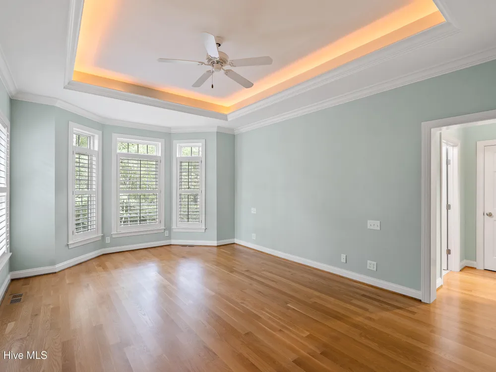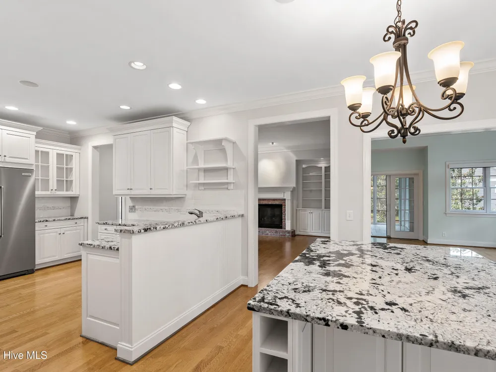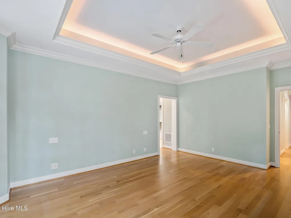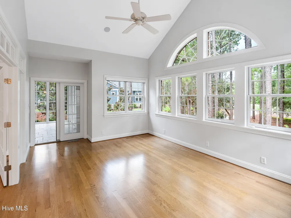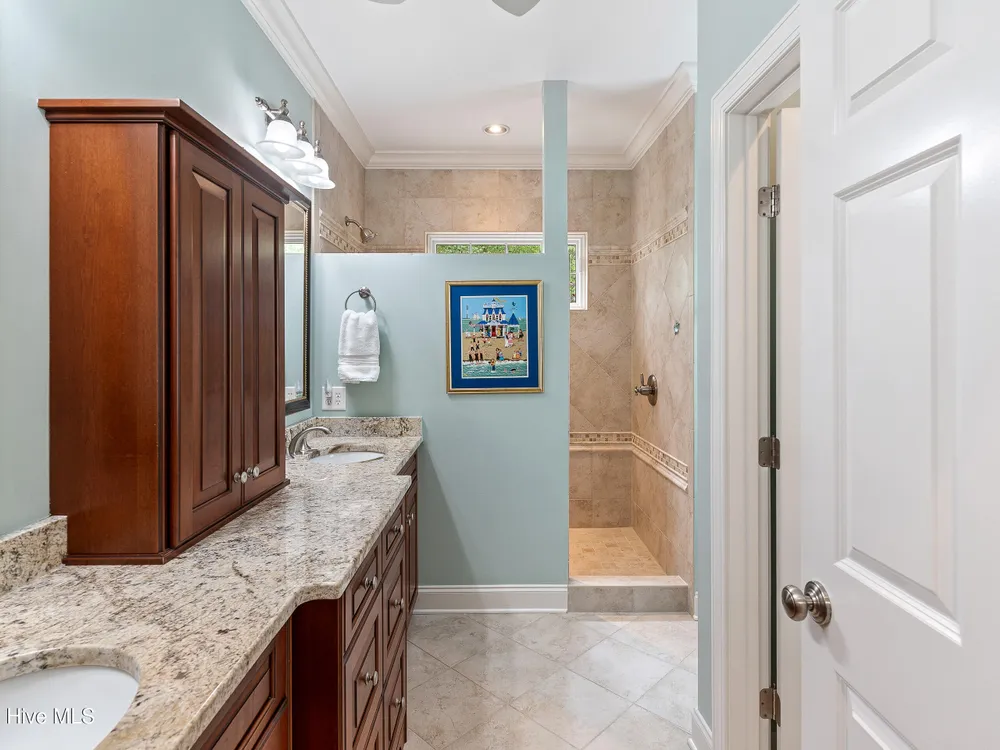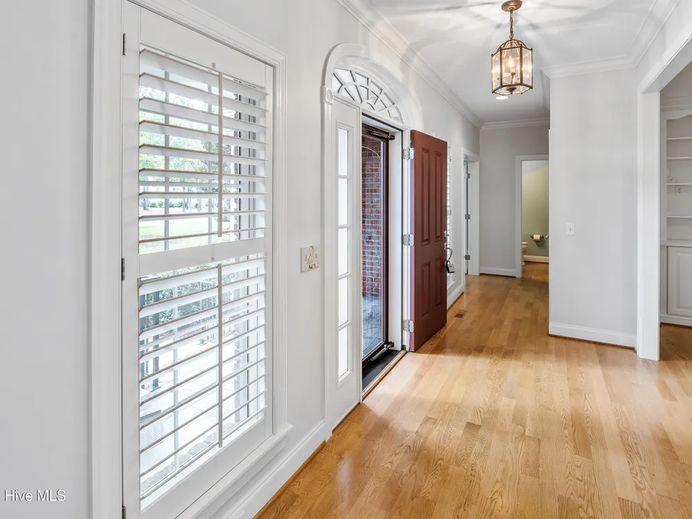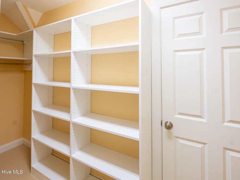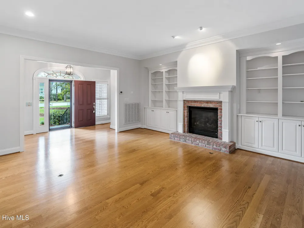 - Blinds/Shades, Solid Surface, Walk-In Closet(s), Walk-in Shower, Tray Ceiling(s), Entrance Foyer, Master Downstairs, Kitchen Island, High Ceilings, Gas Log, Ceiling Fan(s), Bookcases