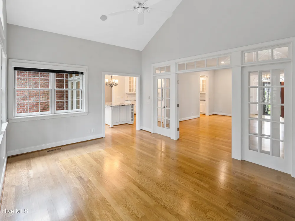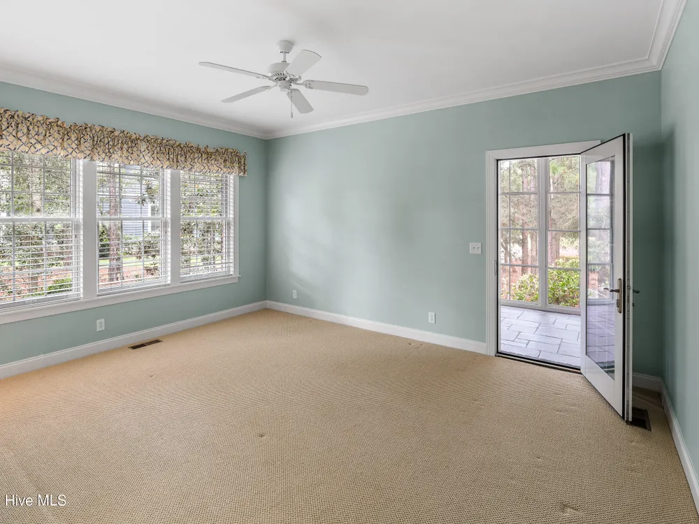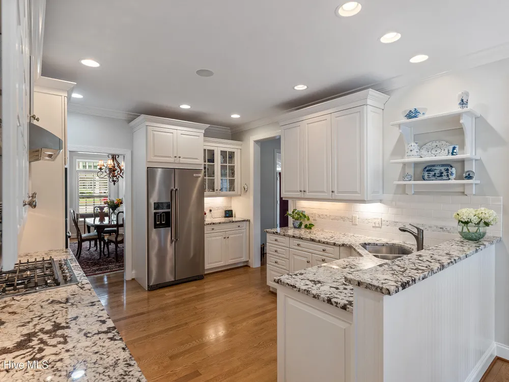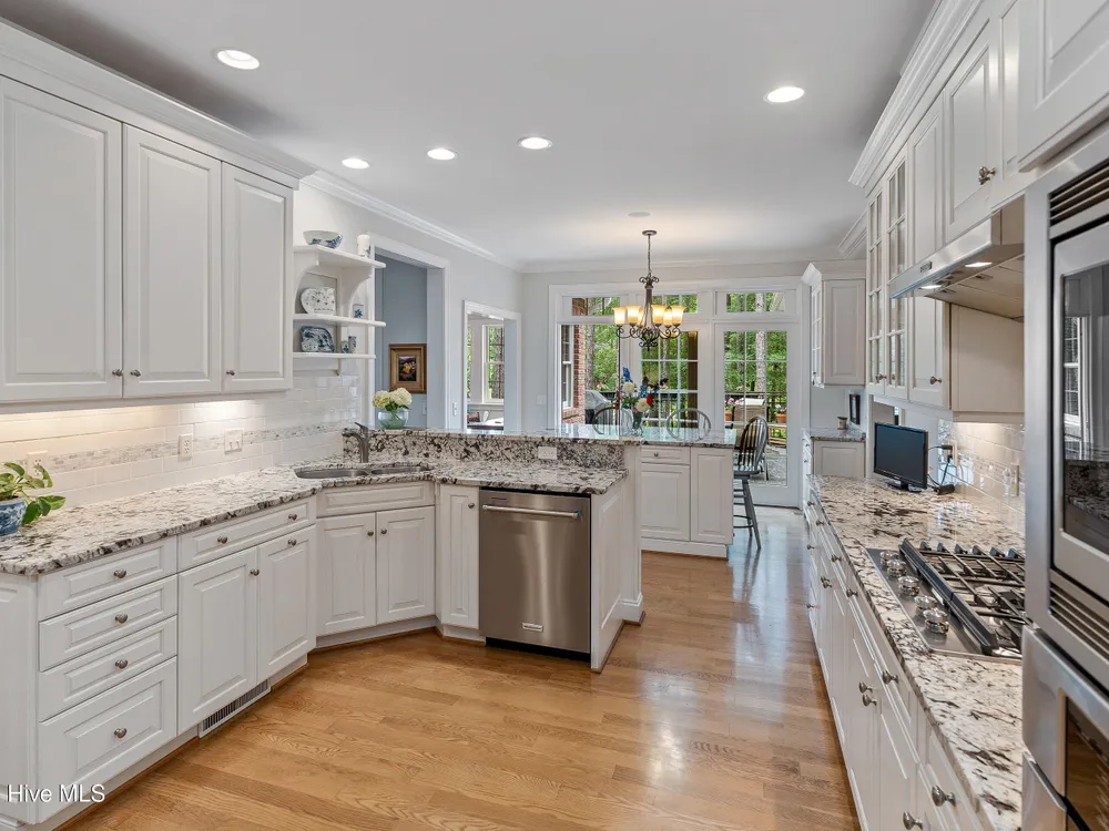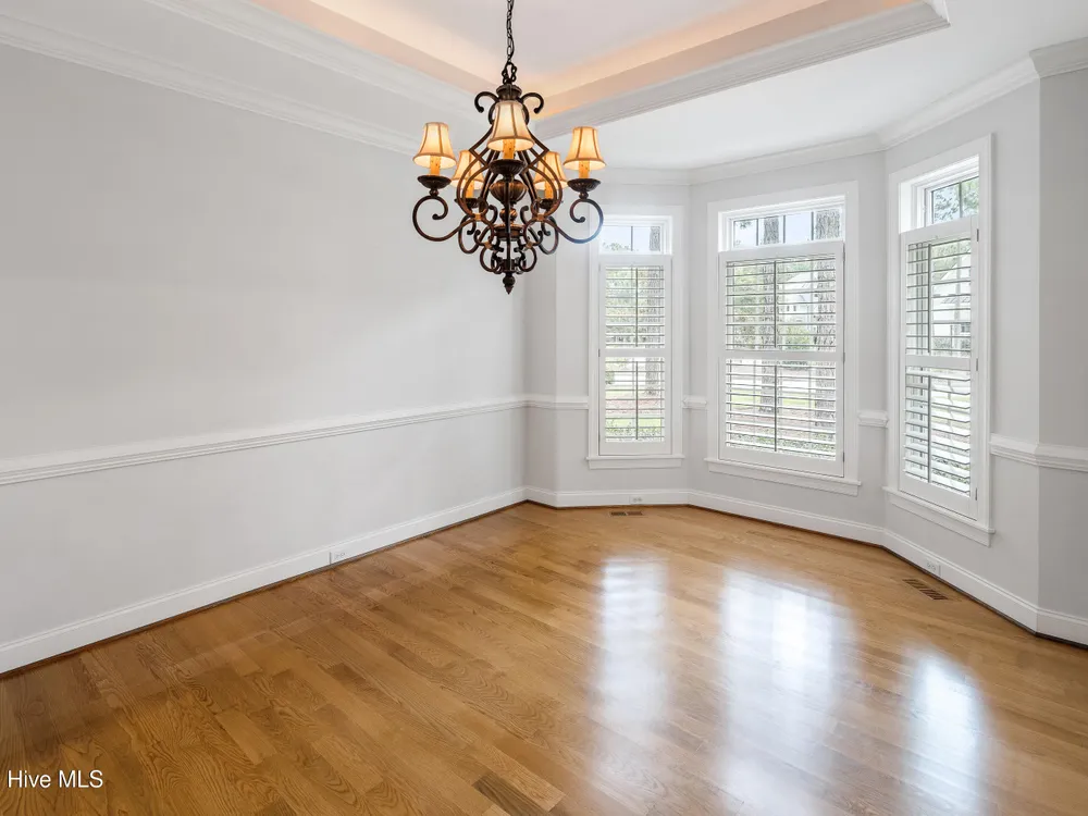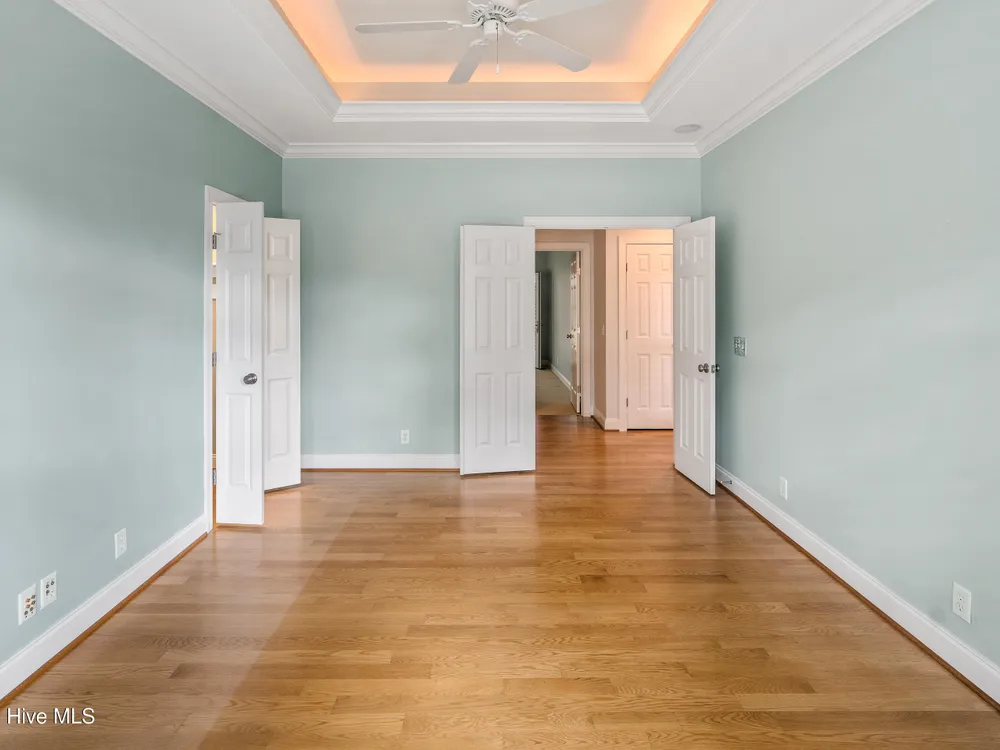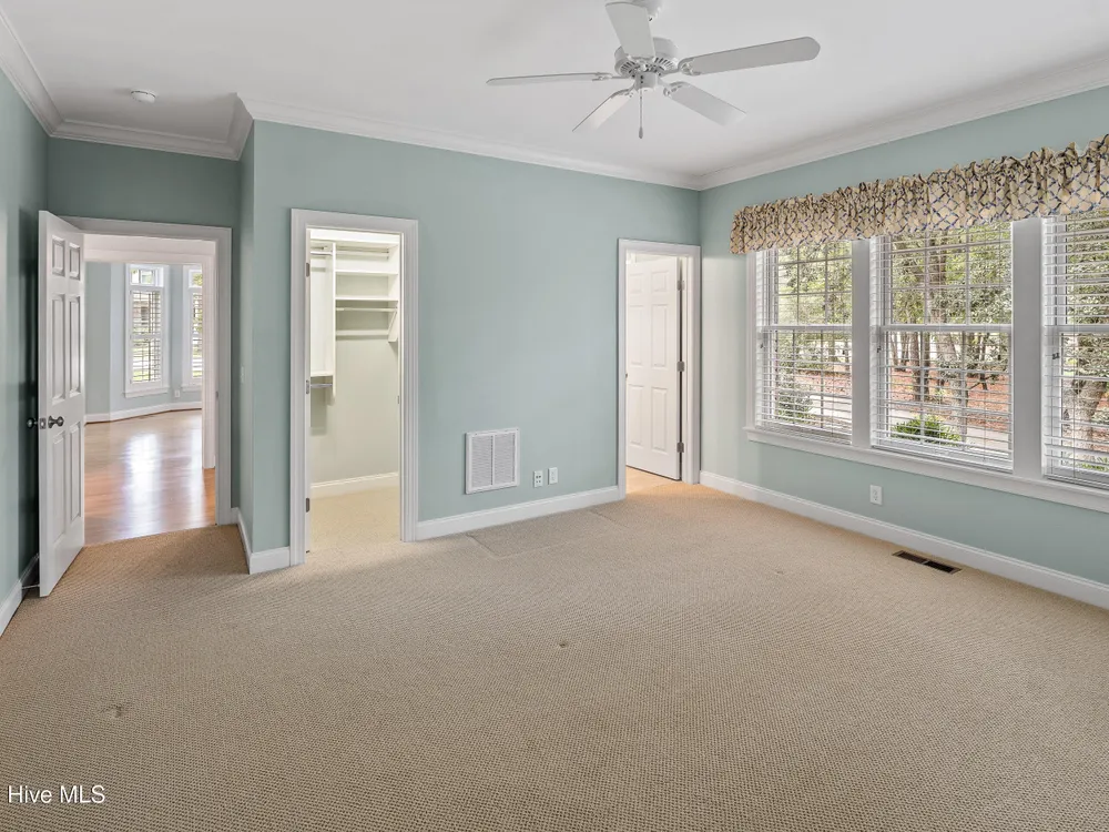 - Blinds/Shades, Solid Surface, Walk-In Closet(s), Walk-in Shower, Tray Ceiling(s), Entrance Foyer, Master Downstairs, Kitchen Island, High Ceilings, Gas Log, Ceiling Fan(s), Bookcases