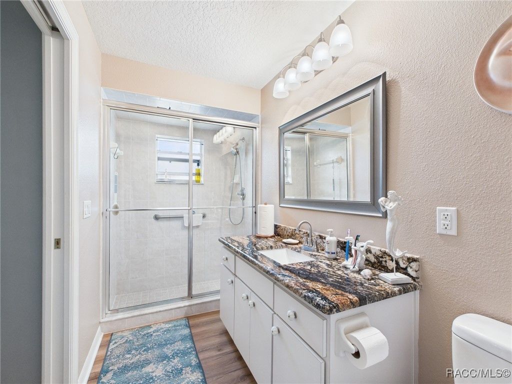 - Breakfast Bar, Cathedral Ceiling(s), Primary Suite, Open Floorplan, Stone Counters, Separate Shower, Walk-In Closet(s), WoodCabinets, Window Treatments, First Floor Entry
