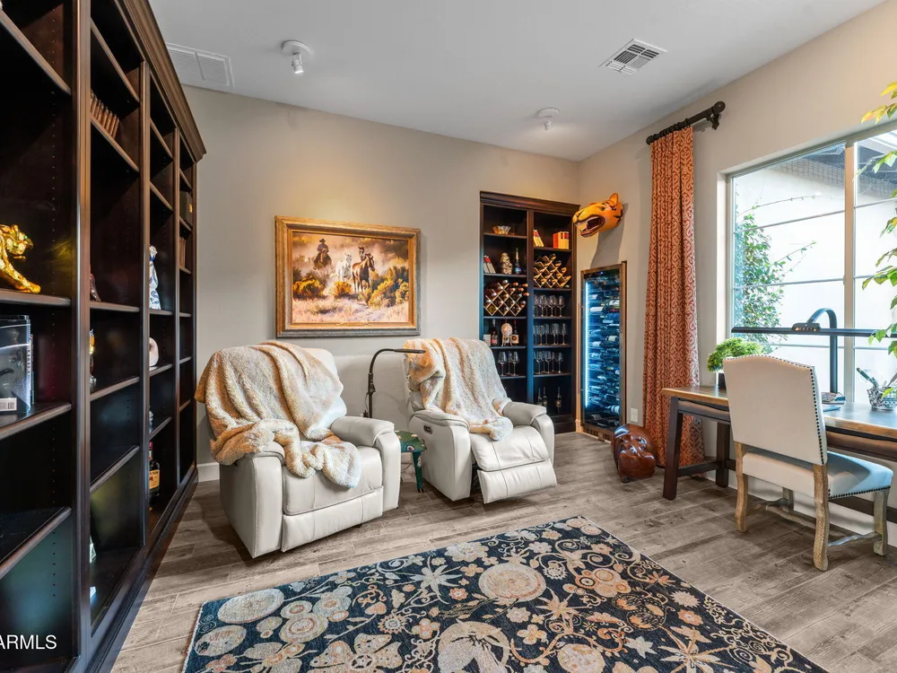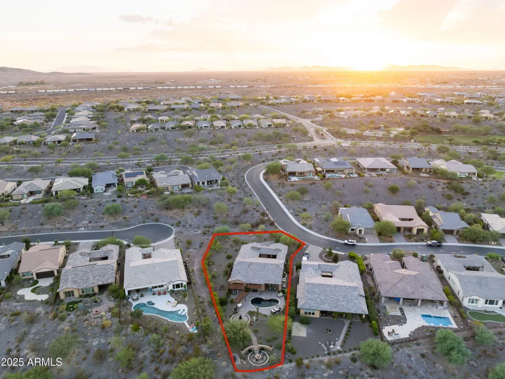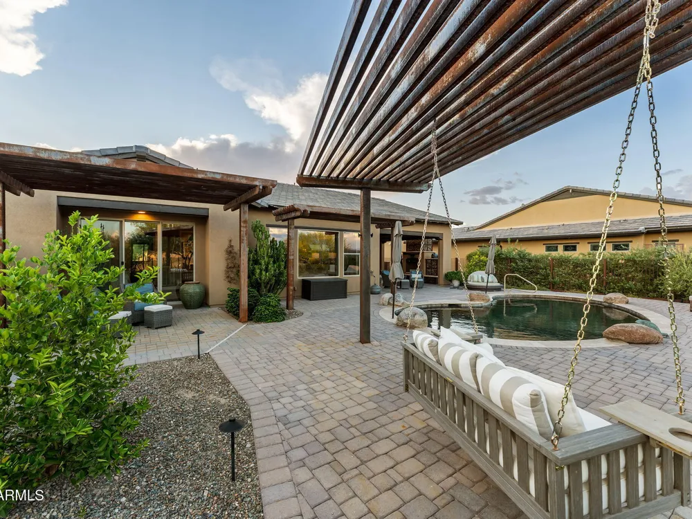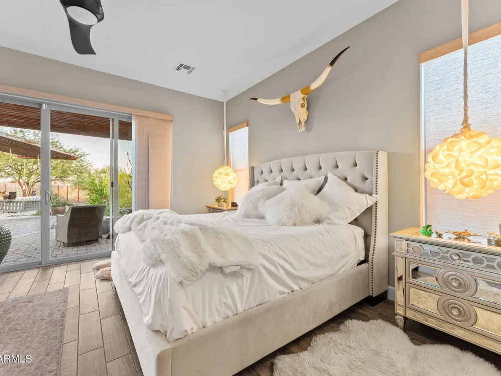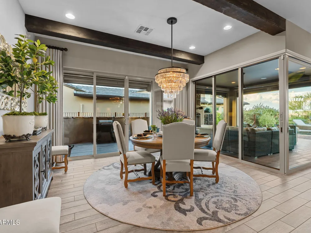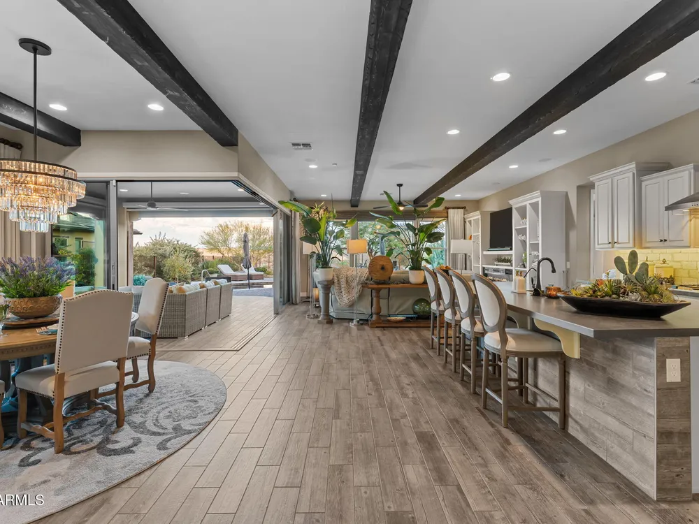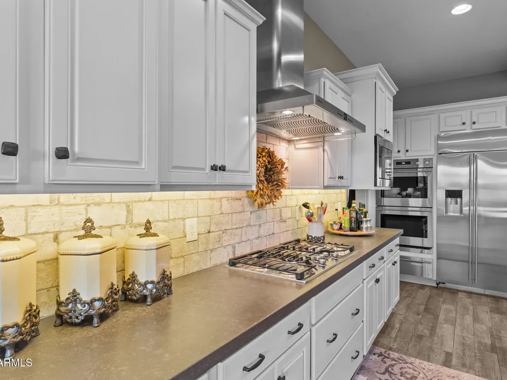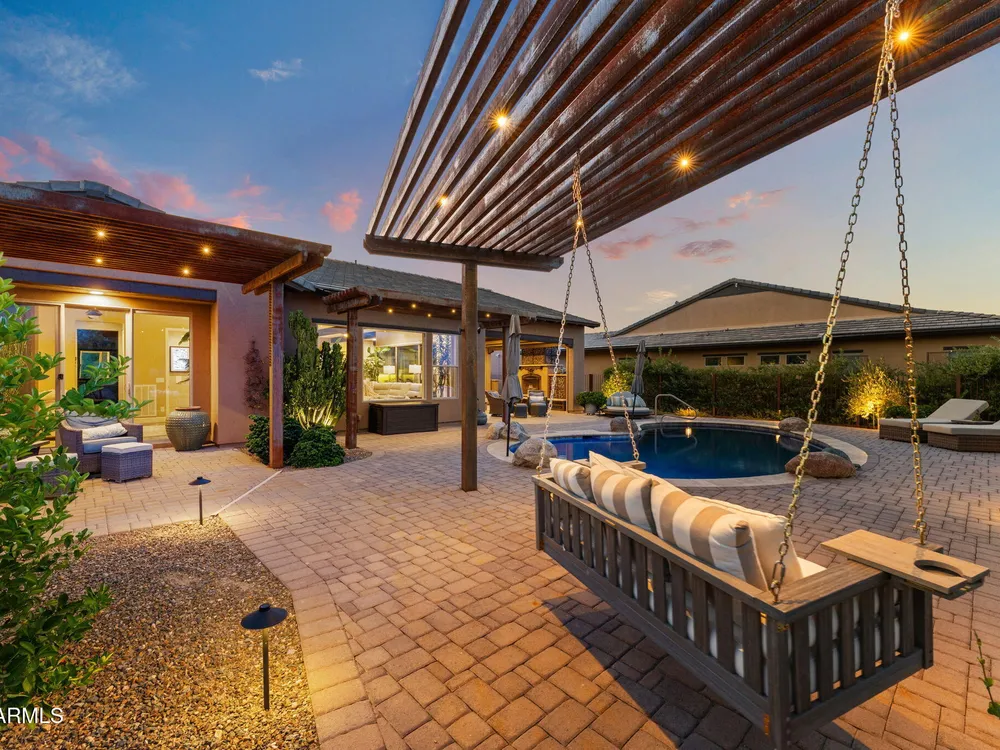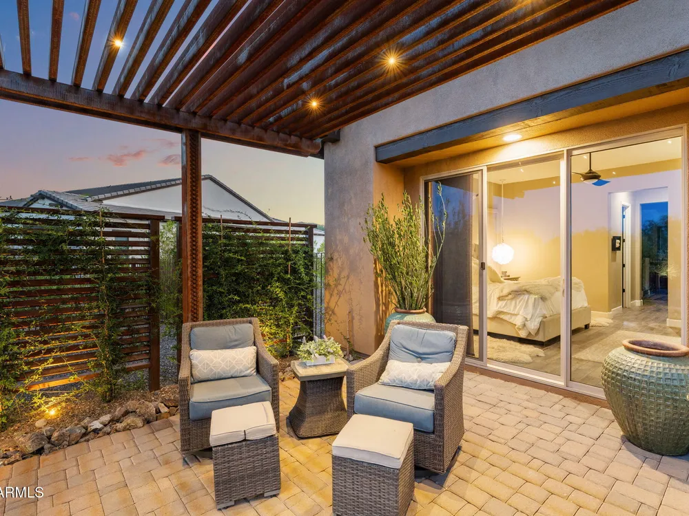 Welcome to luxury desert living in the heart of Wickenburg Ranch. This immaculate 3-bedroom, 3.5 bath home is perfectly positioned on an expansive, nearly half-acre lot overlooking the golf course-offering exceptional privacy, space and panoramic views. Designed for both comfort and elegance, the home features a detached guest casita w/full bath, ideal for hosting friends, extended family, or creating a private workspace. Inside, the open-concept layout has 10' ceilings, boasts a chef's kitchen w/granite counters, SS appliances, double ovens with a warming drawer, and a spacious great room that flows seamlessly to the oversized covered patio. The primary suite is a true retreat, complete w/split vanities, separate tub/shower and 2 closets. A dedicated den/office features custom built-in bookcase and wine fridge, offering a stylish & functional space ideal for working from home or unwinding with your favorite vintage. This rare offering combines custom interior features with a truly exceptional outdoor space making it one of the most desirable homes in all of WR. Step thru any of the multi-slide glass doors that seamlessly blend the indoor with the tranquil resort style backyard. Custom built fireplace, pool, firepit and water feature offers a luxurious and inviting outdoor retreat, perfectly designed for relaxation, entertainment and enjoying the magnificent views of the golf course.