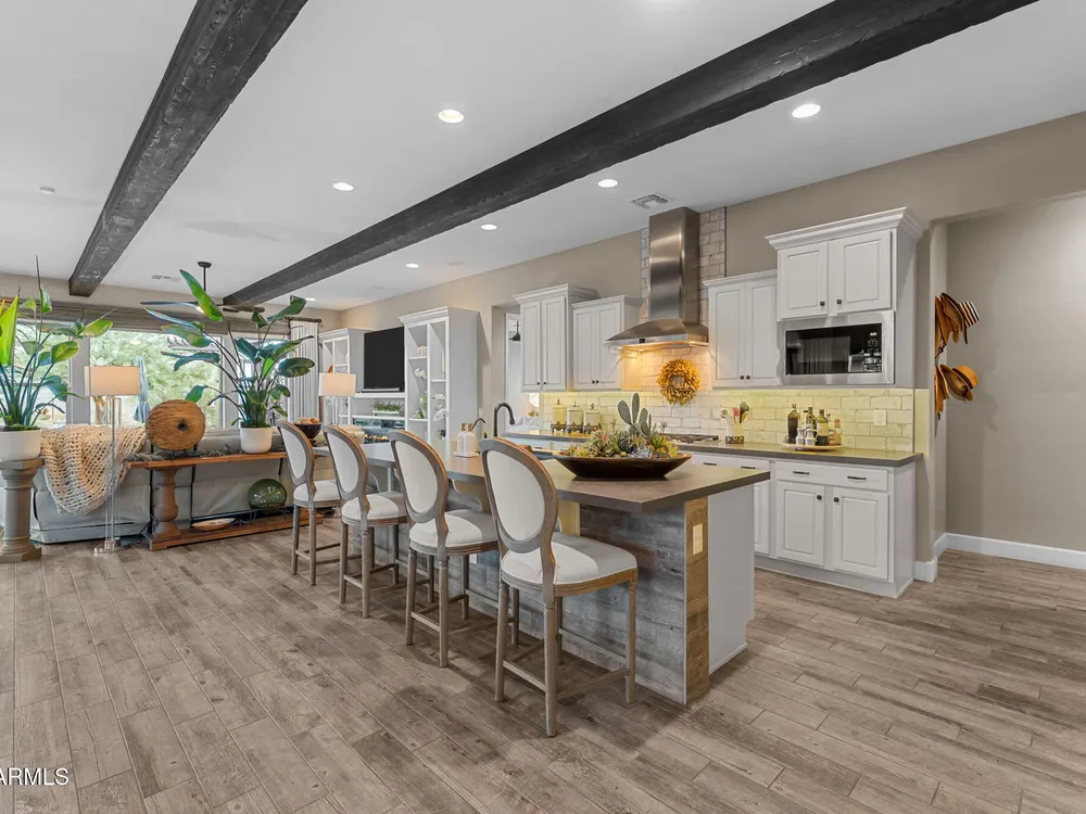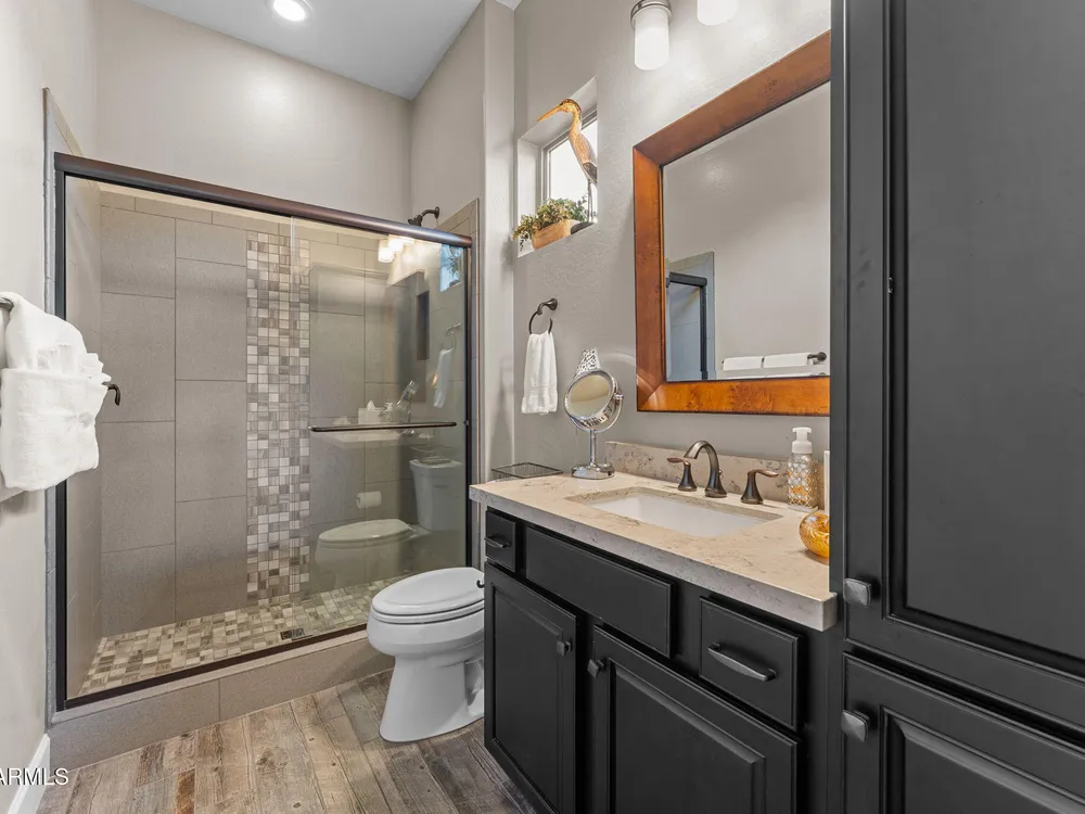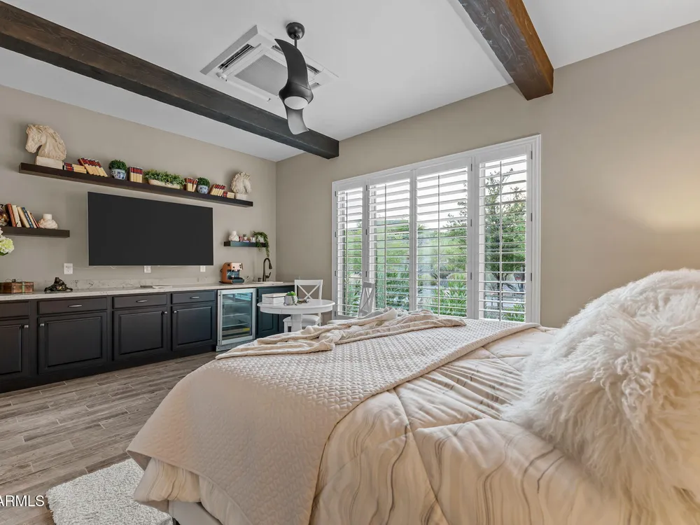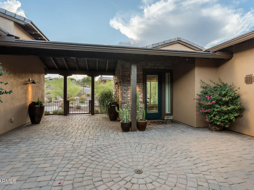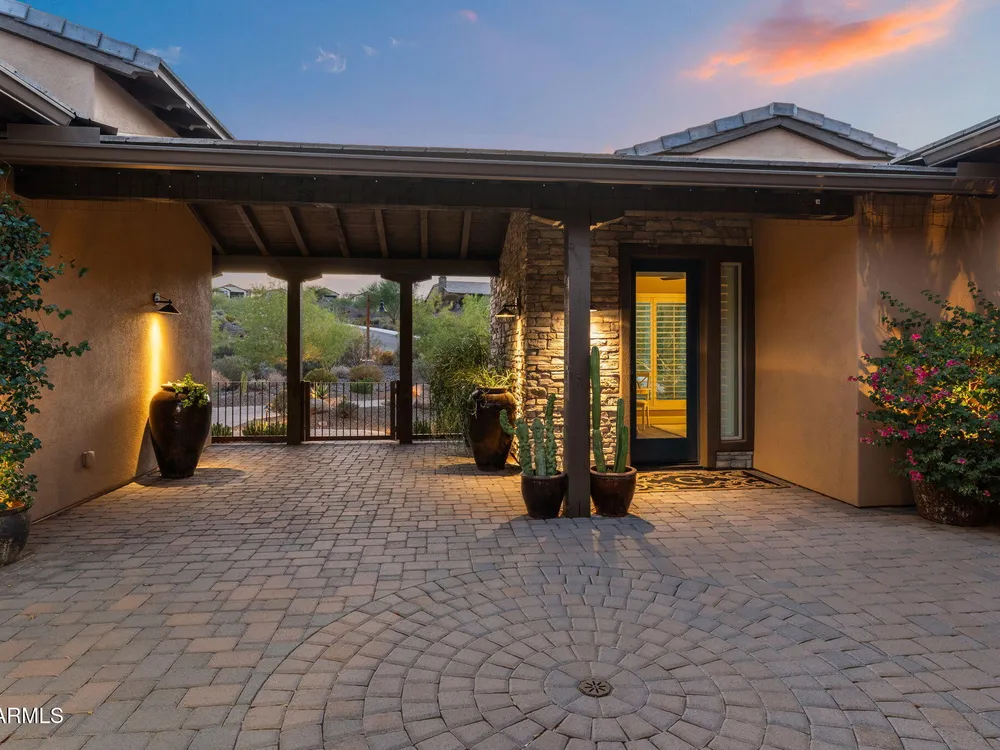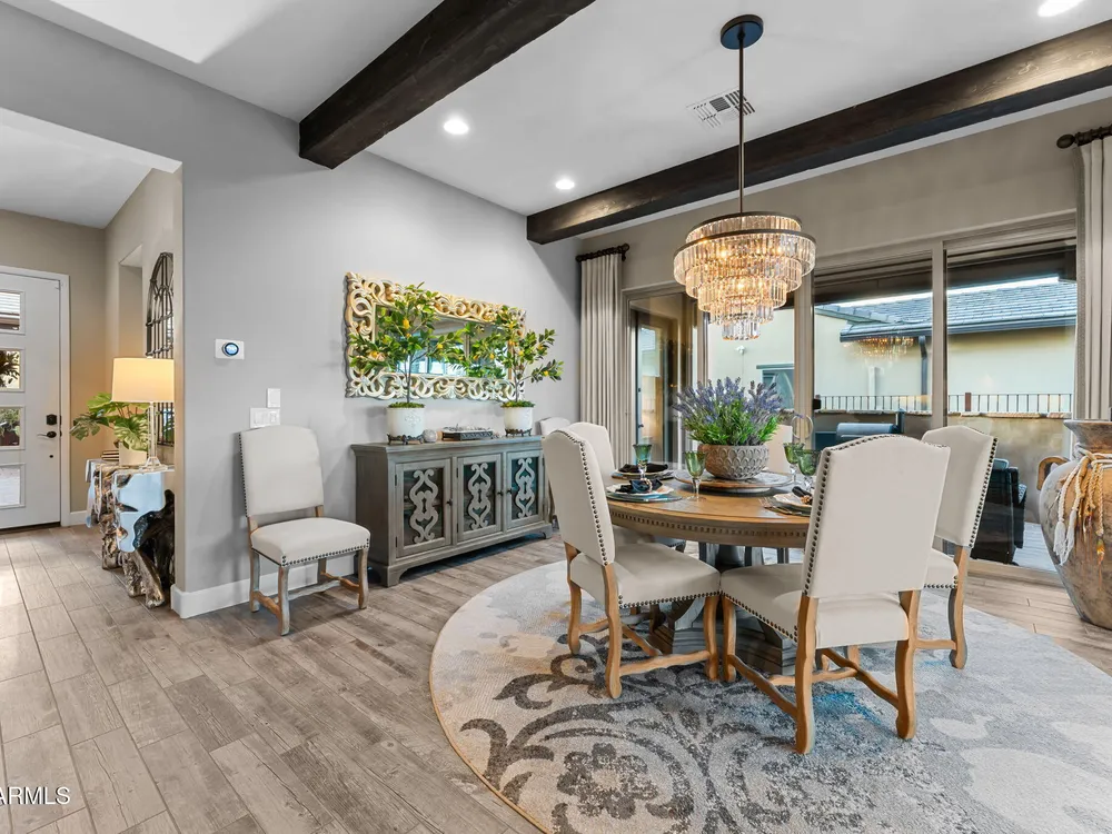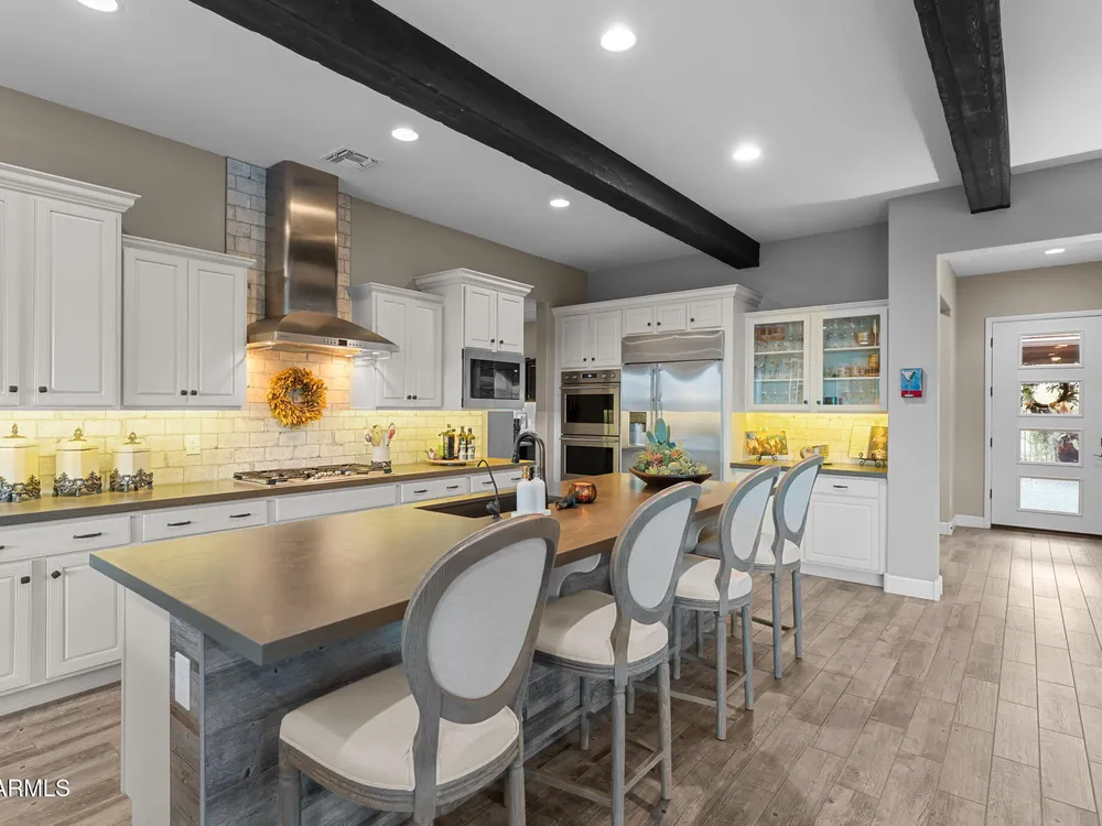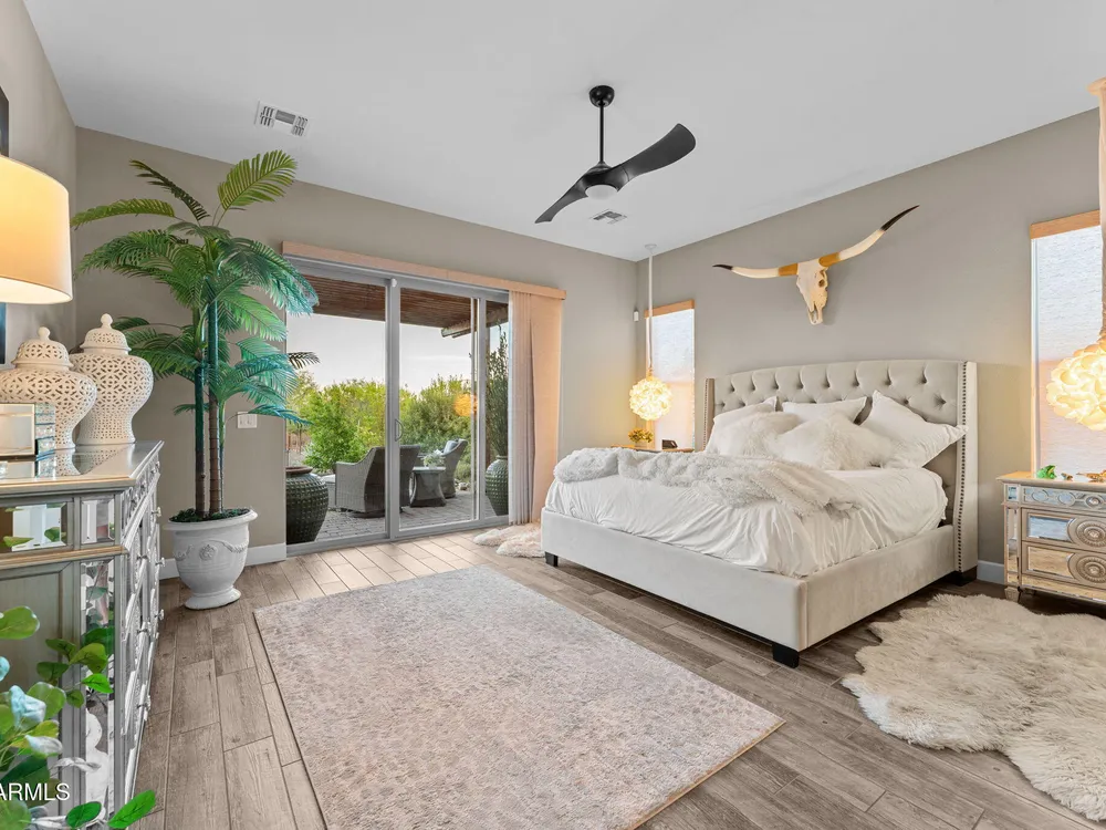 Welcome to luxury desert living in the heart of Wickenburg Ranch. This immaculate 3-bedroom, 3.5 bath home is perfectly positioned on an expansive, nearly half-acre lot overlooking the golf course-offering exceptional privacy, space and panoramic views. Designed for both comfort and elegance, the home features a detached guest casita w/full bath, ideal for hosting friends, extended family, or creating a private workspace. Inside, the open-concept layout has 10' ceilings, boasts a chef's kitchen w/granite counters, SS appliances, double ovens with a warming drawer, and a spacious great room that flows seamlessly to the oversized covered patio. The primary suite is a true retreat, complete w/split vanities, separate tub/shower and 2 closets. A dedicated den/office features custom built-in bookcase and wine fridge, offering a stylish & functional space ideal for working from home or unwinding with your favorite vintage. This rare offering combines custom interior features with a truly exceptional outdoor space making it one of the most desirable homes in all of WR. Step thru any of the multi-slide glass doors that seamlessly blend the indoor with the tranquil resort style backyard. Custom built fireplace, pool, firepit and water feature offers a luxurious and inviting outdoor retreat, perfectly designed for relaxation, entertainment and enjoying the magnificent views of the golf course.
