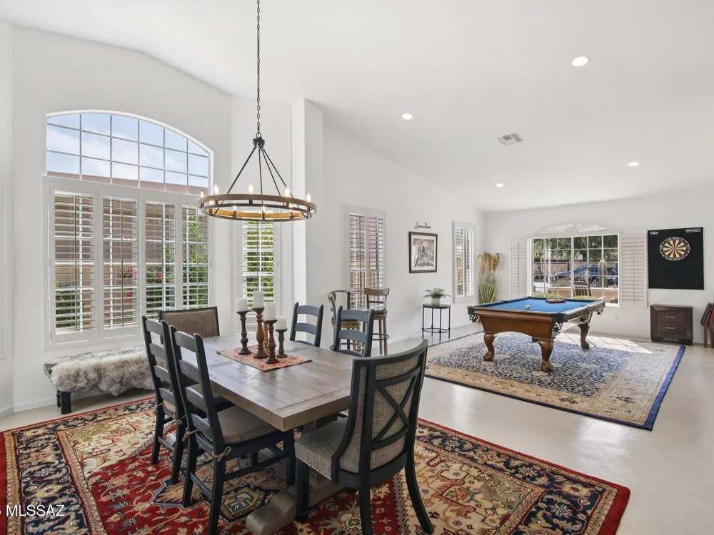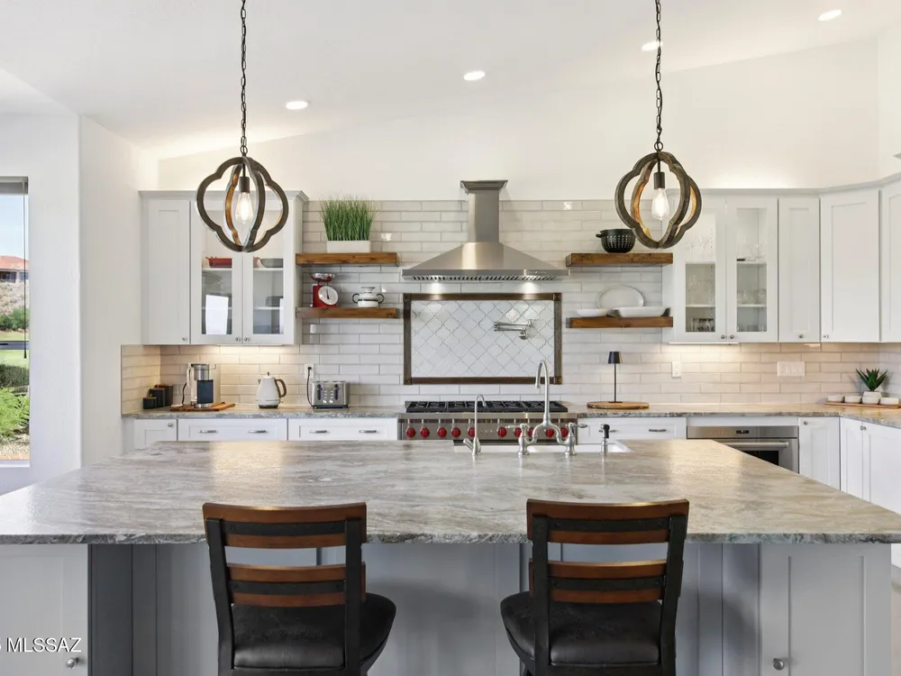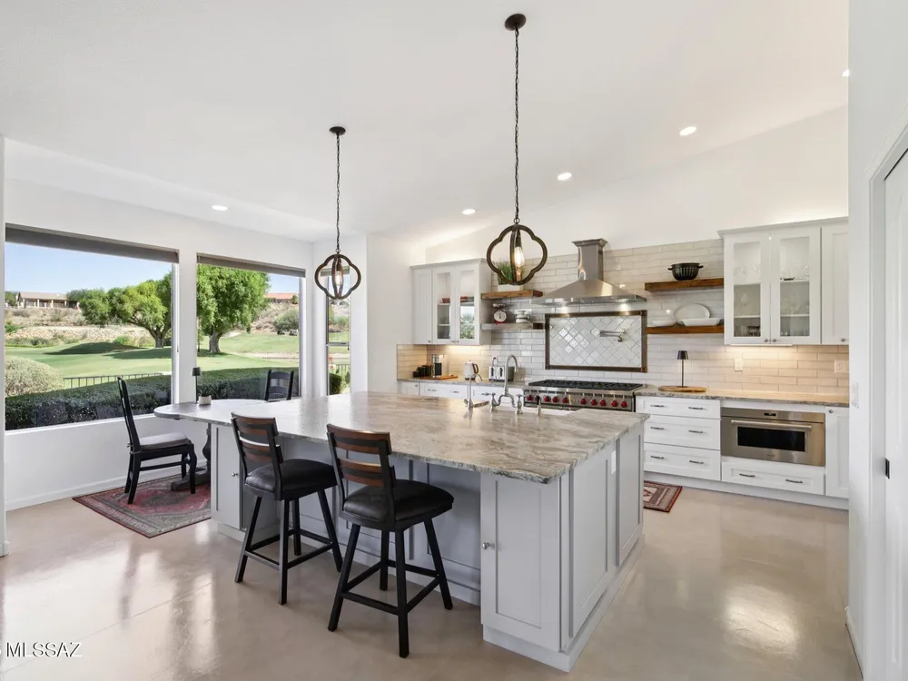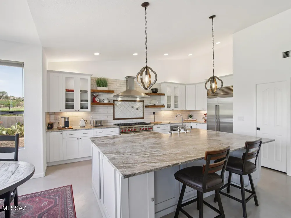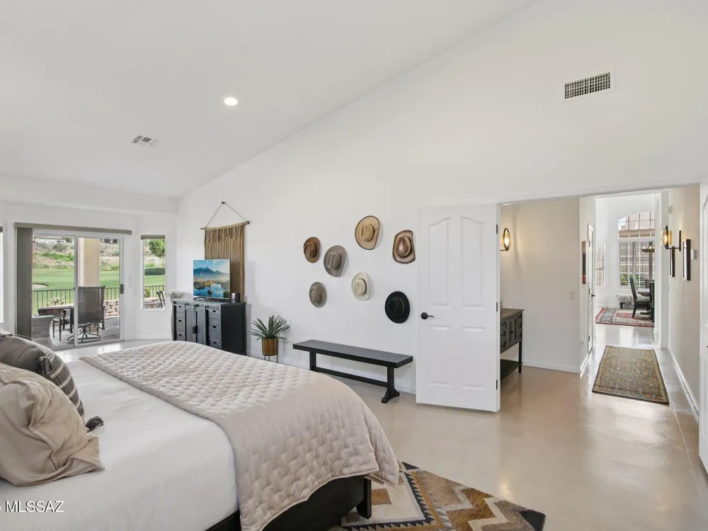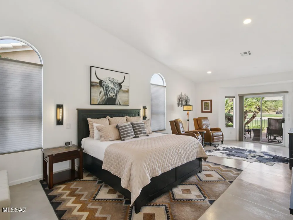 Are you looking for the ultimate Saddlebrooke home that offers views, privacy and contemporary style...then don't miss this home. Absolutely stunning Galleria has been completely remodeled from top to bottom. Situated on the 3rd green of the Tucson nine of the 27-hole Saddlebrooke Golf Course, this home is a rare find. Watch the wildlife go by as you take advantage of golf course and lake views, multiple outdoor living areas, large covered patio, new electric sunshades and outdoor firepit with flagstone patio. Home is safely distanced from the large green so you can relax and enjoy golfers line up and drain their putts. As you step inside you are greeted by a bright airy interior with vaulted ceilings, concrete floors throughout, and large pictures windows that flood the home with light.