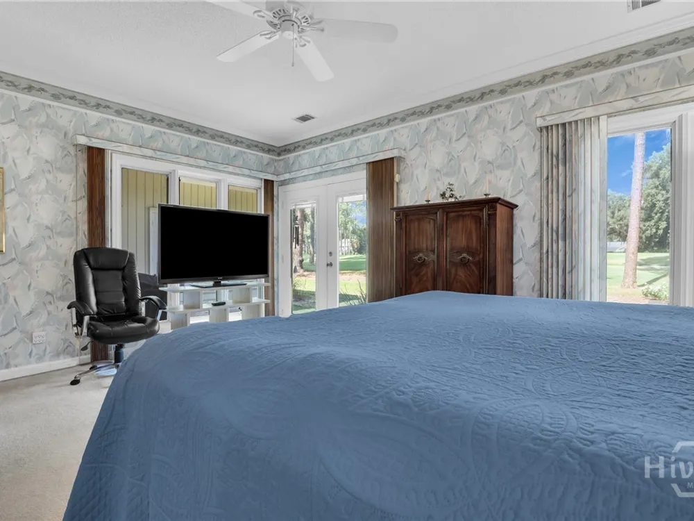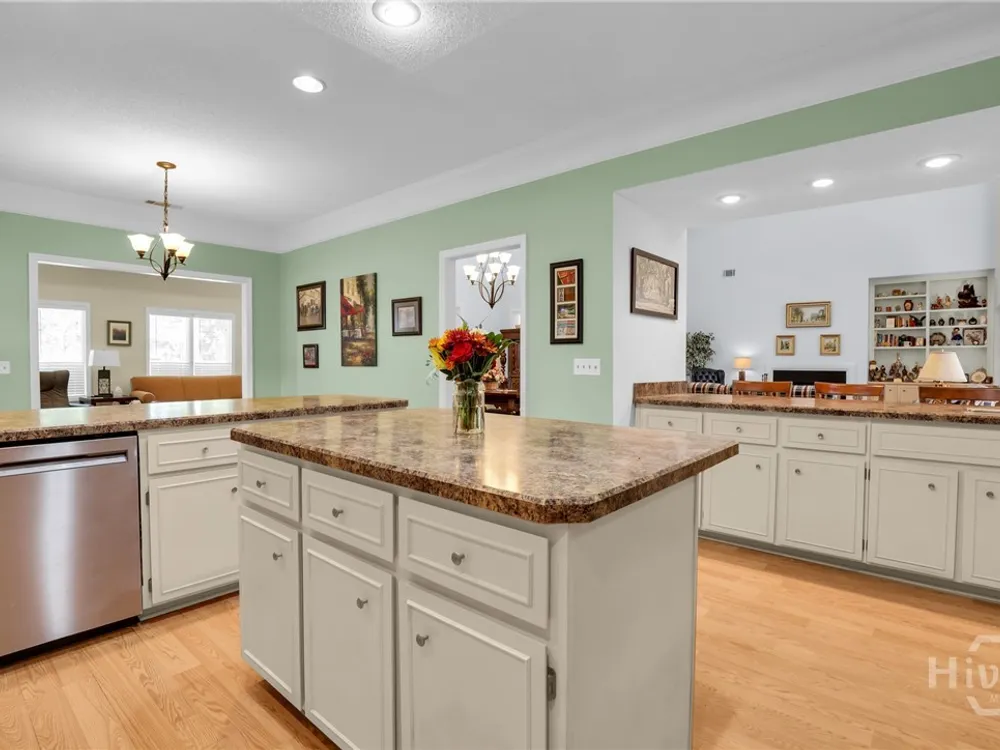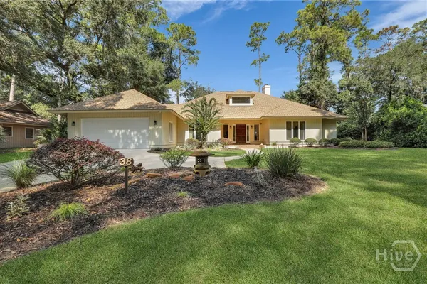 Meticulously maintained by the same owner for 30 years, this elegant 3-bedroom, 3-bath residence blends timeless appeal with luxurious comfort. A light-filled, open split floor plan showcases soaring vaulted ceilings, a cozy fireplace, wet bar, and custom built-ins. The gourmet kitchen with breakfast nook flows seamlessly into the living and dining areas, while a sunroom addition offers the perfect spot to relax and take in the sweeping 100’ views of Marshwood #15. The spacious primary suite features dual walk-in closets and a spa-like bath, while each guest bedroom includes its own walk-in closet and private bath. With zoned heating and cooling, irrigation with shallow well, and a private patio, this home delivers both sophistication and ease of living.