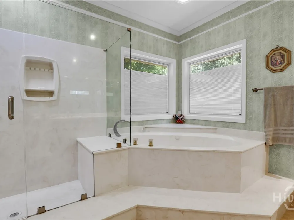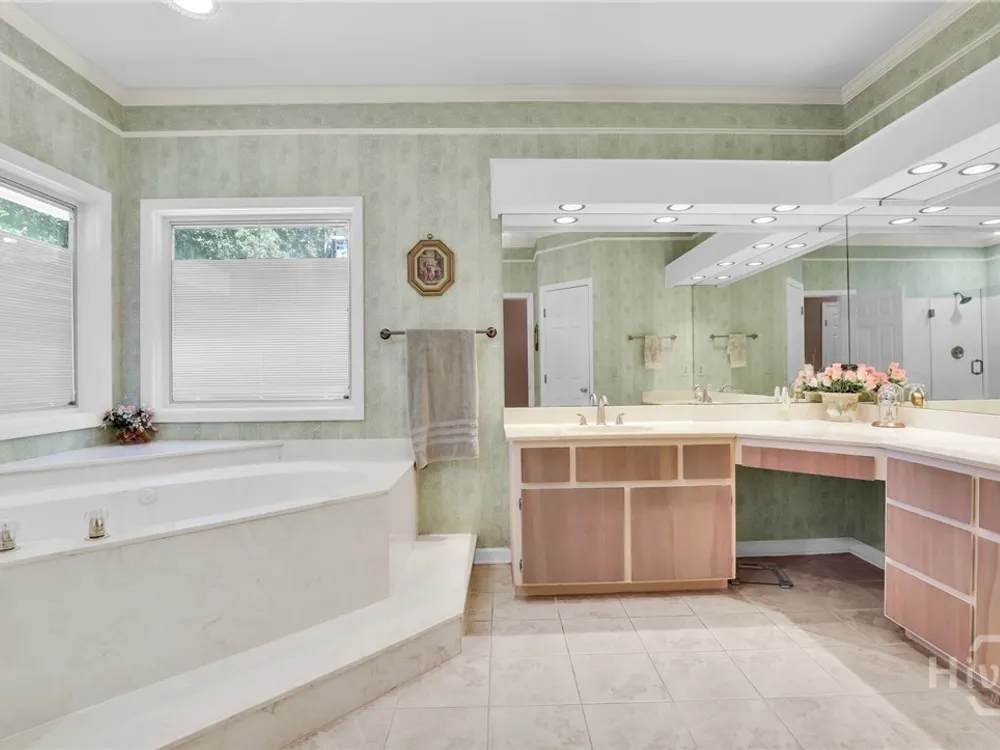 - Built-in Features, Breakfast Area, Ceiling Fan(s), Cathedral Ceiling(s), Double Vanity, Entrance Foyer, Garden Tub/Roman Tub, Main Level Primary, Pull Down Attic Stairs, Split Bedrooms, Separate Shower