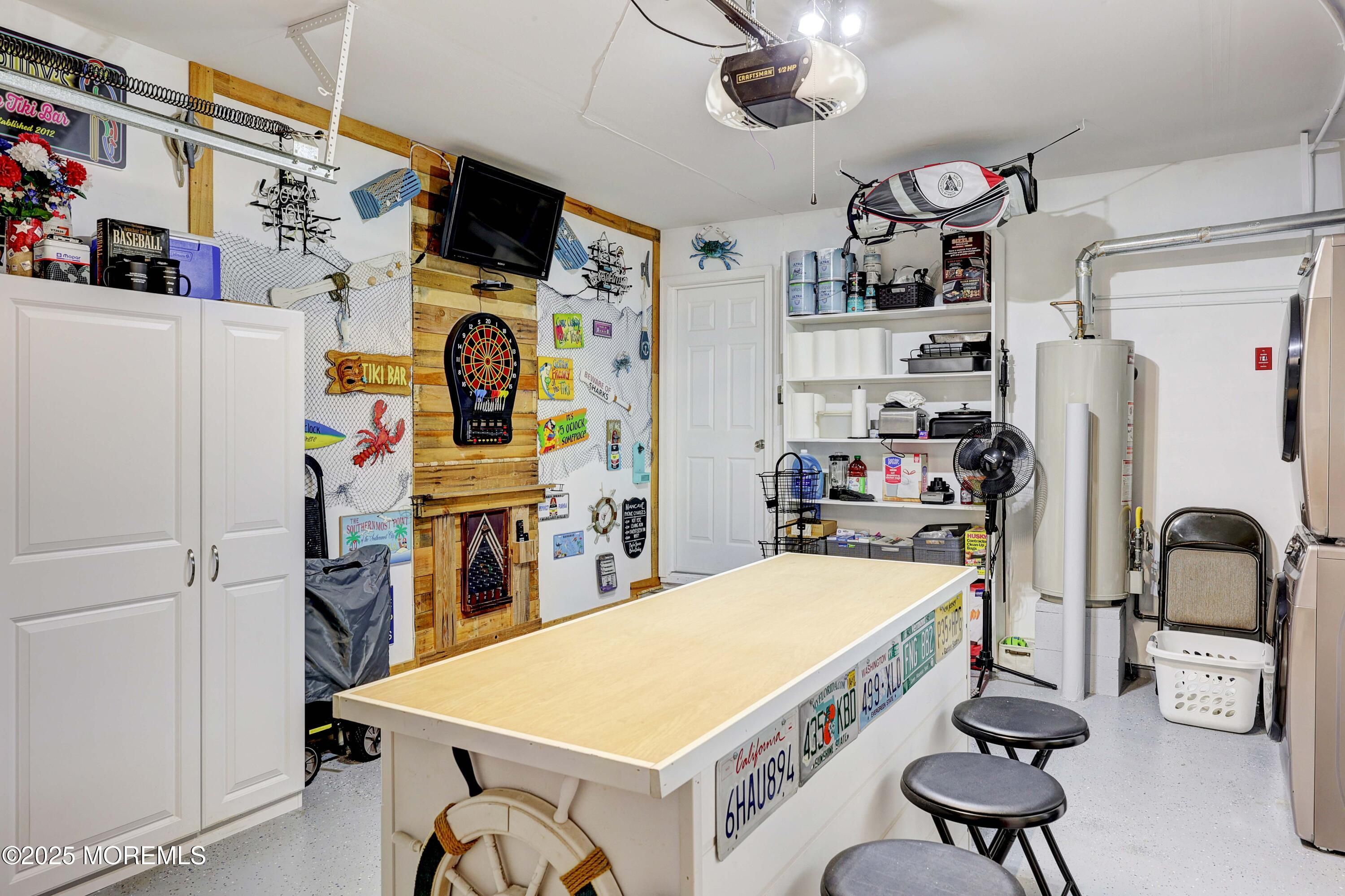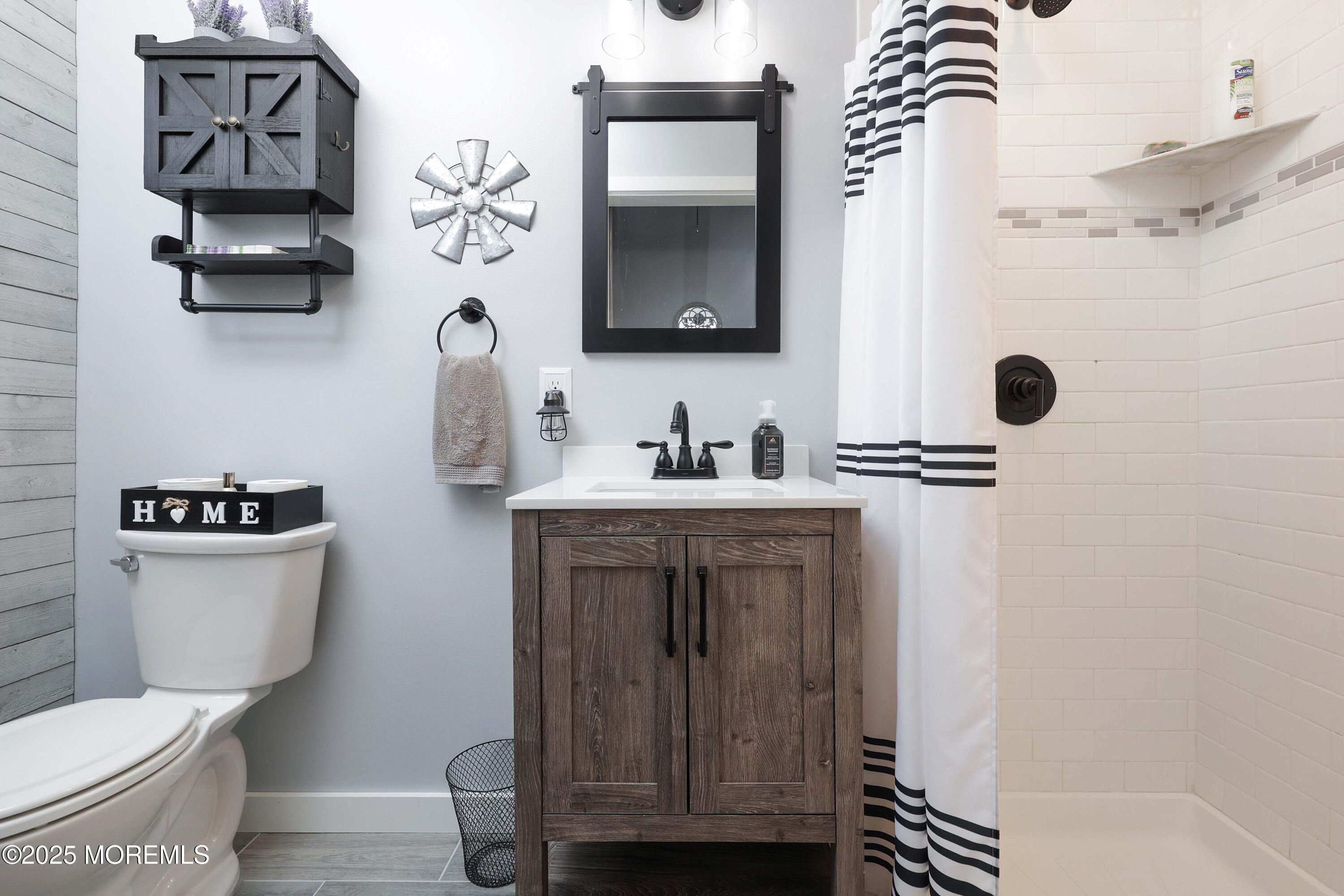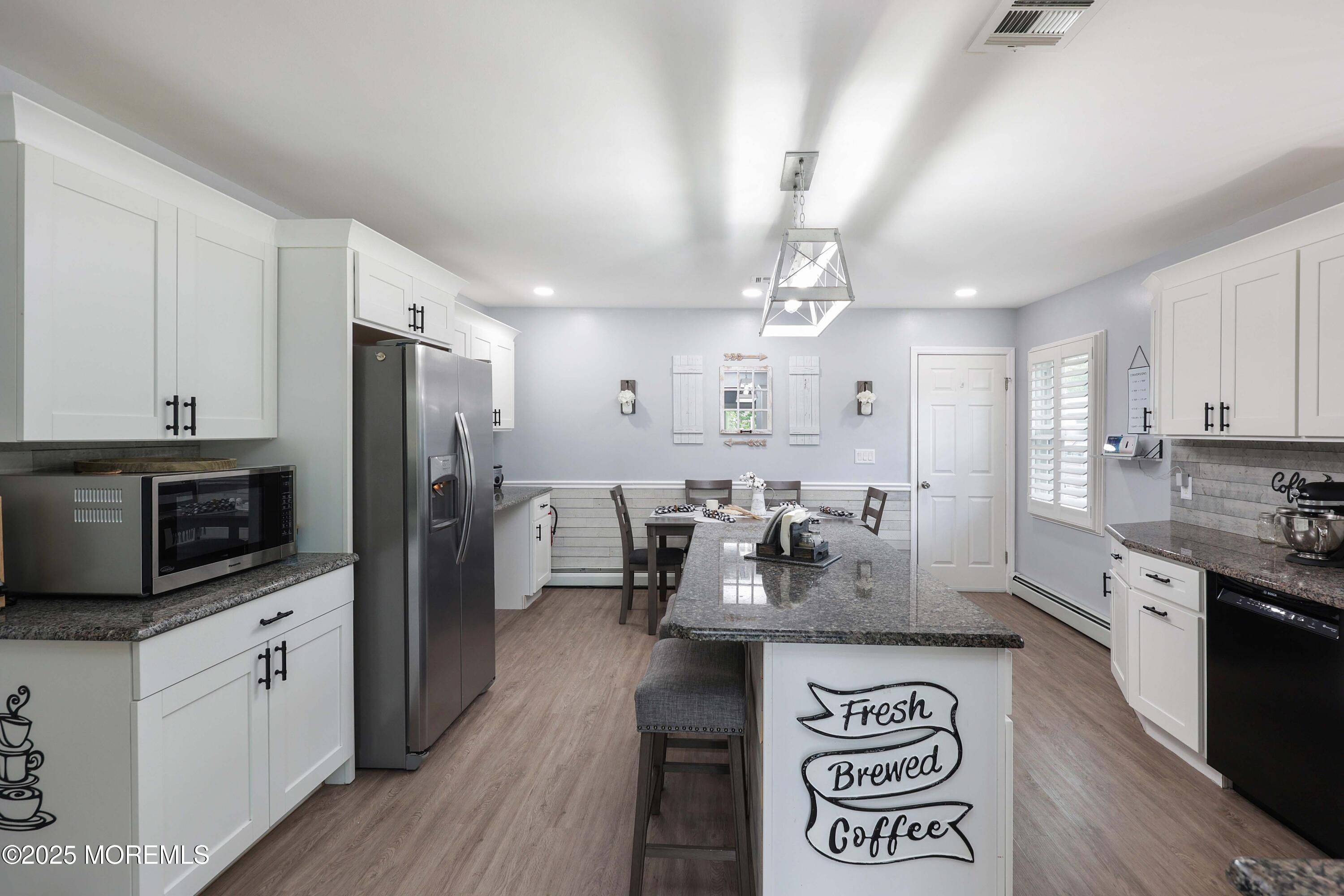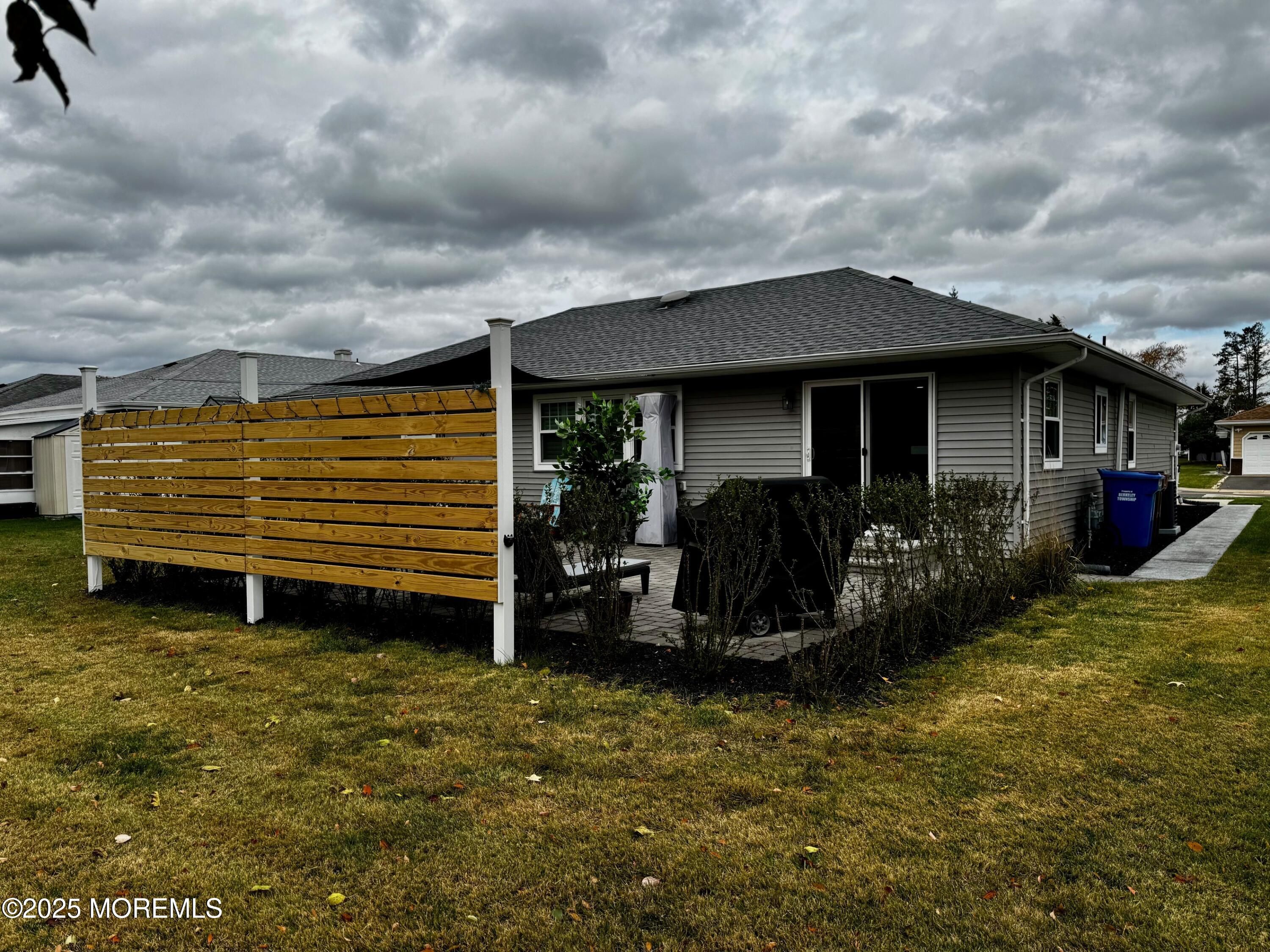 An Entertainer's Dream Home! This beautifully updated property offers amazing curb appeal, tastefully landscaped with a paver walkway and a double-wide concrete driveway. Step inside to find an open-concept layout with stylish vinyl flooring throughout. The stunning kitchen is the heart of the home, featuring white shaker-style cabinets, granite countertops, stainless steel appliances, and a spacious center island ideal for gathering. The living room adds to the wow factor with a custom built-in bar and a gorgeous shiplap accent wall. The fully updated hall bathroom is accented with a modern barn door, while the light and bright master bedroom includes a beautifully remodeled en-suite for added comfort. Step outside to your own backyard oasis, professionally landscaped with a large paver patio, brand new privacy wall, a sun shade for comfort, and a convenient shed for extra storage. The garage has been transformed into a "man cave" for additional living space and enjoyment but can easily be converted back to a traditional garage. Enjoy peace of mind knowing the windows, siding, roof, and HVAC system have all been replaced in recent years. This home blends charm, functionality, and modern updates. Holiday City Berkeley includes access to a community bus, garbage removal, lawn maintenance, and a clubhouse featuring a library, swimming pool, bocce, and shuffleboard. Come check it out!