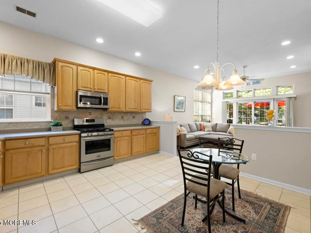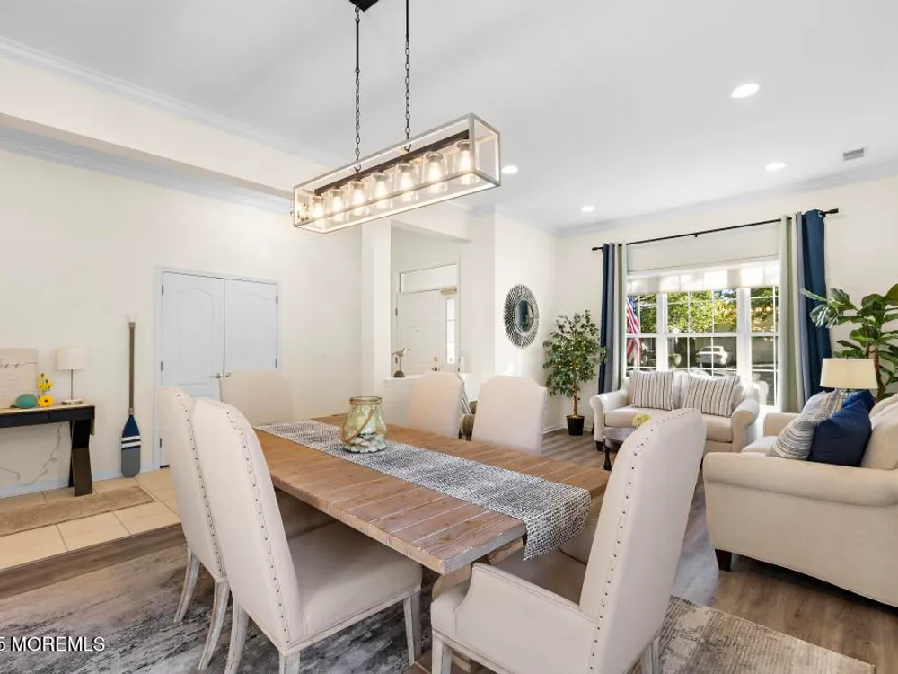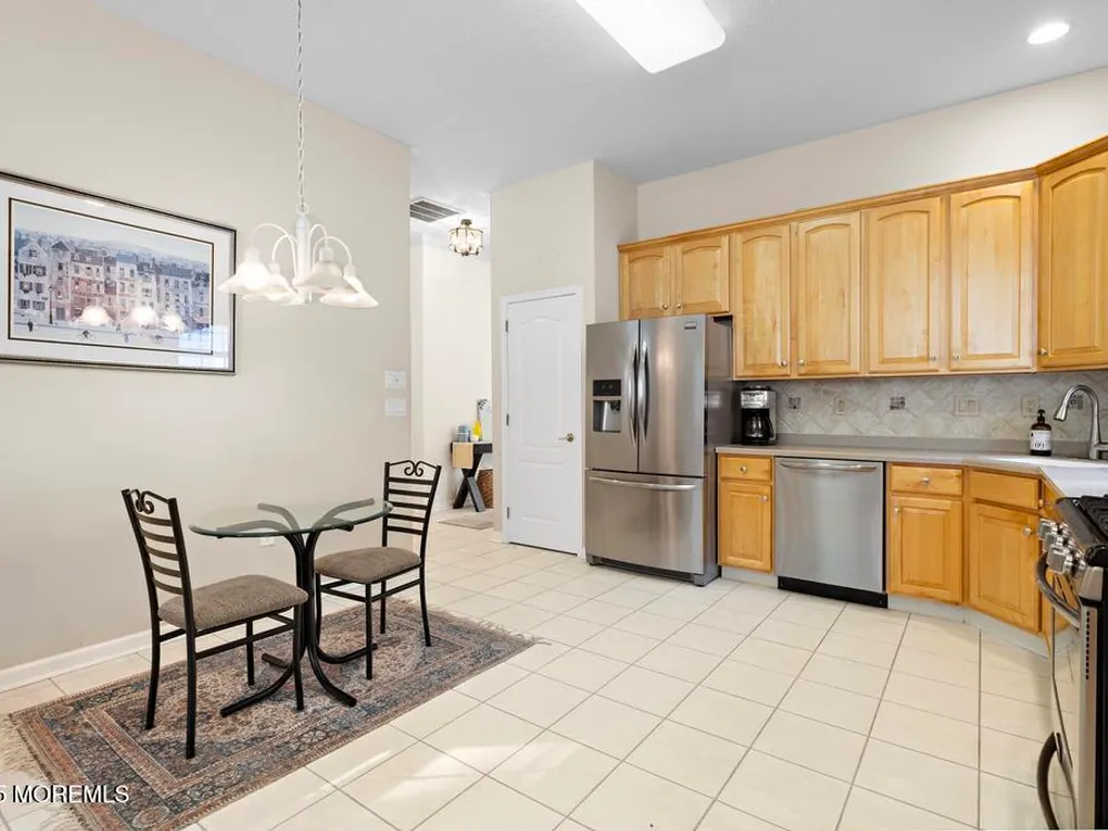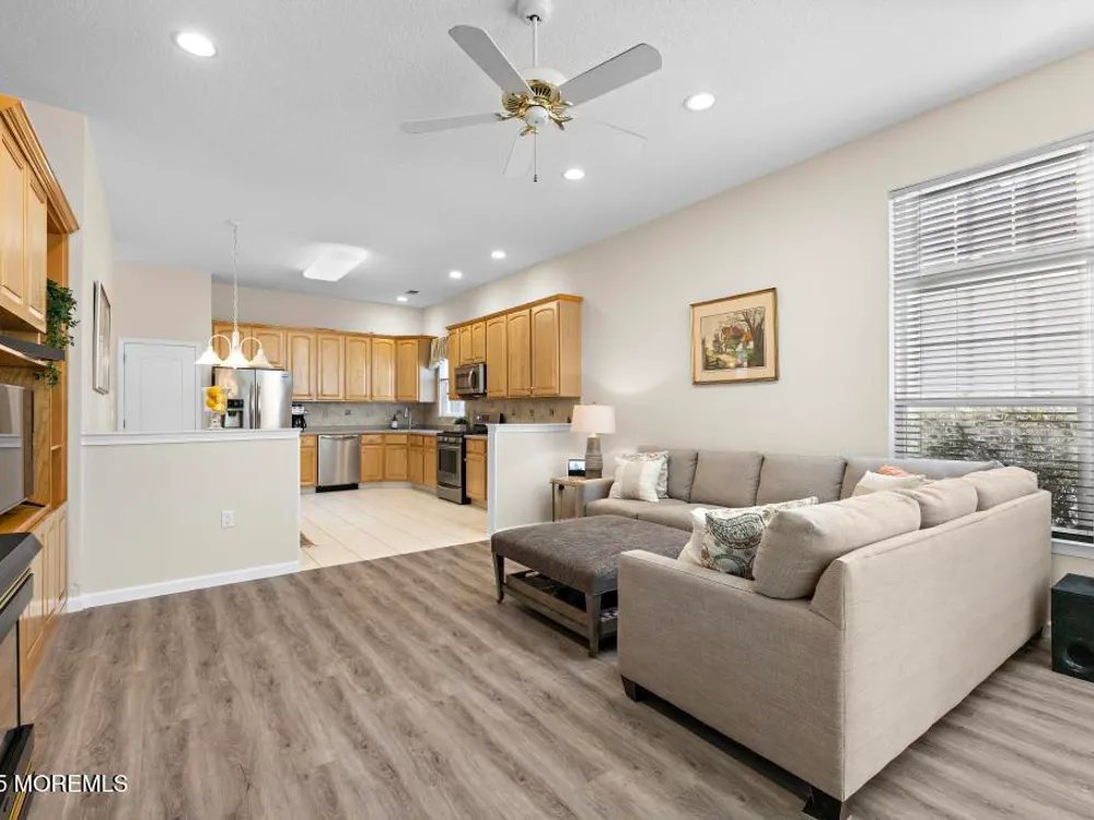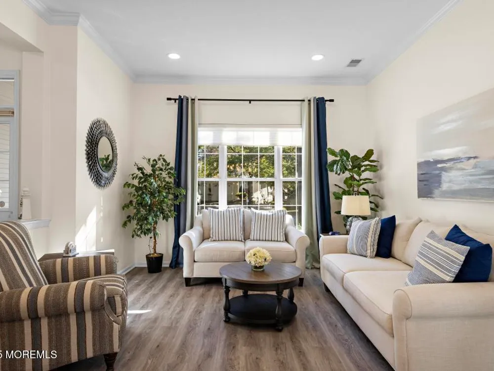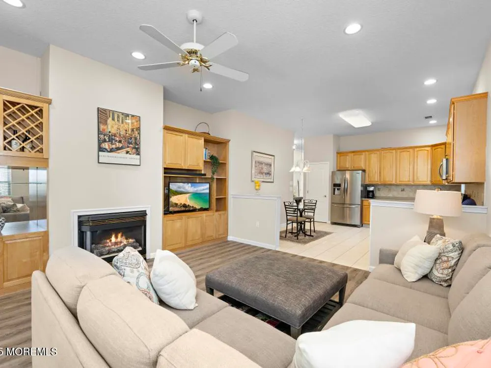 Coastal, Immaculate, and Move-In Ready! This Exceptional Extended Elm at Four Seasons Spa and Country Club is a true standout—beautifully decorated, impeccably maintained, and ready to move right in. Freshly painted living areas and doors complement new landscaping and coastal-inspired décor throughout. This home features 2 spacious bedrooms with large walk-in closets, 2 full baths, and a 2-car garage. Enjoy new luxury vinyl flooring, plush bedroom carpet, updated bath vanities, decorative crown molding, a cozy gas fireplace, stainless steel appliances, and a new roof (2023). A private paver patio offers the perfect outdoor retreat. Every room radiates style and comfortnothing to do but unpack and start enjoying resort-style living today. Ideally located just one mile from the Garden State Parkway, this gated community offers a clubhouse, golf course, indoor and outdoor pools, fitness center, tennis, bocce, shuffleboard, and walking paths. Optimum cable is included in the HOA fee