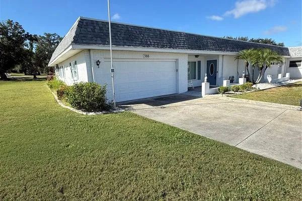 Short Sale. "SHORT SALE!! SHORT SALE!! Seller accepting CASH ONLY!! Needs TLC. Short sale will take about 120 days to get response on offer from lien holders - 55+ VERY ACTIVE community with workshops, pools, tennis and pickleball and so much more. This villa had a roof installed in 2017; a/c installed in 2021 and all new windows installed in 2021. Two en-suite bedrooms. Laundry room located in garage with storage. Built in cabinets in garage. Very nice unit with enclosed sunroom to enjoy year round. Located very close to the golf club behind unit. Sold AS IS