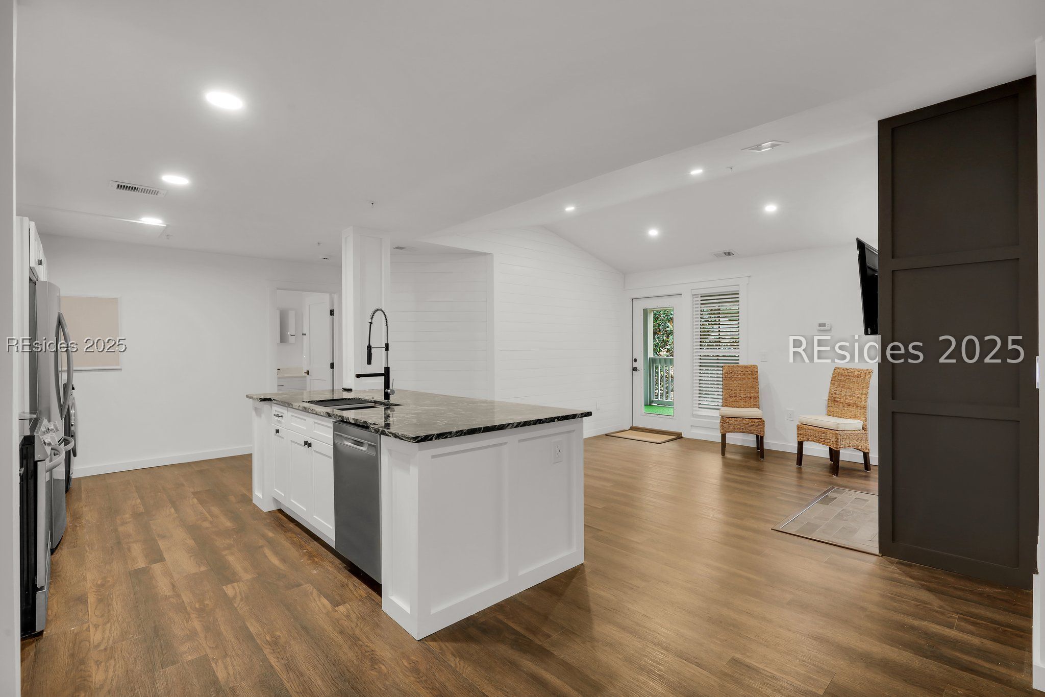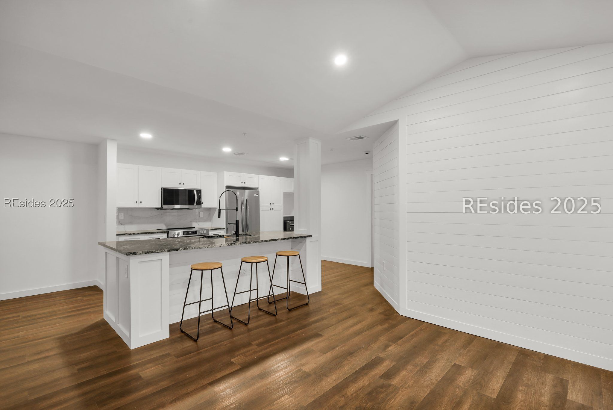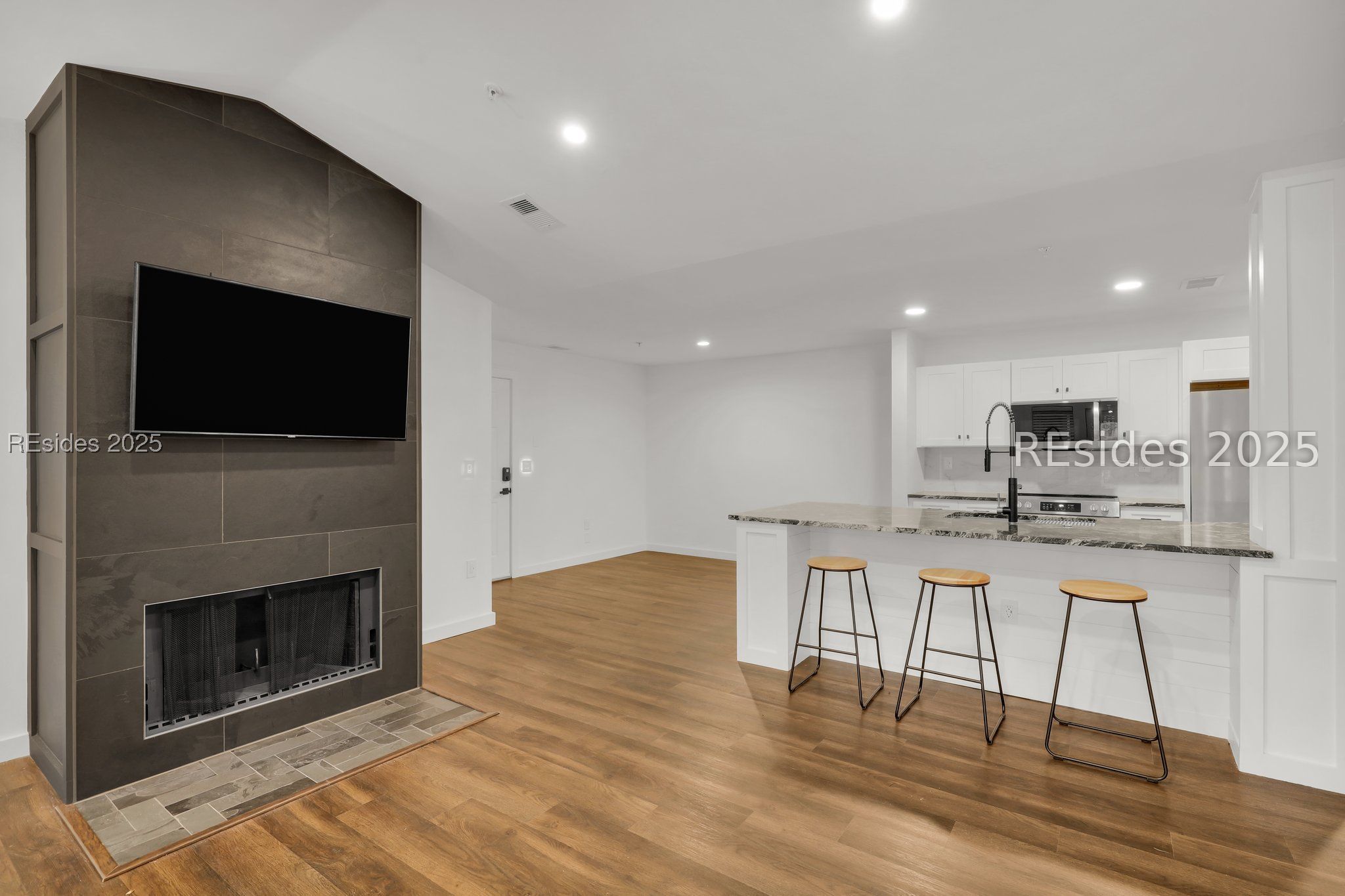There are renovated homes-and then there are homes that are reimagined. Villa C033 is the latter. Crafted with intention, precision, and an artist's sense of proportion, this top-floor residence represents a complete transformation rather than a simple update. From the moment you enter, the difference is unmistakable. Soft daylight moves effortlessly across curated textures and clean architectural lines, warming the Montauk slate that surrounds a striking fireplace-the true centerpiece of a space designed for calm, beauty, and connection. Every surface, finish, and detail has been thoughtfully considered.Solid wood shaker doors, custom Italian glass switches, and a hand-built kitchen island speak to a devotion to quality that goes far beyond what meets the eye. Granite sourced from Savannah, artisan lighting, and carefully selected fixtures create a sense of quiet sophistication, while subtle uplighting highlights the vaulted ceiling and enhances the seamless, open flow of this villa. Completed in 2024, this one-bedroom residence is not the product of a flip, but the result of focused craftsmanship and personal pride. Each decision-from the flooring to the final fixture-was made to elevate daily living into something intentional, elegant, and enduring. Located within Summer House on Hilton Head Island, owners enjoy resort-style amenities including a beautiful pool, hot tub, clubhouse, fitness center, and lush Lowcountry landscaping. With the rare opportunity for an available private garage, C033 is more than a villa-it is an expression of craftsmanship, artistry, and refined island living.