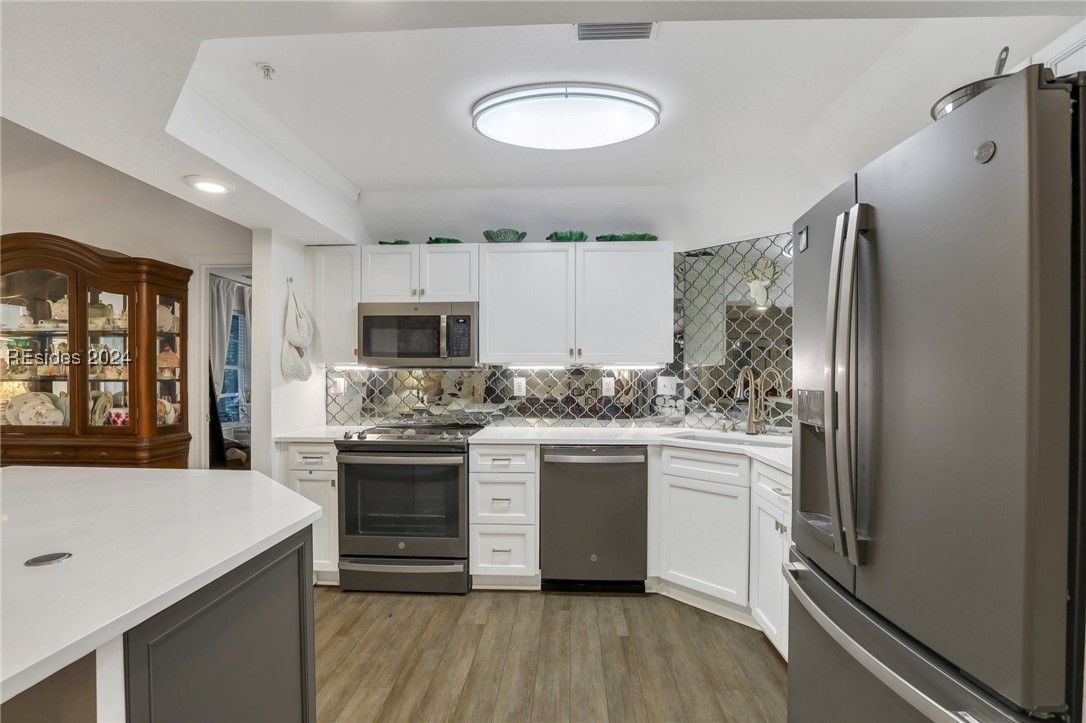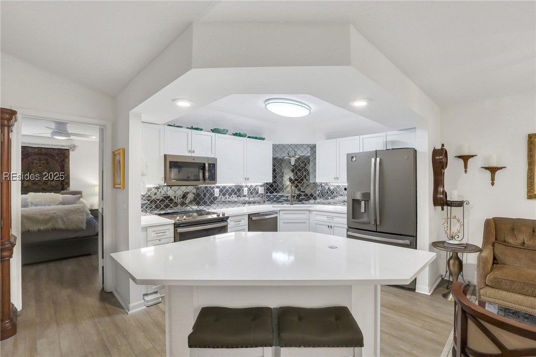 Beautifully updated 2bd, 2ba villa in the gated Summer House community offers privacy and charm with wooded views from the screened in balcony. Inside you'll find NEW LVP flooring, a newly REMODELED kitchen with new SS appliances and self cleaning oven, custom closets, updated bathrooms, and an oversized soaking tub. This villa is perfect as a primary, second home, or investment. Summer House boasts resort-style amenities, including a pool, fitness center, and car wash stations, all in a convenient location off Cross Island and Marshland rd, providing easy access to shops, restaurants, and Hilton Head beaches.