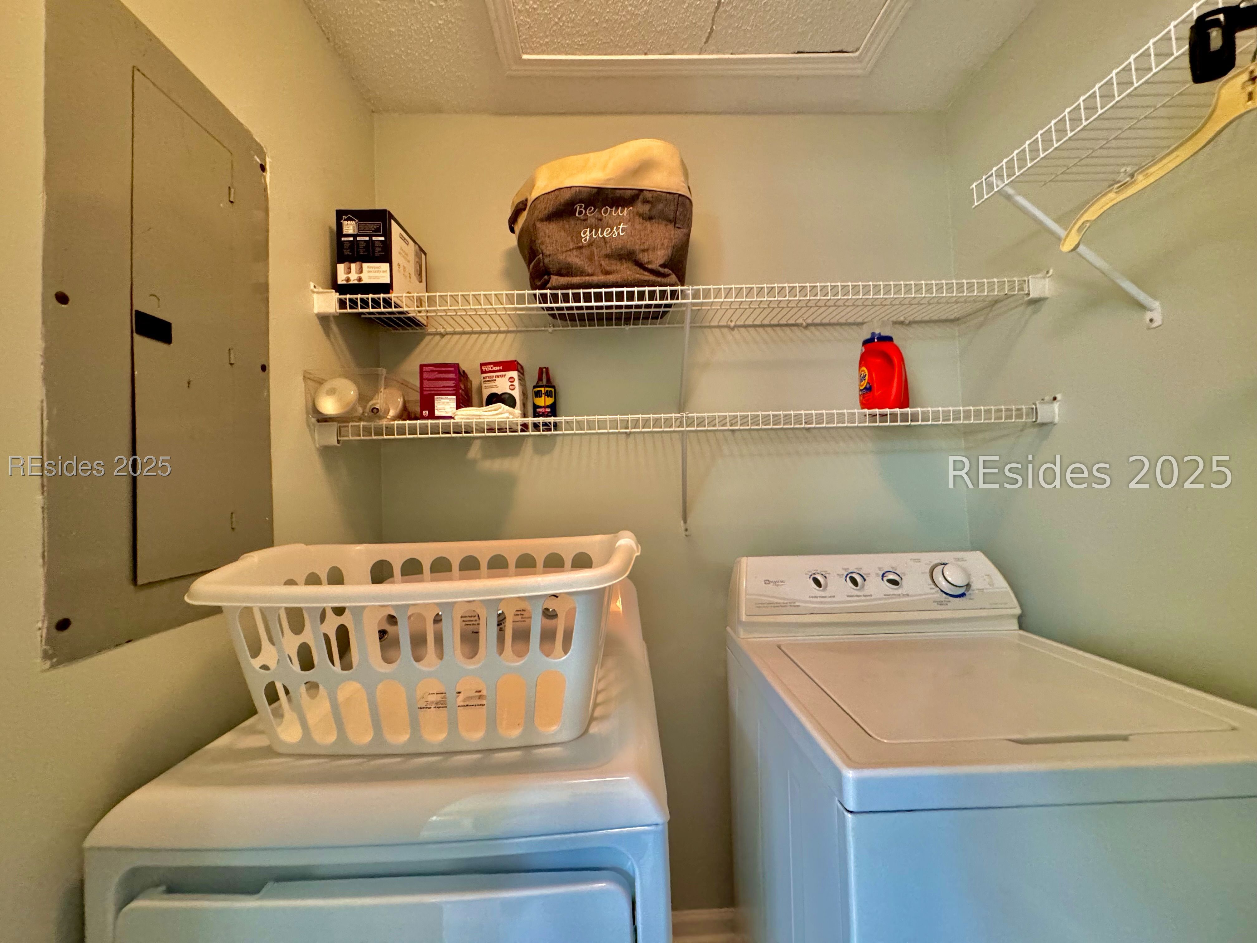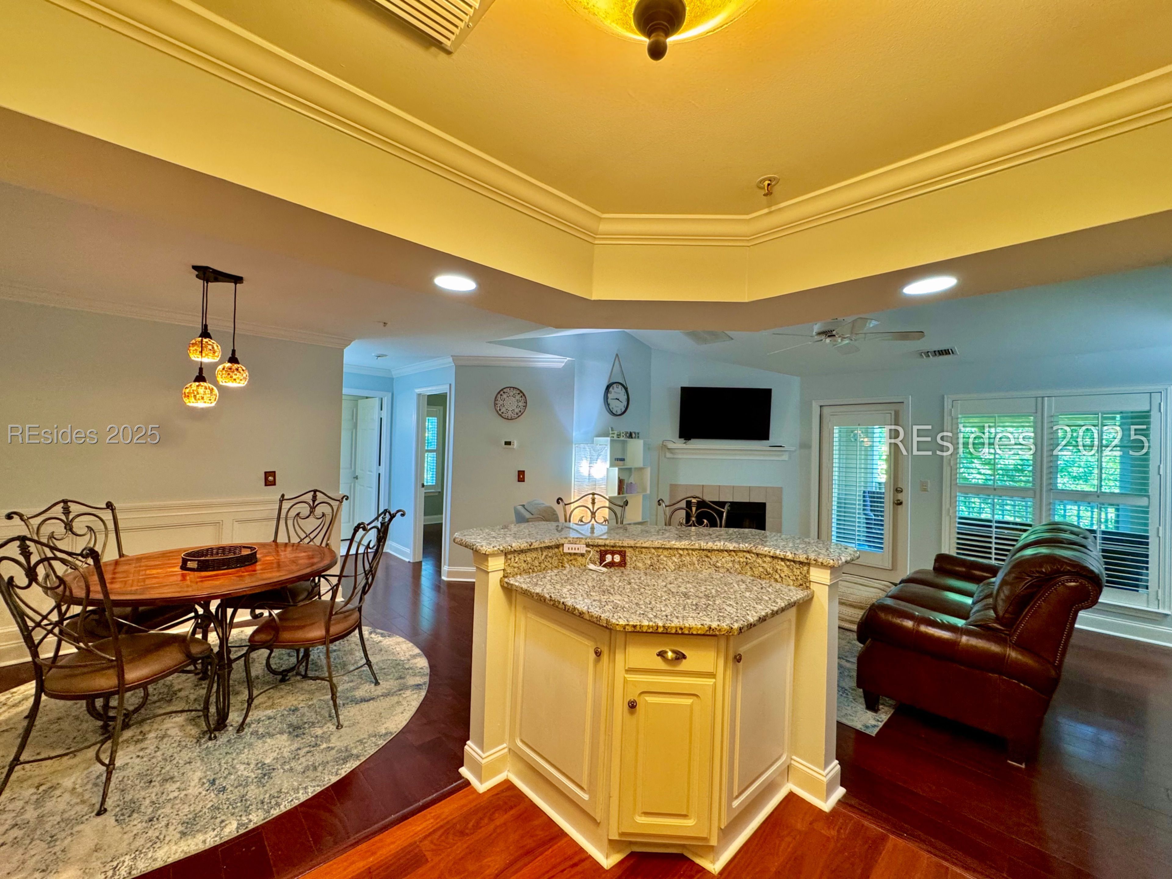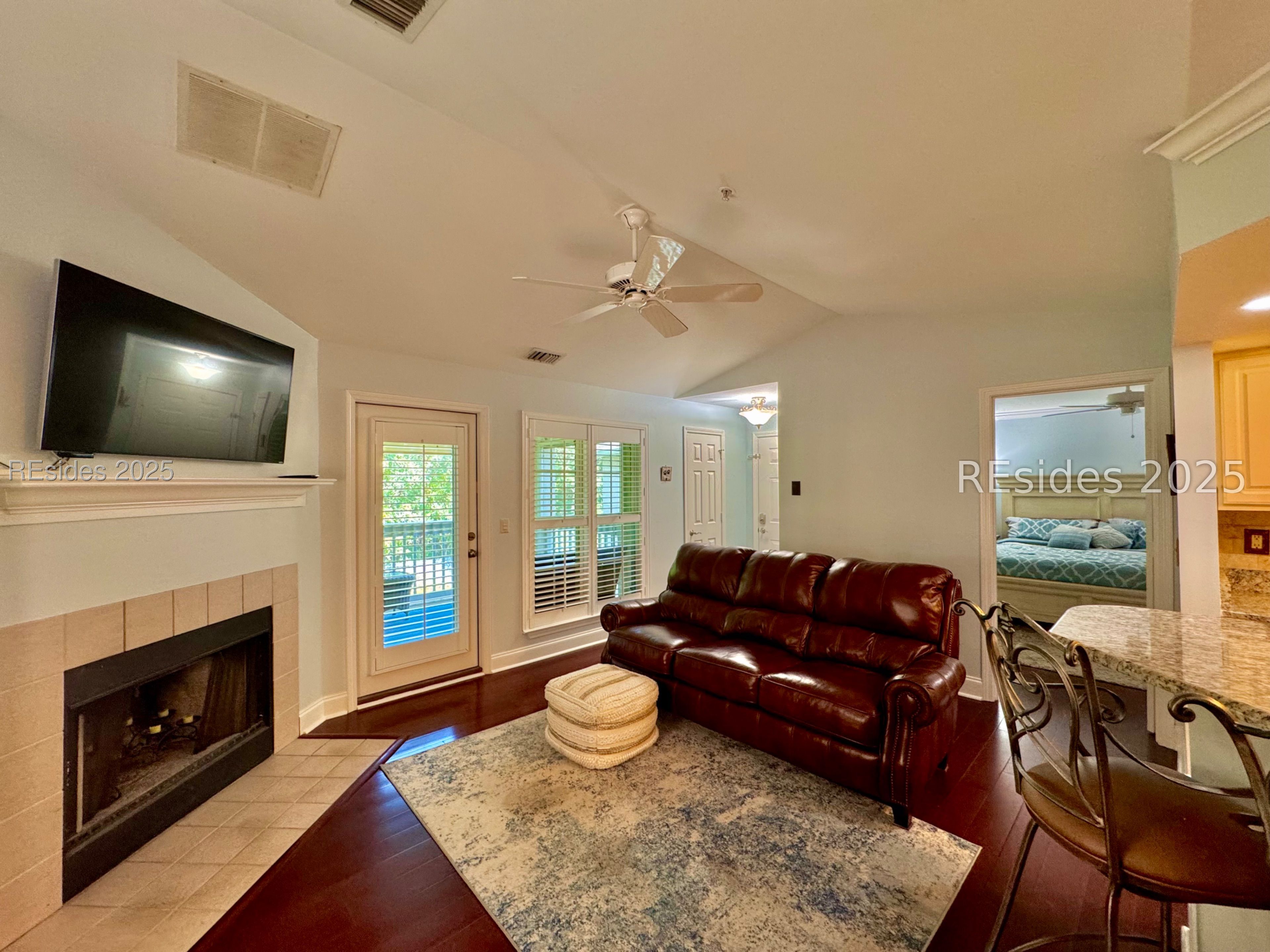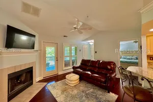 Beautiful Penthouse Villa, fully furnished and Just Painted! This home has a Fireplace, Spacious and private Screened Porch, wood floors (NO CARPET), washer/dryer in unit, walk in closets in each bedroom, furniture grade Vanities in each bathroom, granite counters, stainless steel appliances. The porch has lovely views plus a storage closet. This is a perfect 2nd home getaway or a primary residence as the Location is central to reach anywhere on Hilton Head Island, especially the beach, golf courses, tennis, Cross Island Parkway and Hilton Head Island Airport (HHH). Since it has everything, even the plates and silverware, you can begin enjoying this idyllic retreat immediately. Hard to find something this nice at this price on the island. (Note: this is a 3rd floor walk up, no elevator) Don't miss this opportunity to own instead of renting.