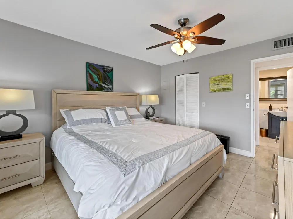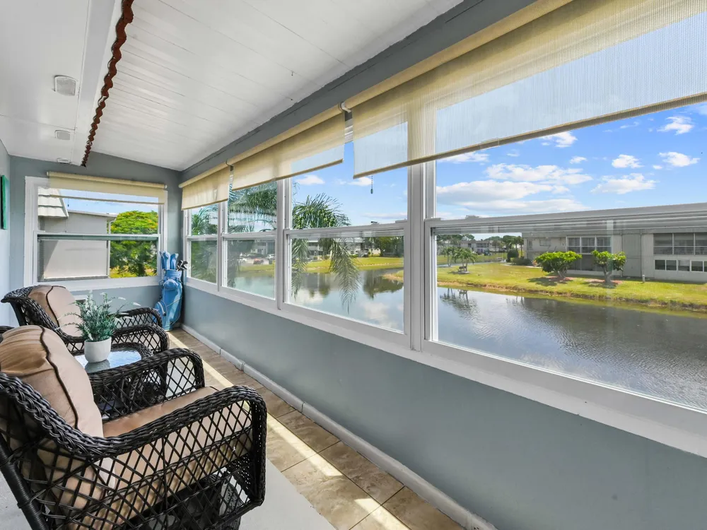 Exuding timeless appeal, this two-bedroom, two-bathroom, second-floor condominium is an absolute gem, located within the prestigious Kings Point Community in Delray Beach, Florida. Constructed to ensure comfort and practicality, the residence emanates a refreshing ambience. The charming interiors are thoughtfully designed, featuring a cohesive blend of updated kitchen and baths. The kitchen features white cabinets, stainless steel appliances, and granite counter tops. The outside view from this residence offers a tranquil visage of crystalline water bodies, thriving with nature's bounty. The residence also features a screen enclosed outdoor space, perfect for enjoying the spectacular water view.