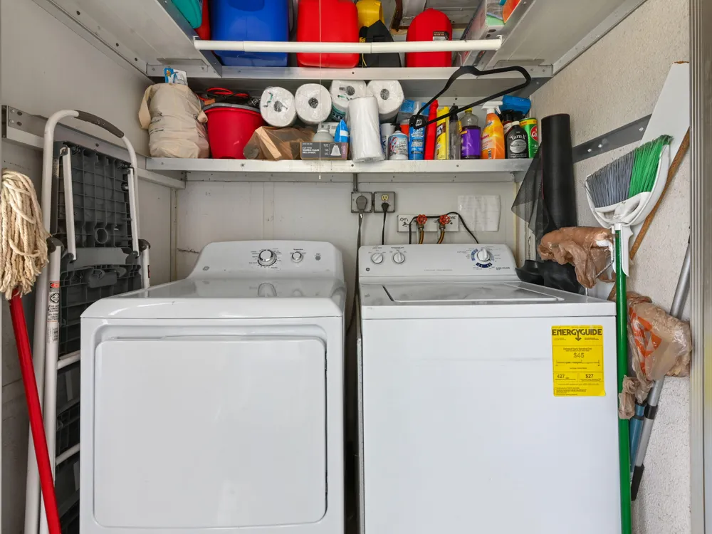 - Dishwasher, Dryer, Microwave, Electric Range, Refrigerator, Washer, Electric Water Heater