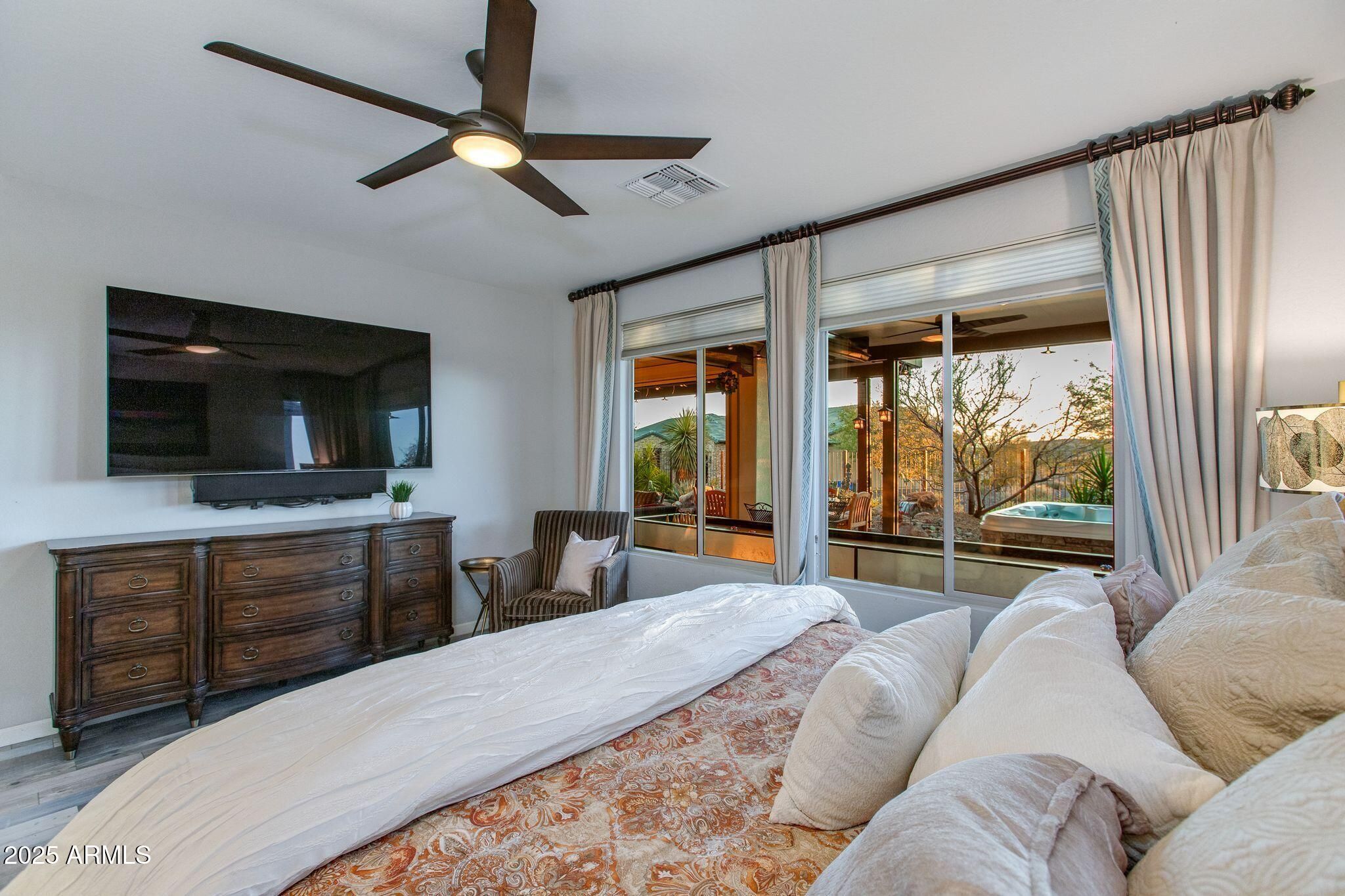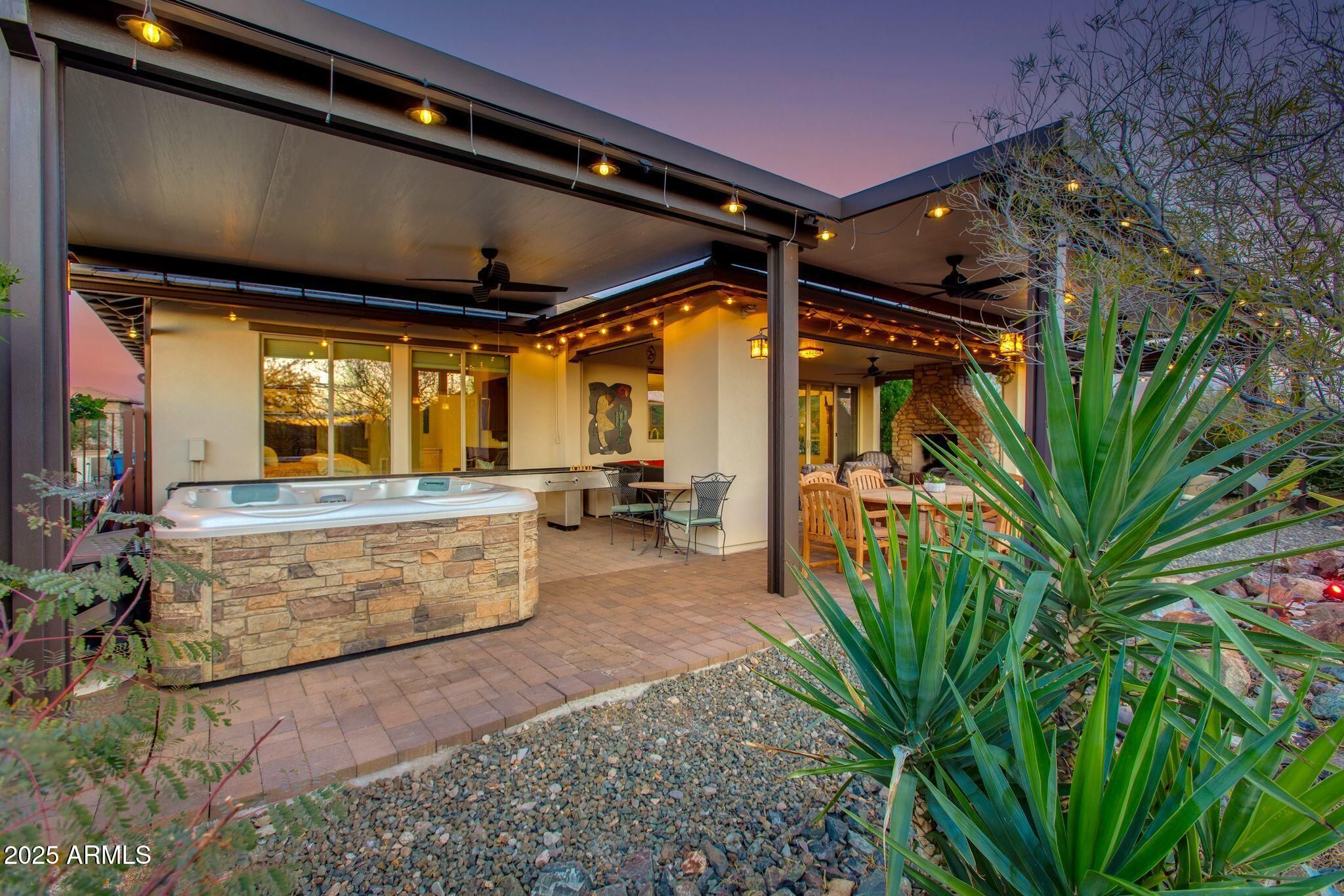 One-of-a-kind luxury living in Wickenburg Ranch. This exquisite Sycamore model by Shea Homes sits on a premium corner lot overlooking protected green space with unforgettable west-facing Arizona sunsets. Meticulously upgraded throughout with rich hardwood floors, Café Series appliances, paid-off solar, power solar shades, epoxy garage floors, and a new insulated garage door. The resort-style backyard is truly exceptional, featuring a 600 sq ft extended patio with ceiling fans, pergola, misting system, outdoor kitchen, fireplace, hot tub, shuffleboard table, two custom waterfalls, and a custom fountain. Fresh exterior paint completed six months ago. A rare opportunity to own a luxury retreat unlike any other.