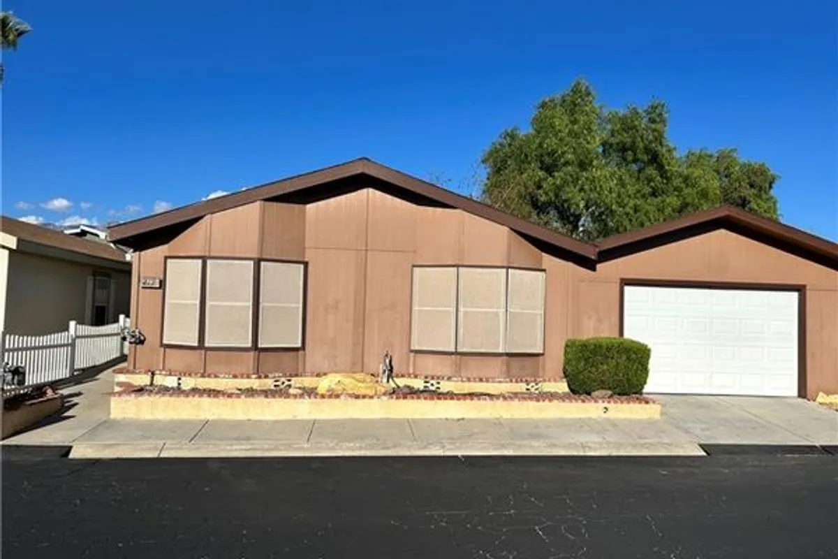 ******Price Improvement*****Welcome to 3800 W Wilson #219, a delightful manufactured home nestled in the desirable Mountain Springs community of Banning, CA 92220. This inviting 3-bedroom, 2-bath residence offers comfort, accessibility, and thoughtful features throughout. Step inside to enjoy newer flooring and a well-designed layout. The spacious primary bedroom includes a cozy sitting room and an en-suite bathroom with two showers—one standard and the other wheelchair-accessible and generously sized, providing excellent convenience and functionality. The additional bedroom and bathroom are situated on the opposite side of the home, creating a perfect level of privacy for guests or family members. The kitchen offers direct access to the covered backyard patio, ideal for relaxing or entertaining. The nicely sized yard provides plenty of space for outdoor enjoyment, and the laundry area is conveniently located next to the kitchen. A 1.5-car garage adds extra storage and flexibility, and the home backs to a small greenbelt, offering a peaceful and open backdrop. The Mountain Springs community features a warm, friendly atmosphere and provides fantastic amenities, including a pool, and recreational areas. Conveniently located near shopping, dining, and major highways, this home offers easy access to everything you need while maintaining the comfort and tranquility of a well-cared-for neighborhood. This charming home is ready for its next owner—don’t miss your chance to make it yours!