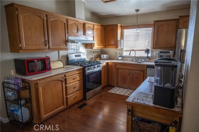 Welcome home to this well-maintained manufactured home in Banning, where comfort, upgrades, and outdoor living come together nicely. The home features a large living room with plenty of windows that bring in natural light and allow for great airflow. Hardwood floors run through the living room, dining area, and kitchen, and a ceiling fan adds comfort. A sliding door in the dining room opens to the backyard patio. The kitchen is a good size with lots of cabinet storage, a stove that is about one year old, and a new goose neck faucet. A separate laundry room includes a washer and dryer that are approximately two to three years old. Major improvements include a brand-new roof completed January 10, 2026, a water heater that is two years old, and an air conditioner estimated at six years old. The bedrooms are nicely sized. The primary bedroom has an ensuite bathroom with a walk-in shower, large window, and linen cabinet, with space to add a tub if desired. The second bathroom has been renovated and includes a tub with shower. Both toilets have been recently replaced. The front and backyard are landscaped and include a sprinkler system, along with a key lime tree in the front yard. The backyard patio is perfect for enjoying your morning coffee. The garage offers cabinets on both sides and a workbench, providing excellent storage. Additional features include a reverse osmosis water system that is about one year old for clean drinking water, showers, and laundry. The park amenities include a large swimming pool with restrooms, a covered picnic and BBQ area, and pickleball and tennis courts.