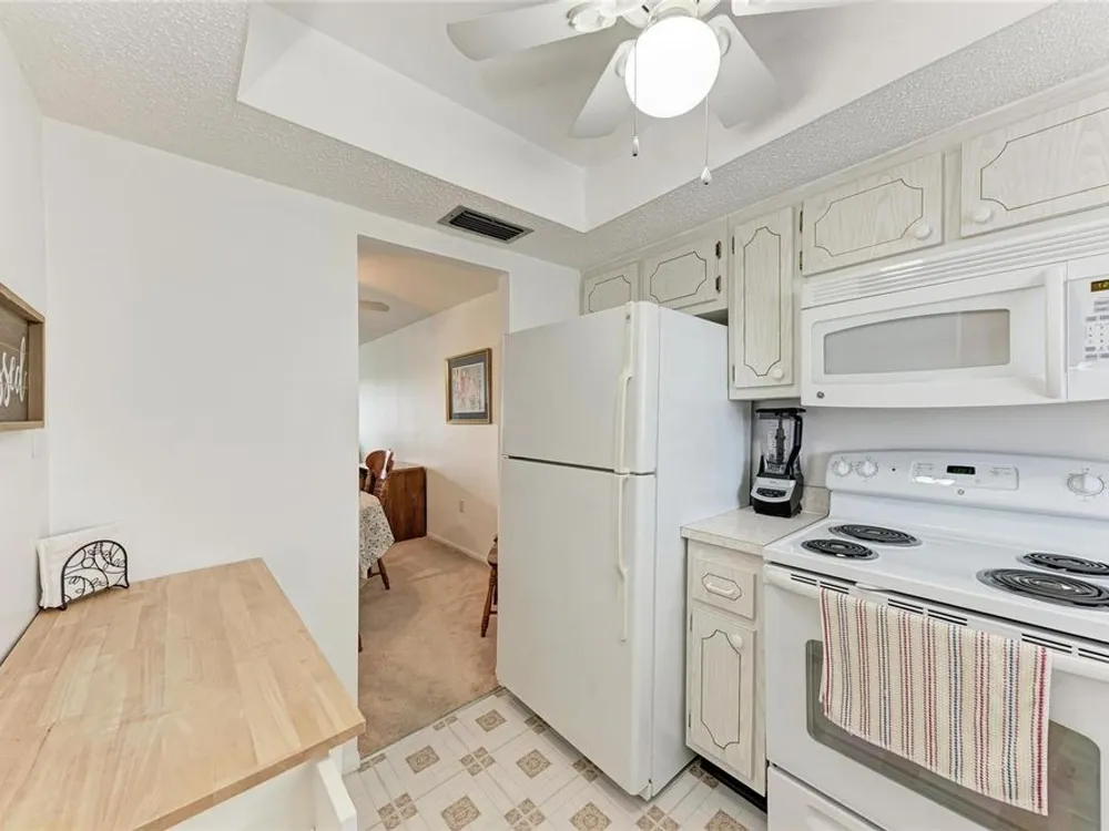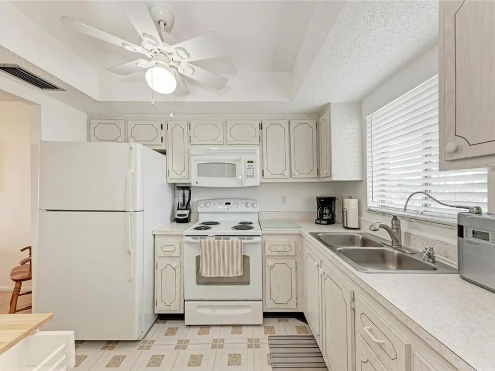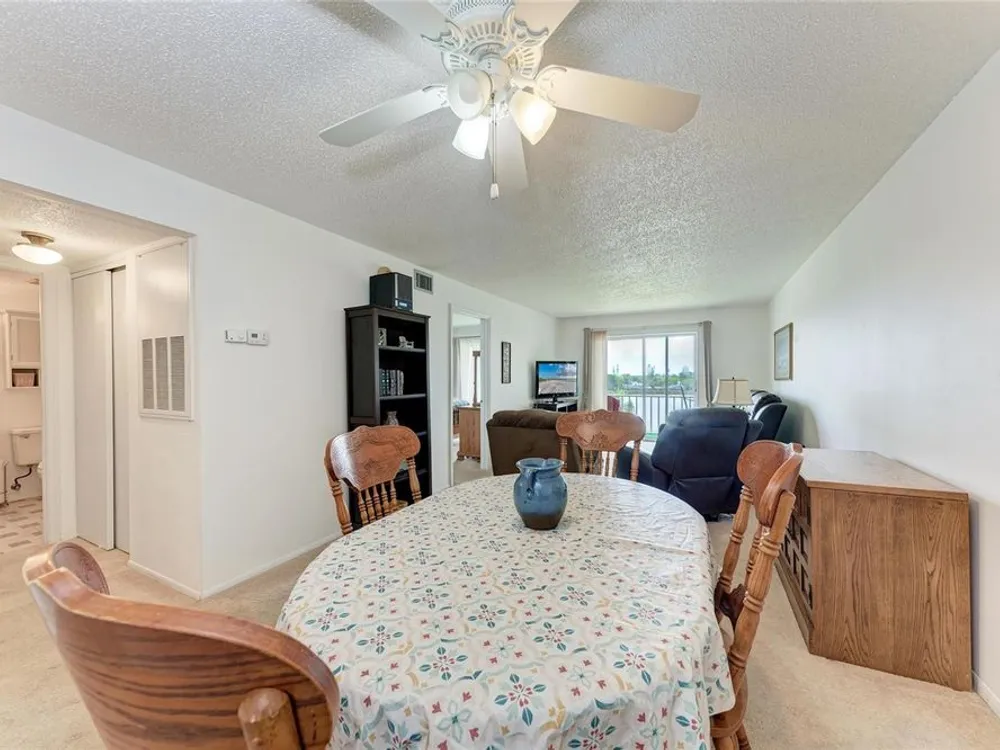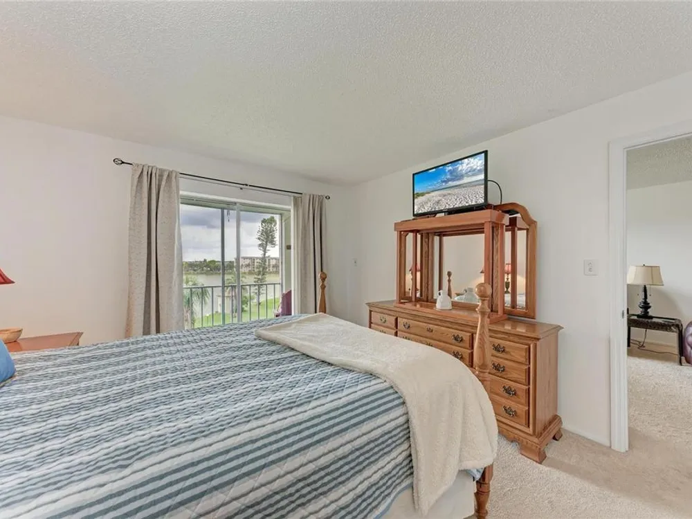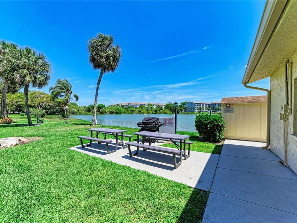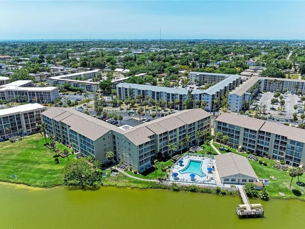 One or more photo(s) has been virtually staged. Welcome to your own turnkey lakeview oasis in this inviting condo nestled within a vibrant 55+ community. Enjoy peaceful water views from the living room, dining area, and primary bedroom, where sliding doors in both the living space and bedroom lead out to a spacious enclosed lanai—the perfect spot to relax, take in the stunning scenery while starting or ending your day. The kitchen offers generous cabinet space, a coffee bar, and a convenient pass-through that keeps the layout feeling open and connected. The bedrooms are well-proportioned, with the primary featuring a walk-in closet and private lanai access. The bathroom includes a tub/shower combo and plenty of storage. Residents of Bayshore on the Lake enjoy a heated pool, elevator access, fishing pier, clubhouse, laundry facilities, assigned parking and walking paths—all just minutes from shopping, dining, and the sandy shores of Anna Maria Island. Whether you're looking for a seasonal getaway or a peaceful full-time retreat, this lakeside home offers the ideal blend of comfort and convenience with a view you’ll never tire of.