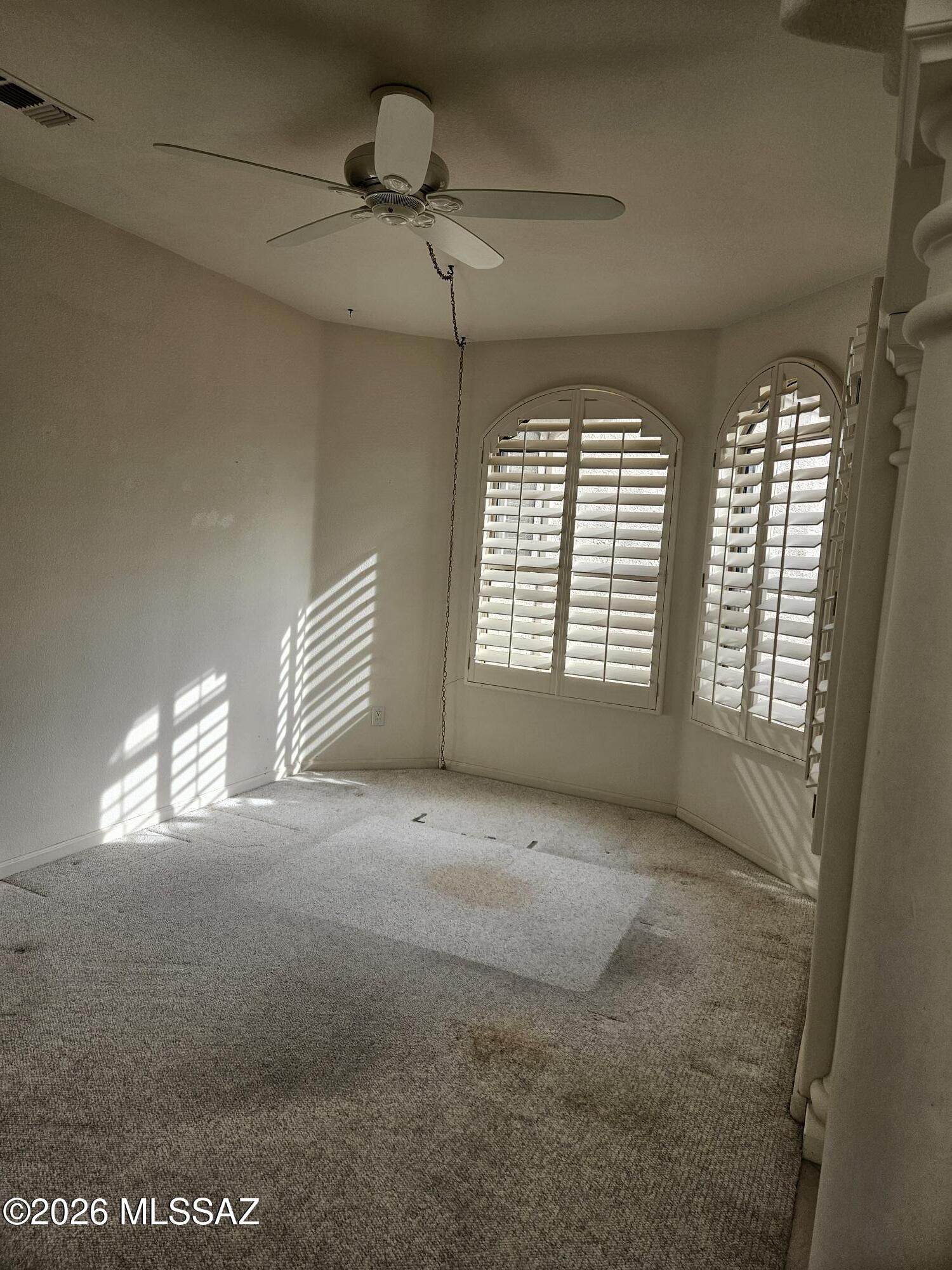 Huge potential and amazing opportunity for someone to come in and put their own personal touches on this original owner Cambria. New carpet and paint would do wonders. Floorplan features 2 bed + den, 2 1/2 baths with spacious kitchen, huge peninsula and open family room. Enclosed flagstone patio for year round enjoyment. Stunning views from the front flagstone patio and peaceful serene backyard borders open space with natural desert. 2.5 car garage allows for plenty of space and designated golf cart parking. Condition is reflected in the price but a little elbow grease and this house will shine. Run comps...you'll see it's a bargain.