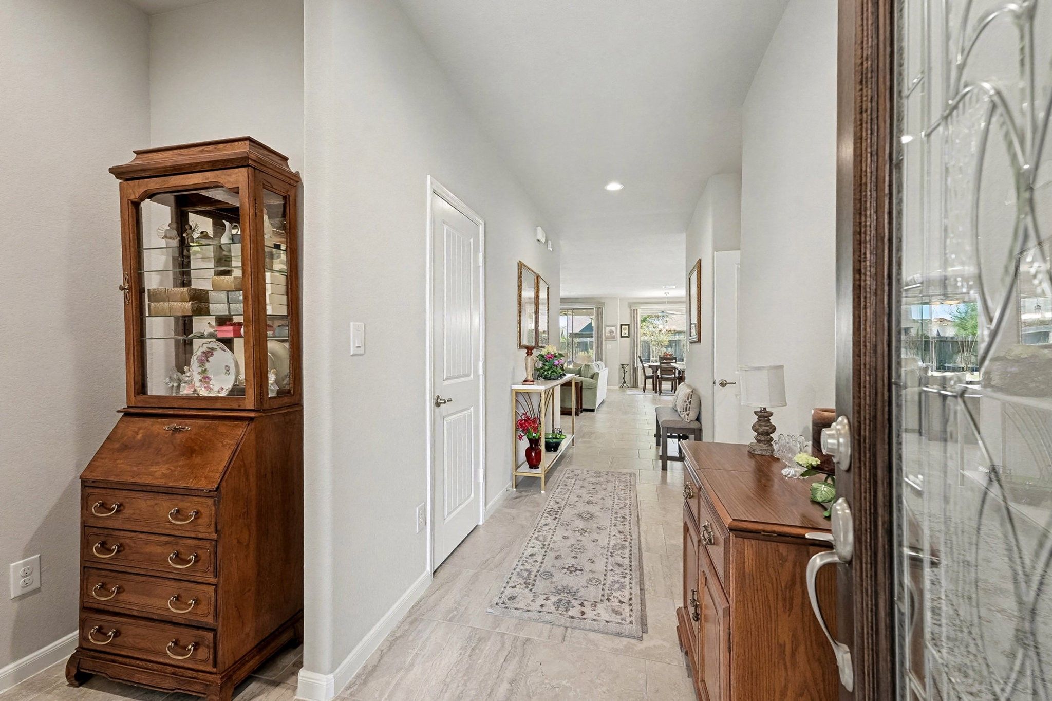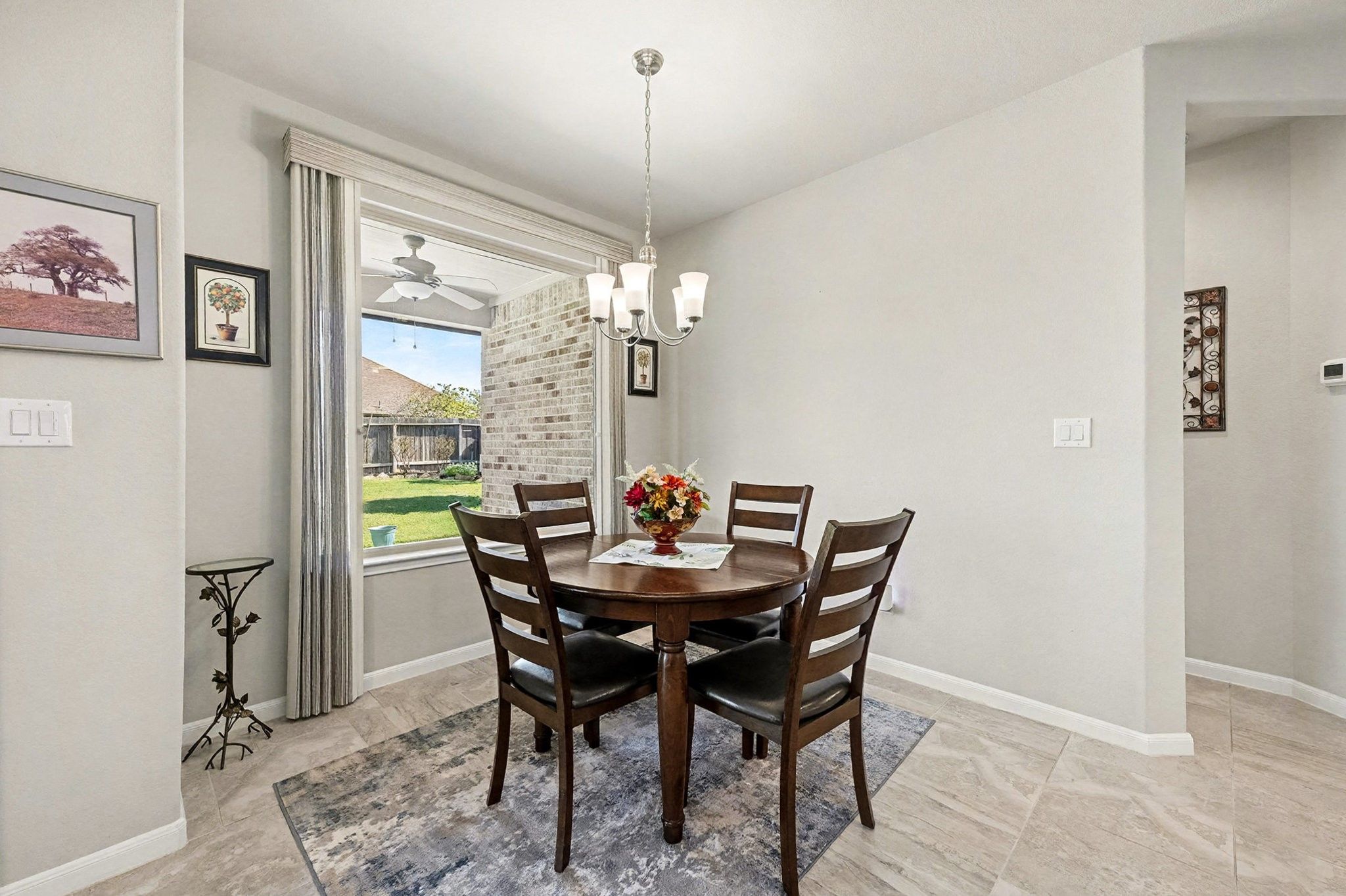 Welcome to this gorgeous single-story home in the desirable 55+ community of Wellspring @ Tamarron! The gated entry opens to a spacious, light-filled kitchen and living area with double sliding glass doors framing a beautifully landscaped backyard and peaceful walking path beyond. Custom magnetic window treatments offer privacy when needed. The extended covered patio features two ceiling fans and afternoon shade—perfect for enjoying Texas evenings. The Study/Office is currently used as a dining room. Wider doorways provide comfortable accessibility for a walker or wheelchair. Bedrooms are generously sized, with an extra-large primary suite and a huge primary closet. Wellspring offers its own community center with a clubhouse and numerous activities, while Tamarron provides a gym, dog park, dual pools, and a splash pad for all residents. There are no private showings until after the open house!