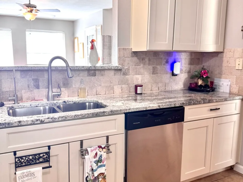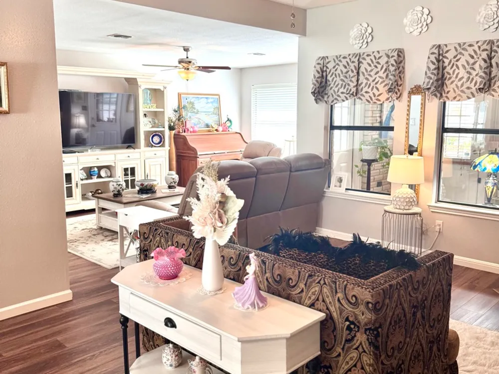 This beautiful home in Scenic Hills 55+ community is an amazing community the neighbors are the friendliest and so helpful. The Lodge has so many amenities that gives an opportunity to be involved Bingo night, Line dancing, dinners and much more. 2 pools and many daily activities. This 3/2 home has a newly renovated kitchen with new cabinets and granite counter tops. Has brand new LVT floors in the living areas. And a newly renovated primary bathroom. Ready to move in!! Home also features a rain soft water softener and reverse osmosis in the kitchen. A must see home with beautiful landscaping and mature trees.